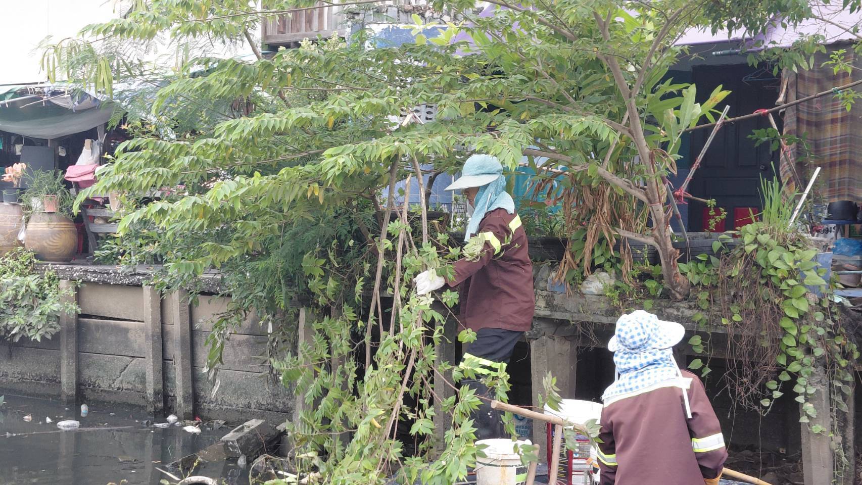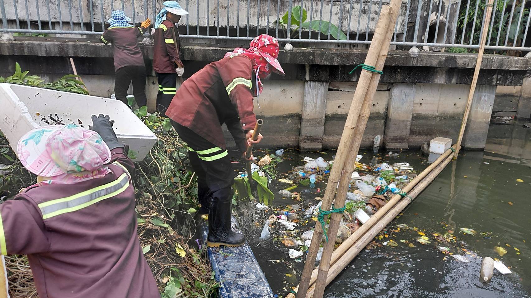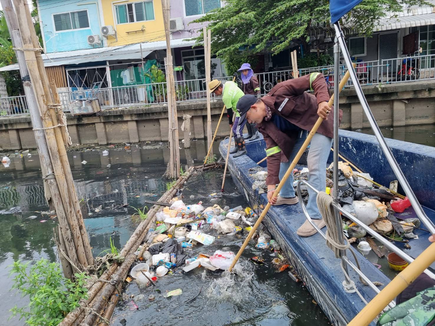 เจ้าหน้าที่ เก็บขยะและวัชพืชคลองลาดพร้าว พื้นที่เขตจตุจักร เขตลาดพร้าว เขตห้วยขวาง เขตวังทองหลาง