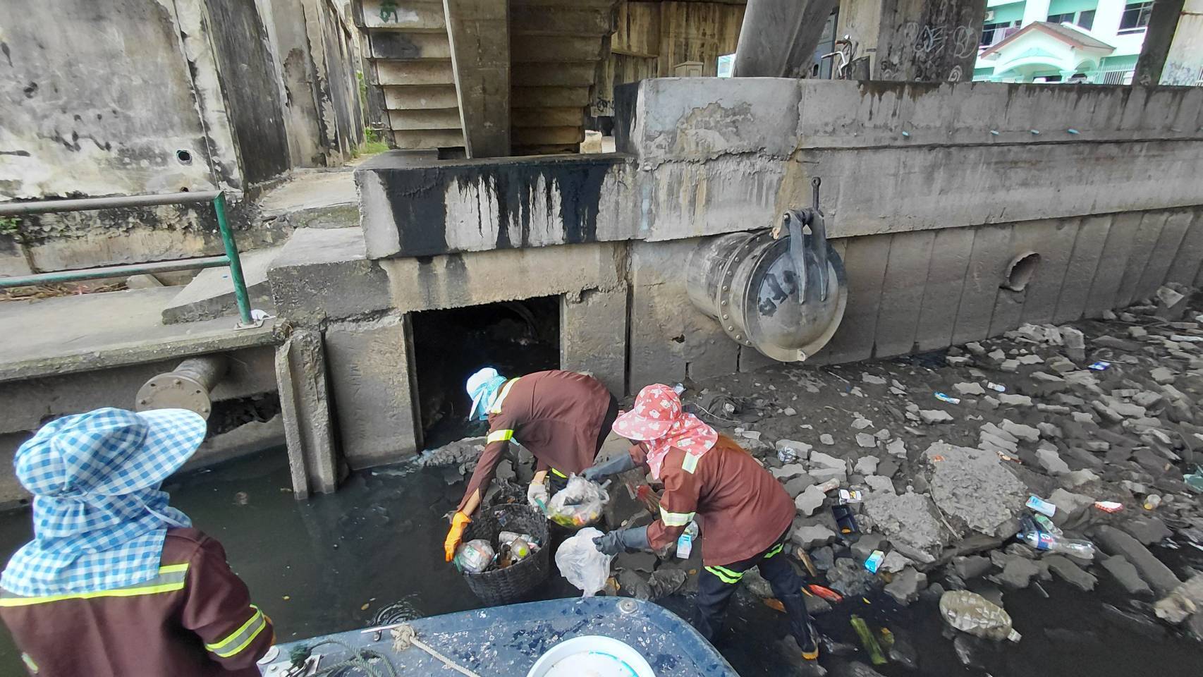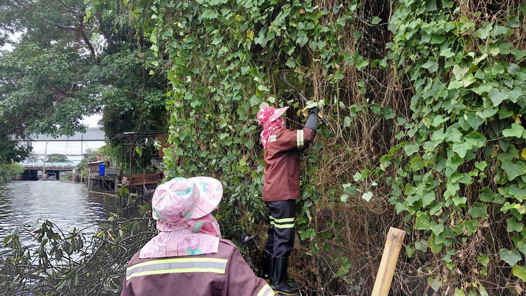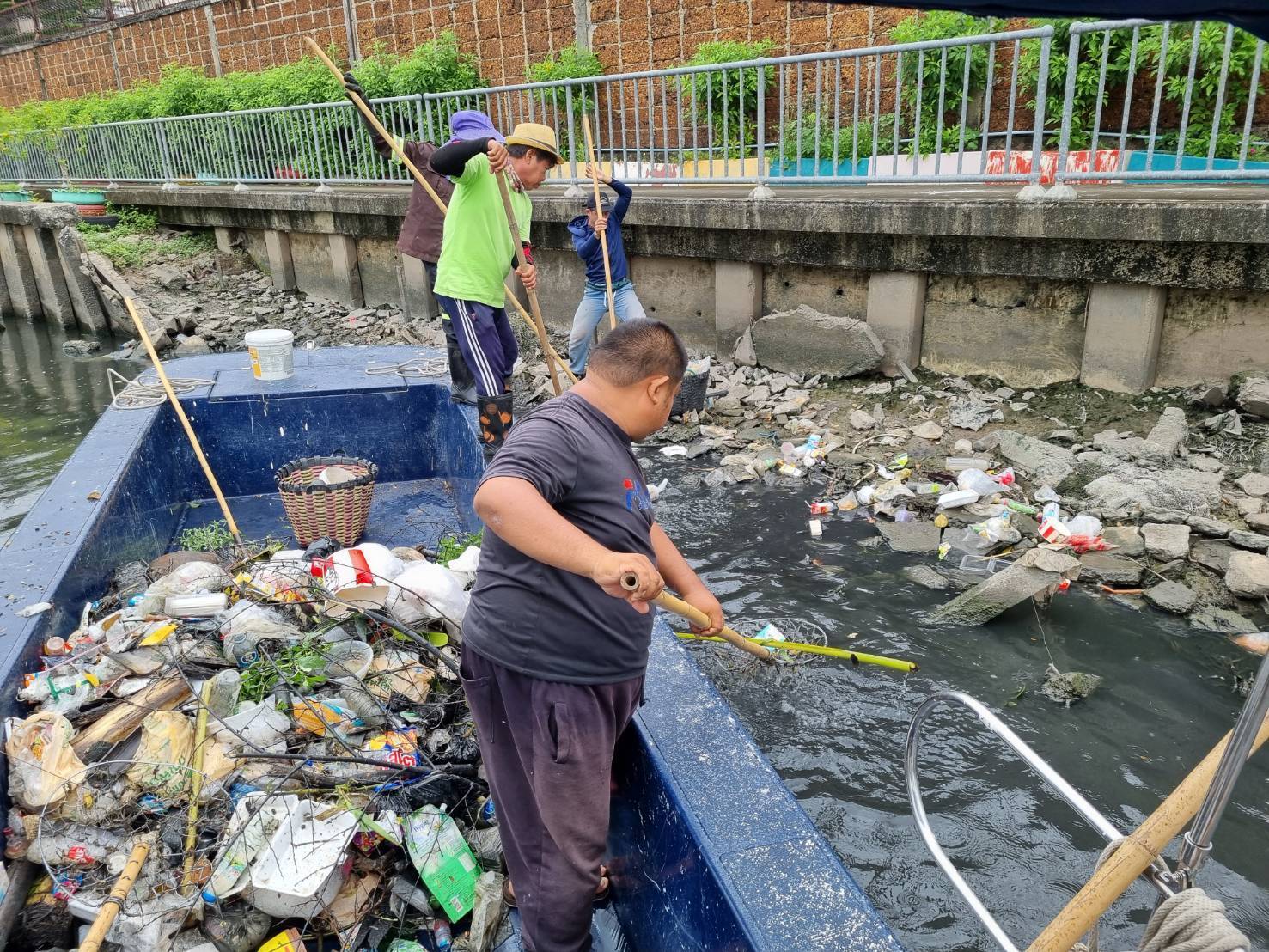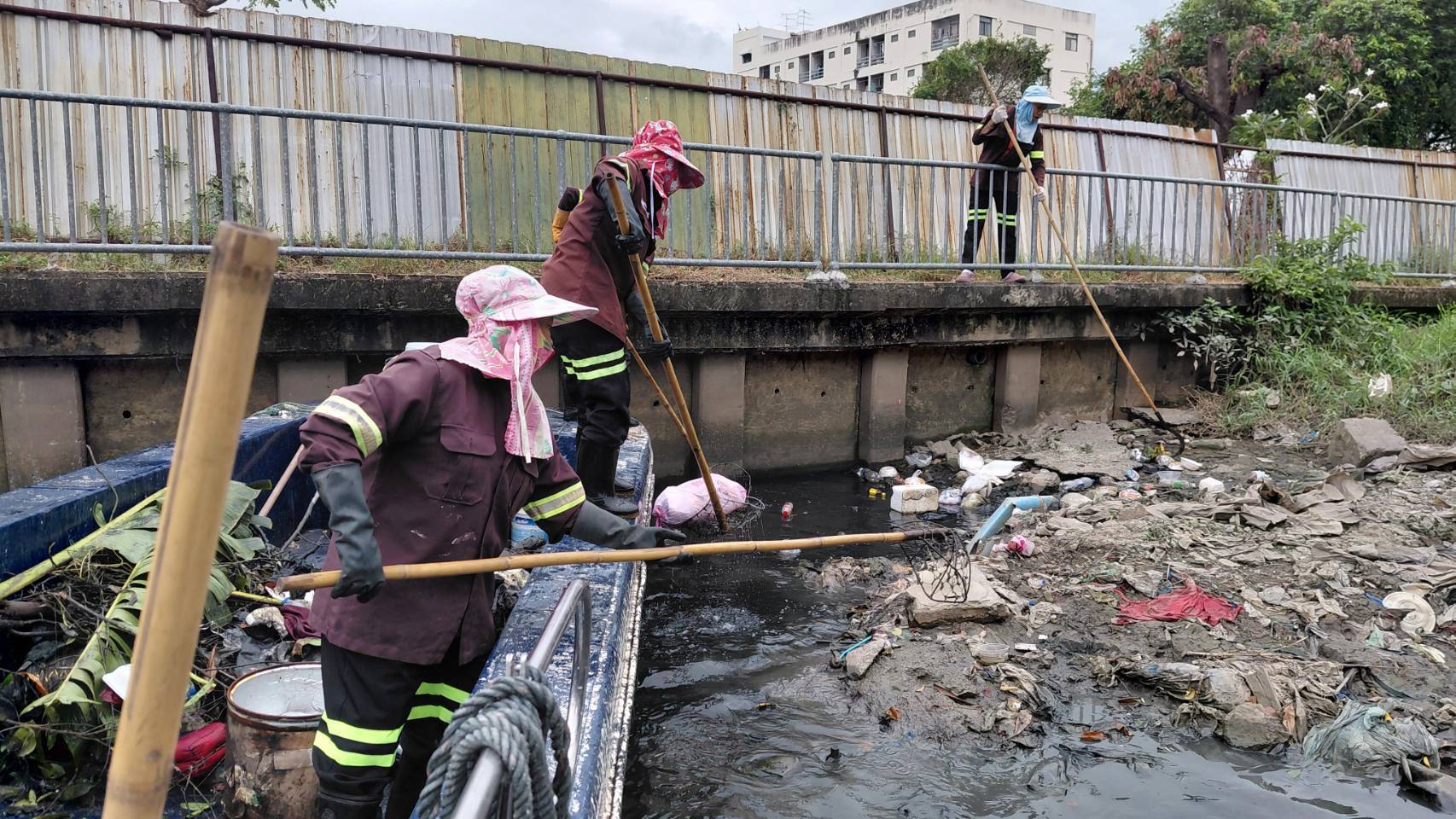 เจ้าหน้าที่ เก็บขยะและวัชพืชคลองลาดพร้าว พื้นที่เขตจตุจักร เขตลาดพร้าว เขตห้วยขวาง เขตวังทองหลาง