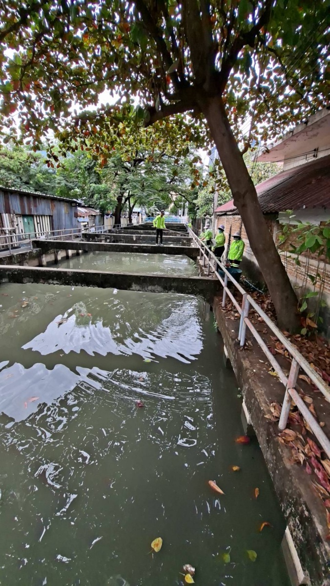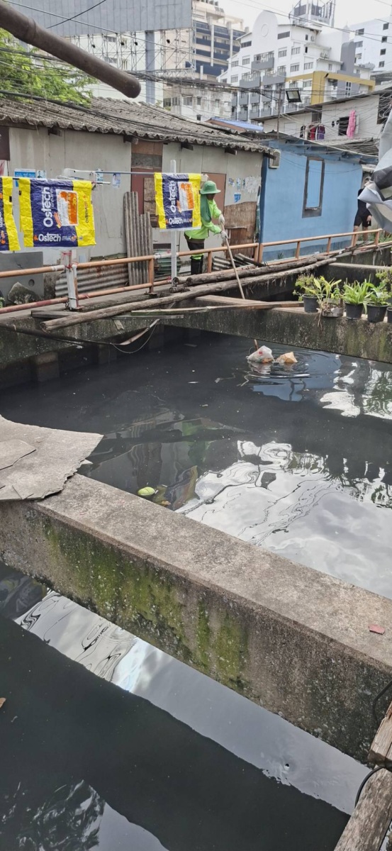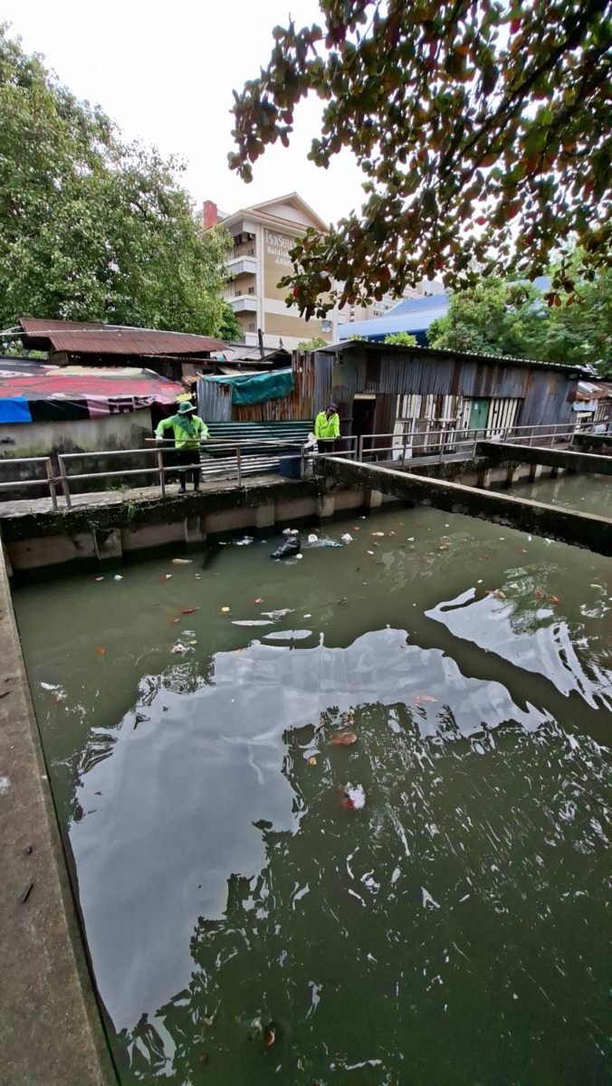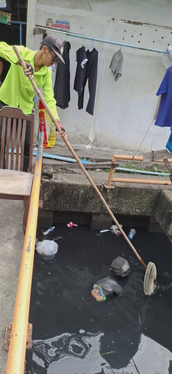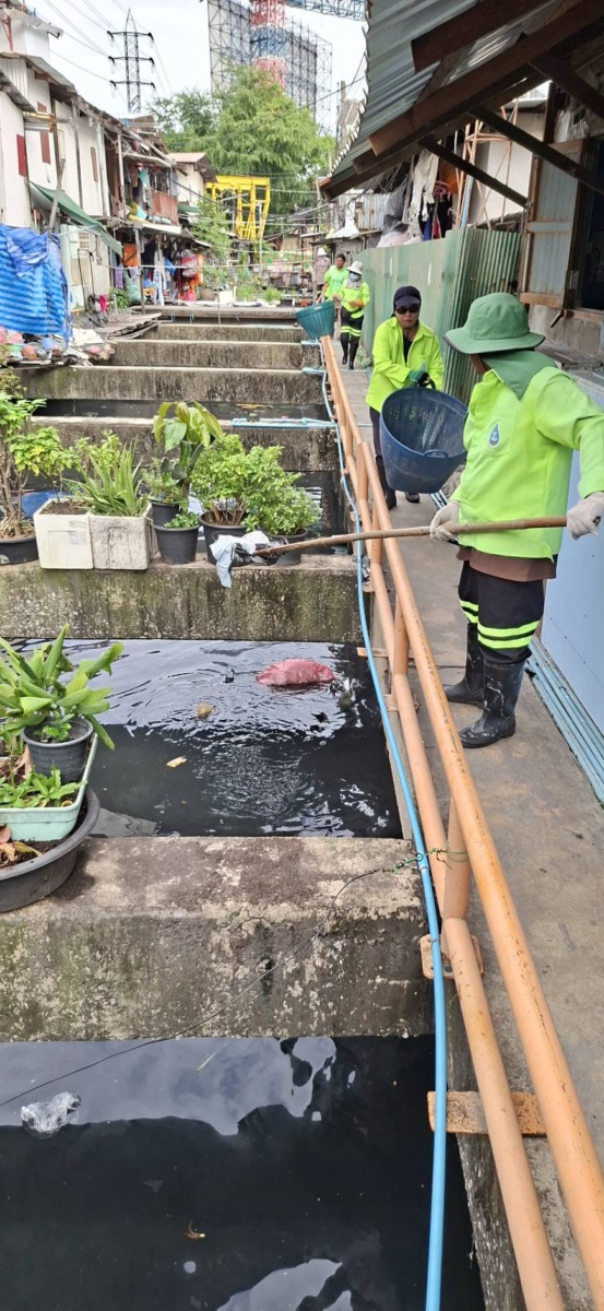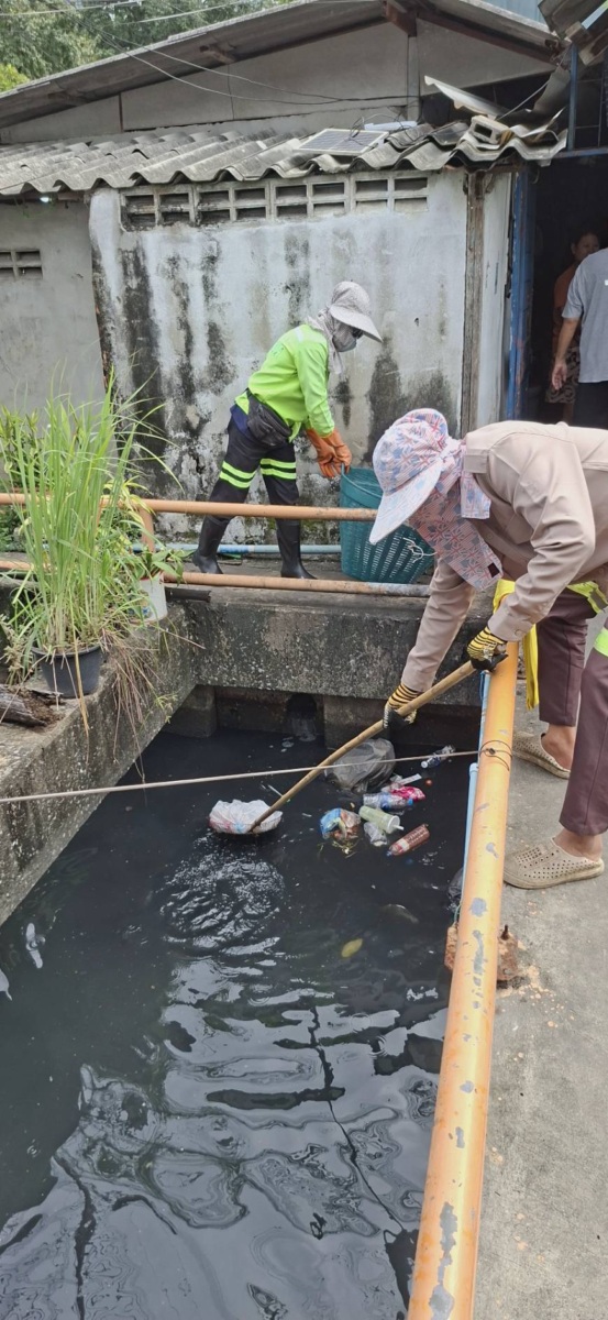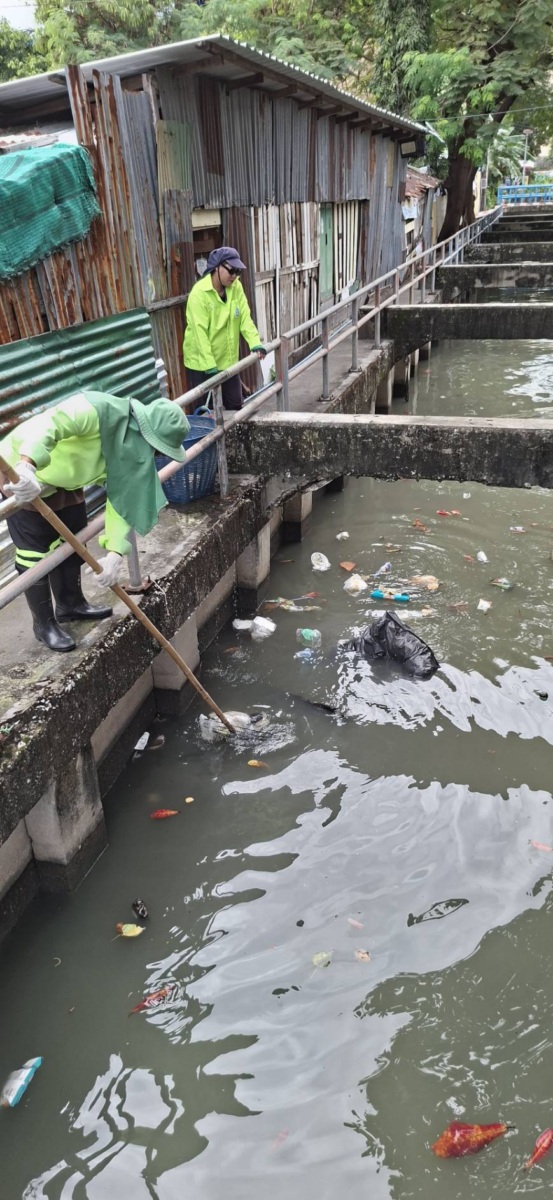 เจ้าหน้าที่ ตักขยะวัชพืชหน้า ปตร.แสนเลิส แพดักขยะข้างวัดมักกะสัน พื้นที่เขตวัฒนา