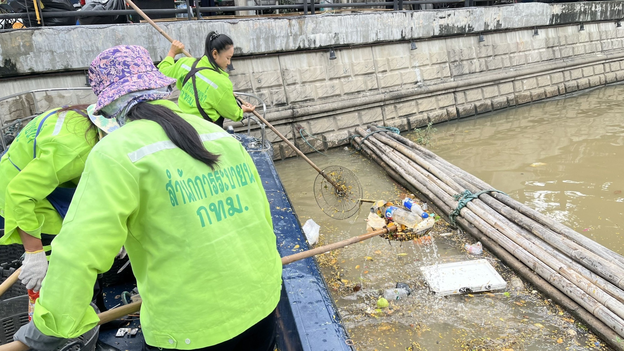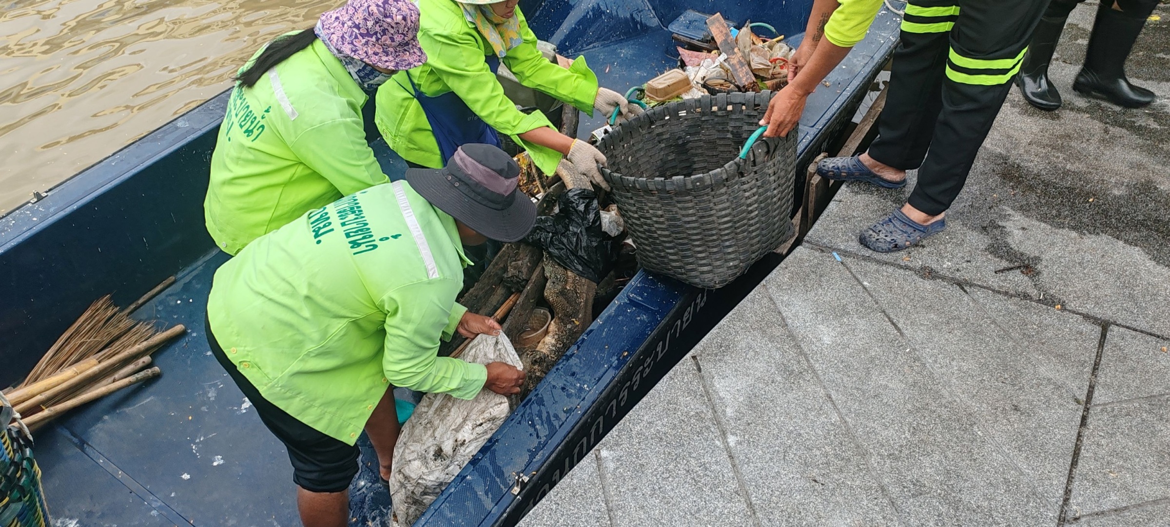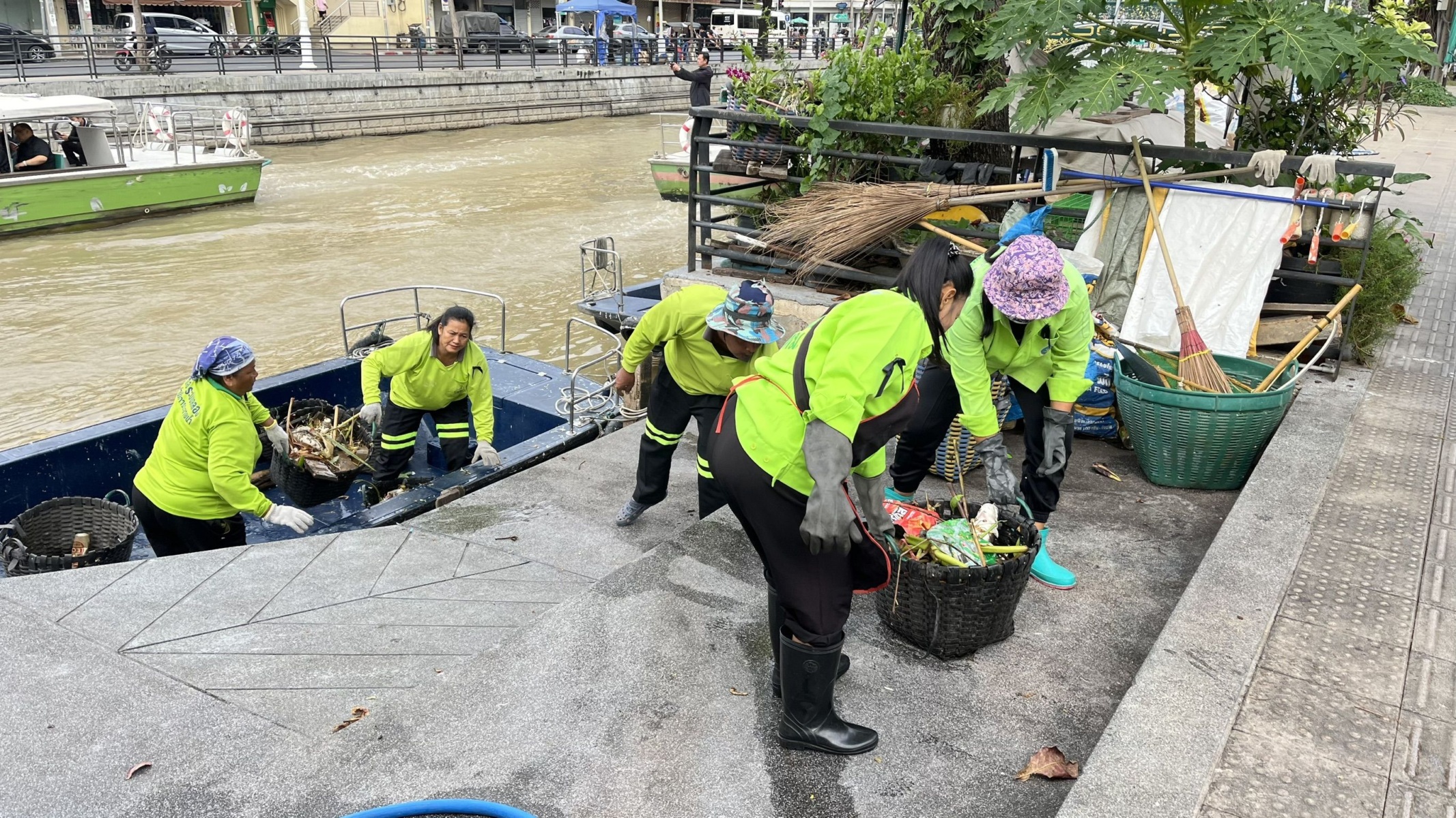 เจ้าหน้าที่ ตักเก็บขยะและวัชพืชเก็บจาก ปตร. เทเวศร์ตลอดช่วงสะพานมัฆวานถึงสี่แยกมหานาค พื้นที่เขตดุสิต เขตพระนคร เขตป้อมปราบศัตรูพ่าย