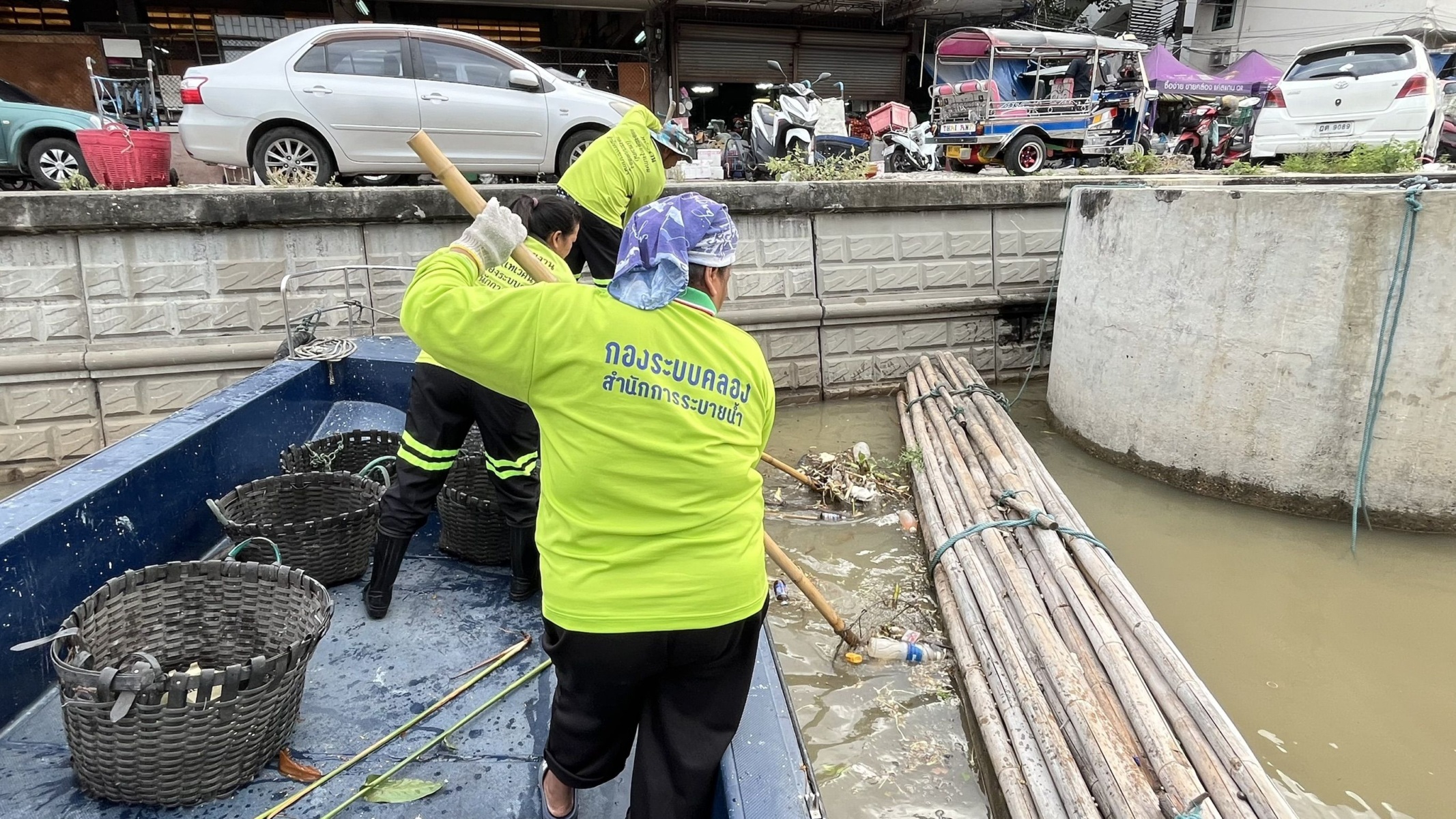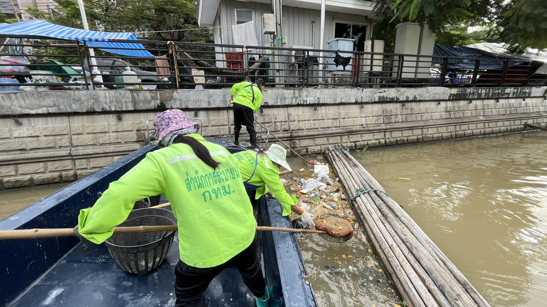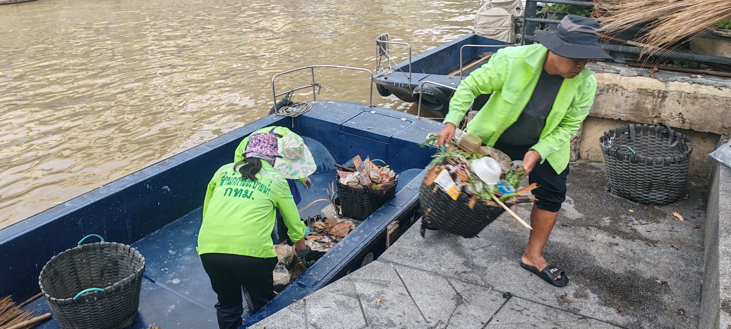 เจ้าหน้าที่ ตักเก็บขยะและวัชพืชเก็บจาก ปตร. เทเวศร์ตลอดช่วงสะพานมัฆวานถึงสี่แยกมหานาค พื้นที่เขตดุสิต เขตพระนคร เขตป้อมปราบศัตรูพ่าย