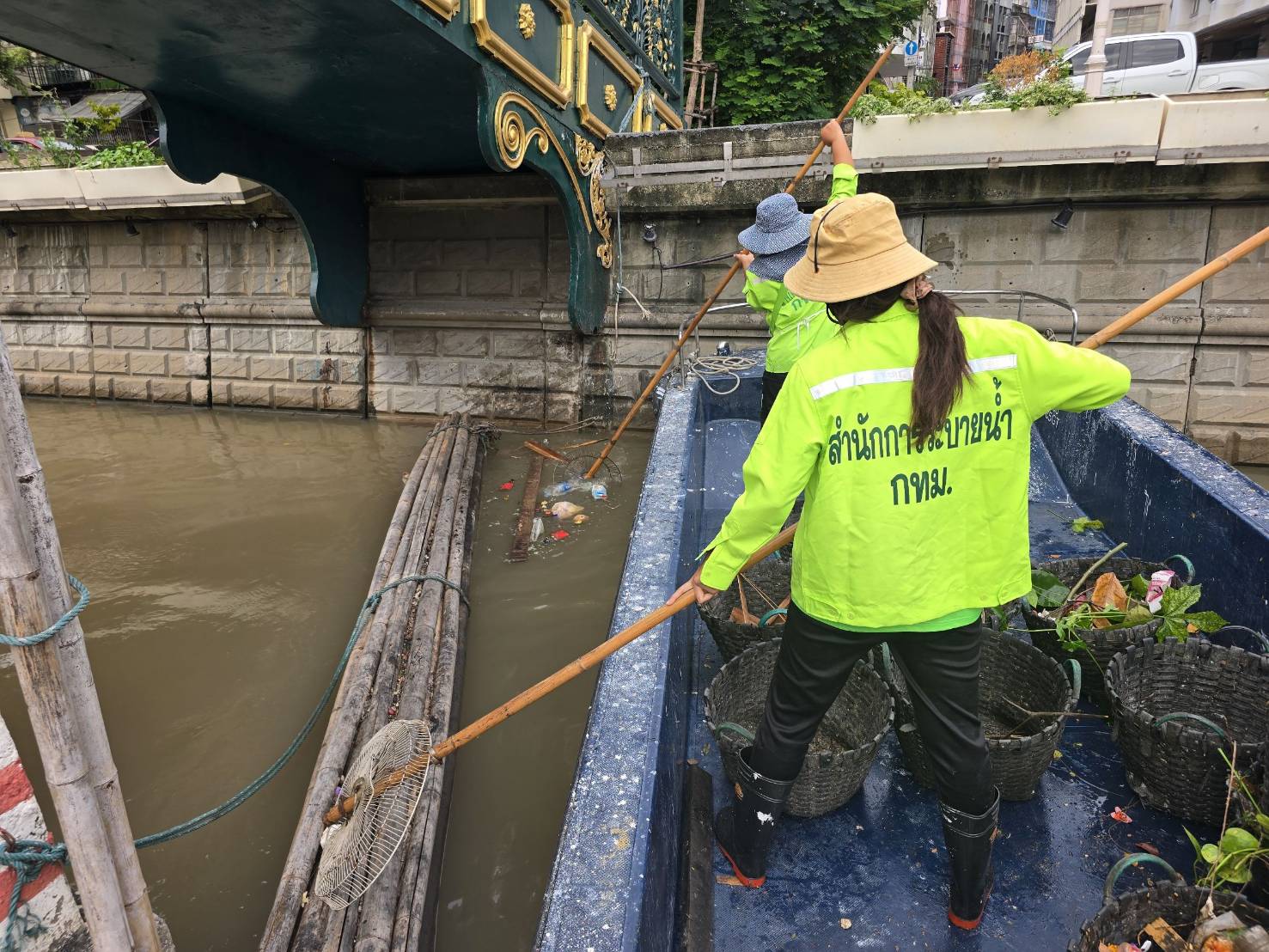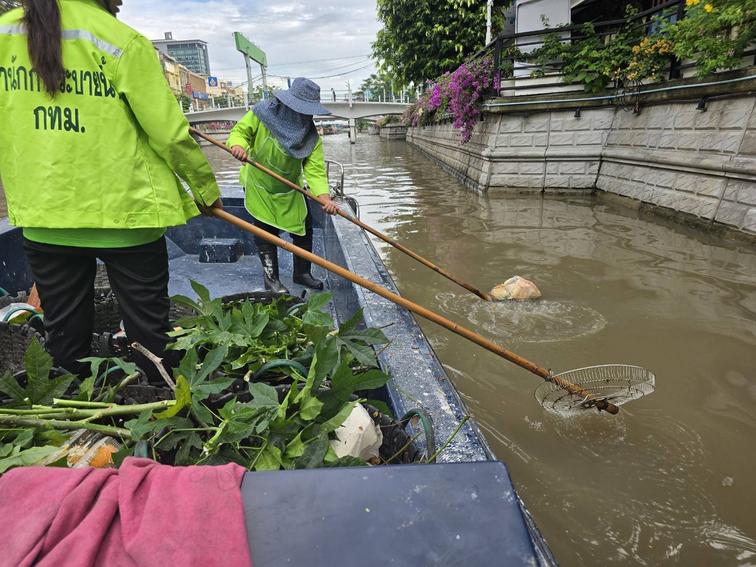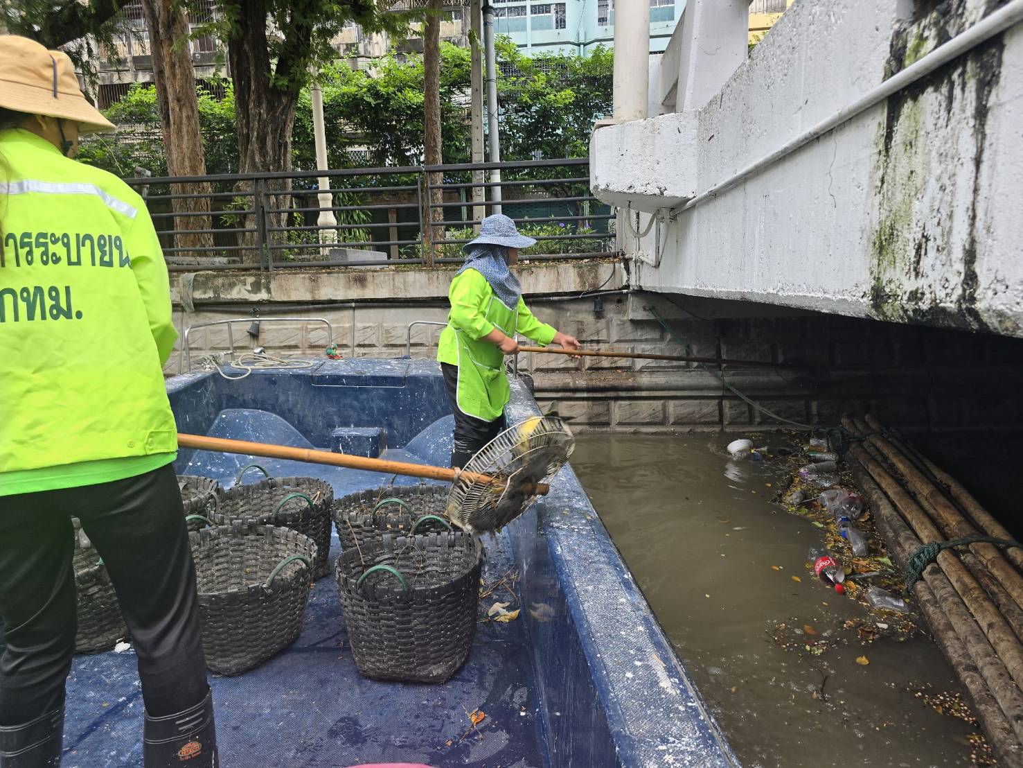 เจ้าหน้าที่ เก็บขยะช่วงสถานีสูบน้ำกรุงเกษมสะพานเจริญสวัสดิ์-สะพานนพวงศ์-สะพานกษัตริย์ศึกถึงสี่แยกมหานาค พื้นที่เขตปทุมวัน เขตป้อมปราบศัตรูพ่าย