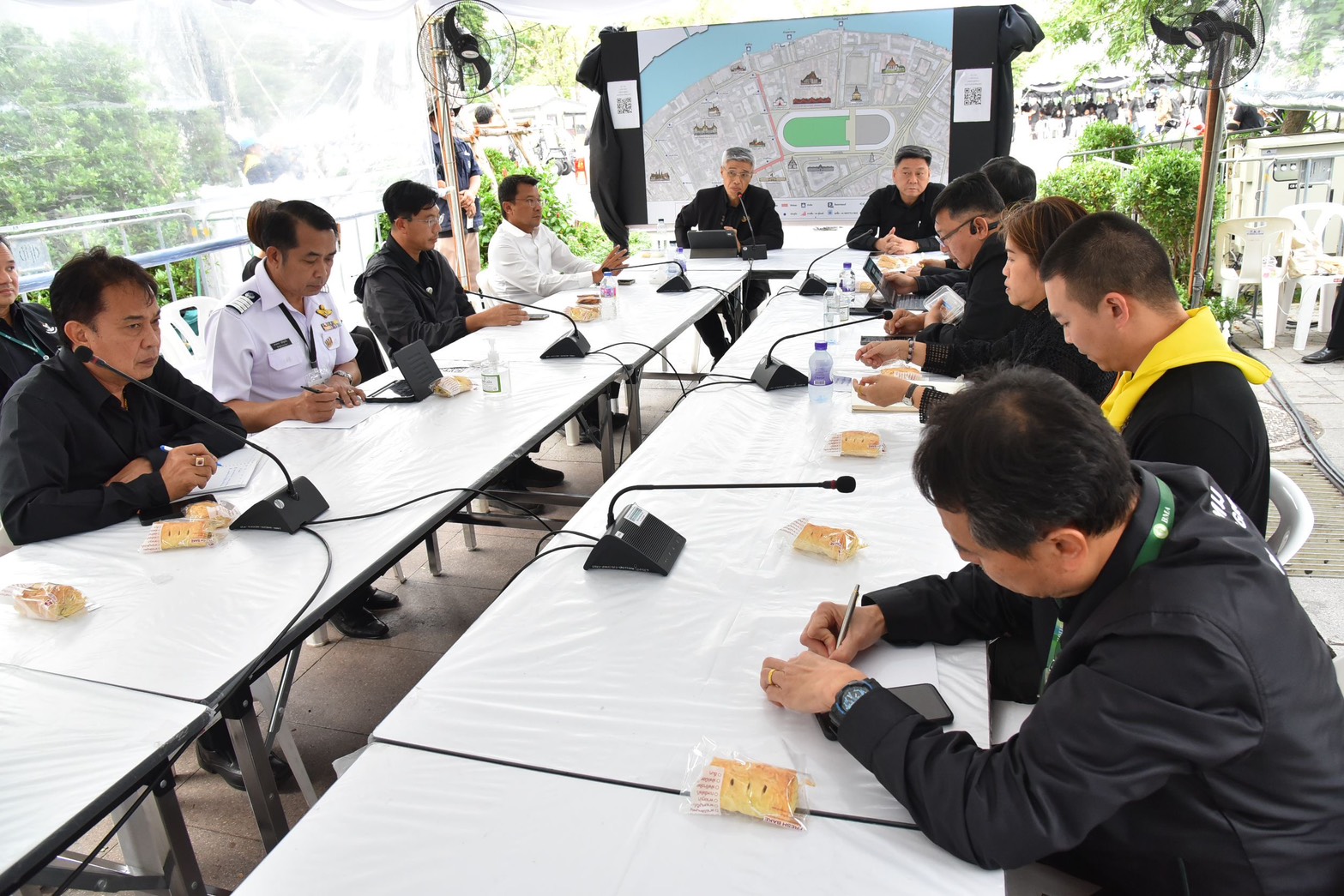 ในการนี้ นายจิระเดช กรุณกฤตกุล รองปลัดกรุงเทพมหานคร คณะผู้บริหารกรุงเทพมหานคร และหน่วยงานที่เกี่ยวข้อง ร่วมประชุม ณ ศูนย์อำนวยการสนามหลวง เขตพระนคร