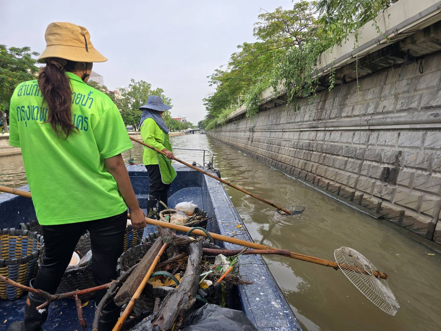 เจ้าหน้าที่ เก็บขยะช่วงสถานีสูบน้ำกรุงเกษมสะพานเจริญสวัสดิ์-สะพานนพวงศ์-สะพานกษัตริย์ศึก ถึงสี่แยกมหานาค เขตปทุมวันและเขตป้อมปราบศัตรูพ่าย