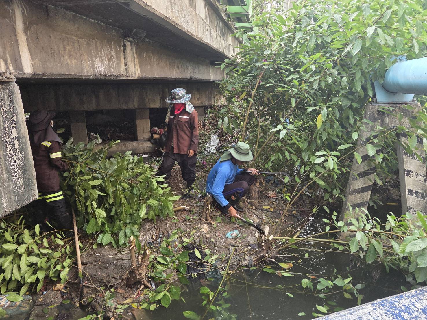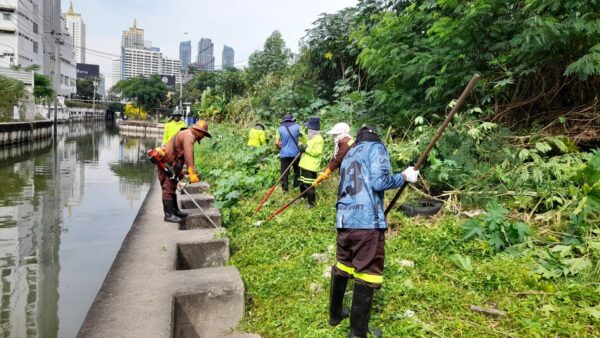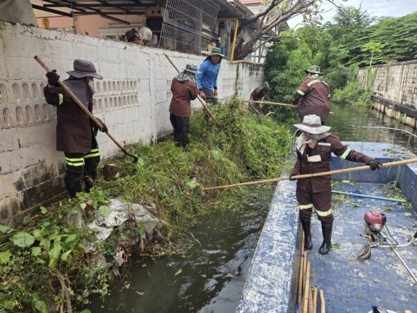 เจ้าหน้าที่ ตักขยะกำจัดวัชพืชคลองสามเสนช่วงหลังโรงบาลพระมงกุฏถึงอนุสาวรีย์ชัย เขตพญาไทและเขตราชเทวี 25 พฤศจิกายน 2025