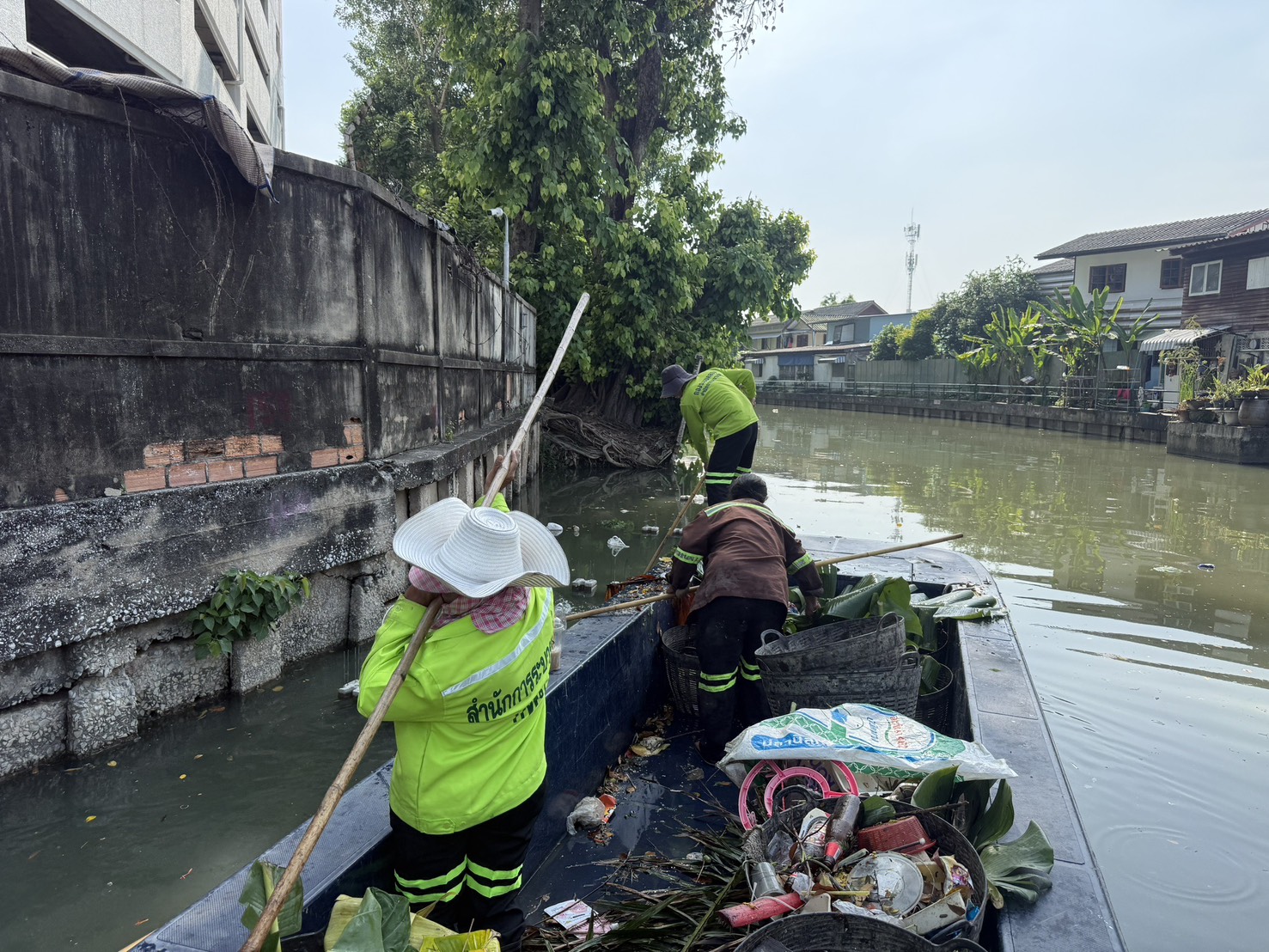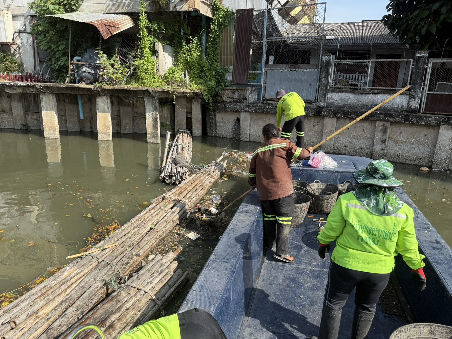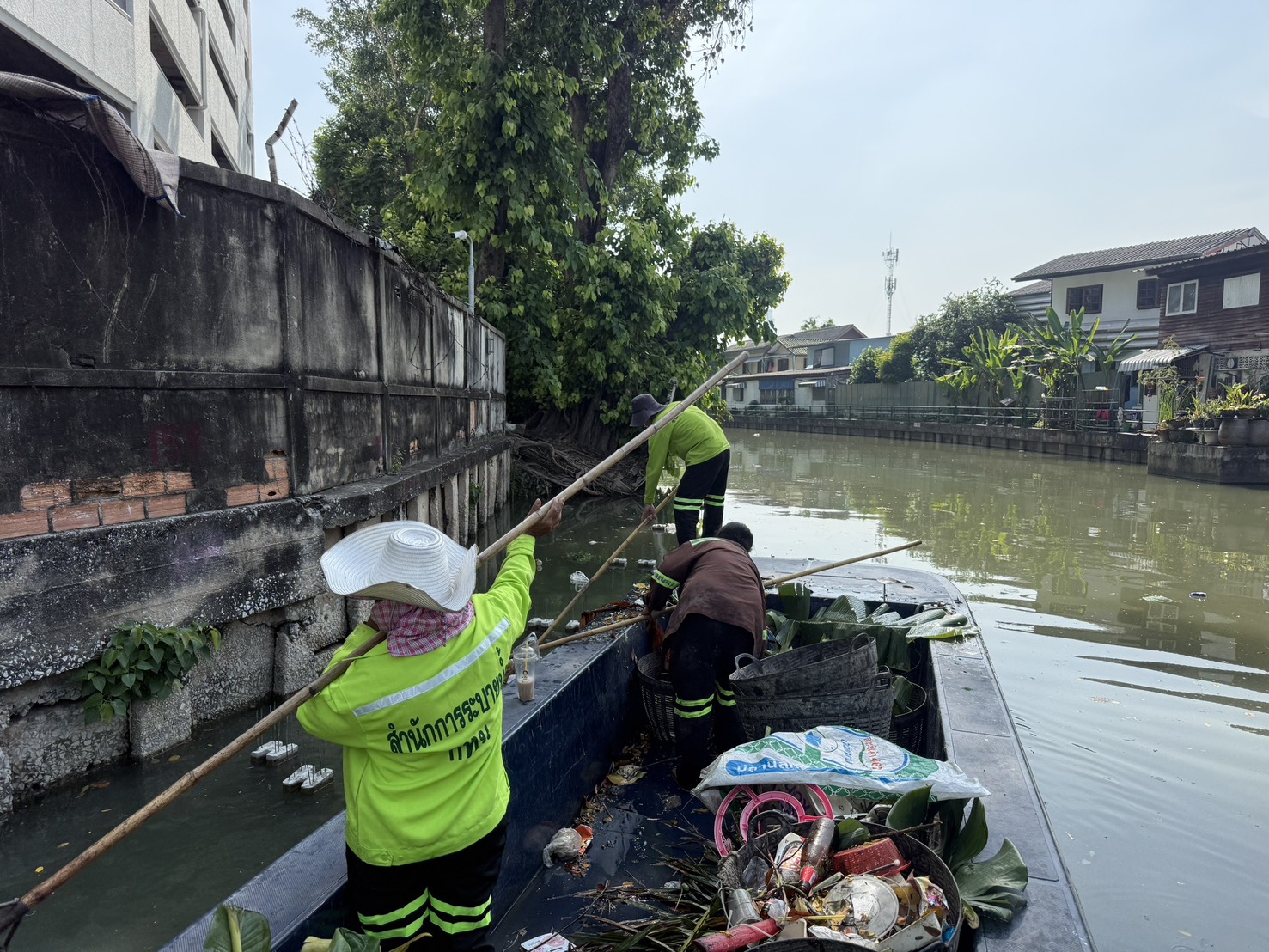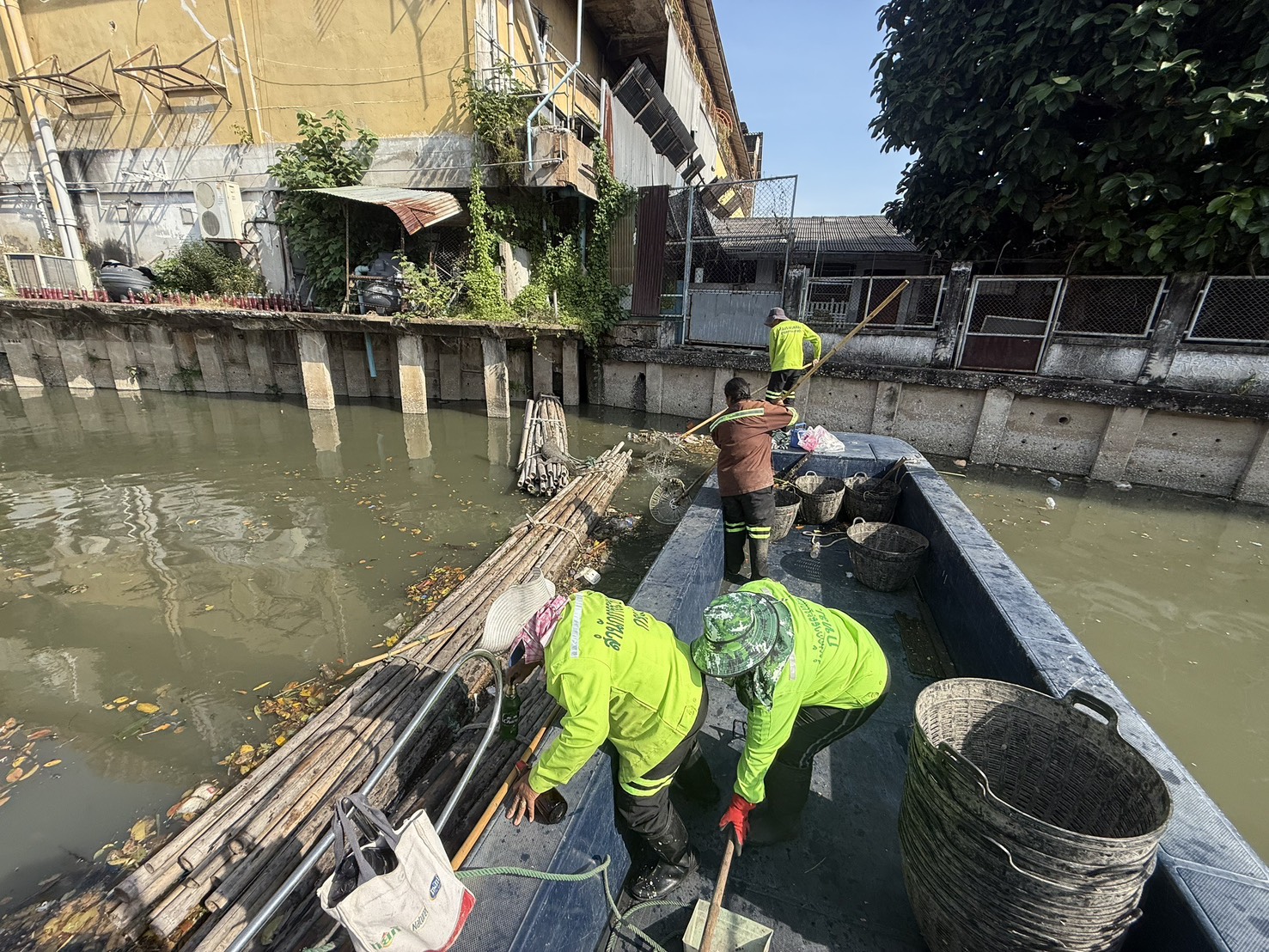 เจ้าหน้าที่ ตักขยะกำจัดวัชพืชคลองสามเสน เขตดุสิต