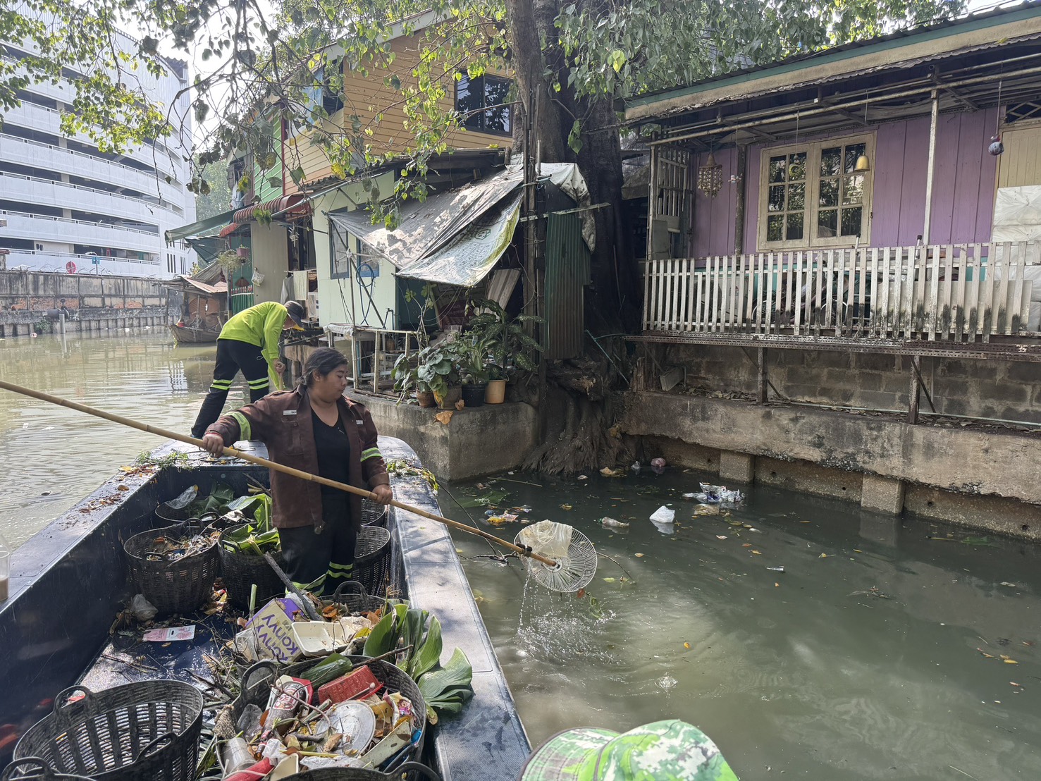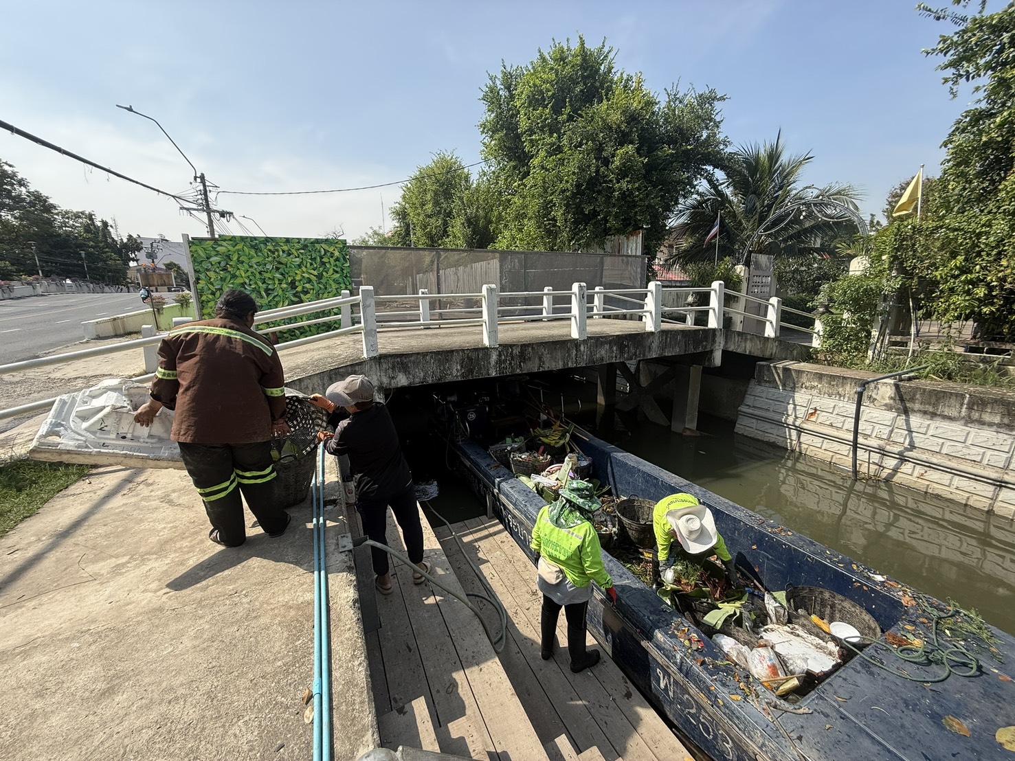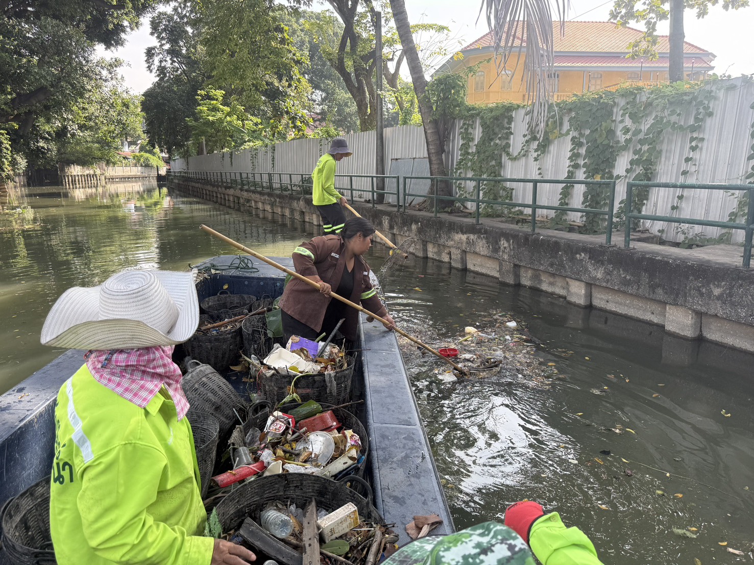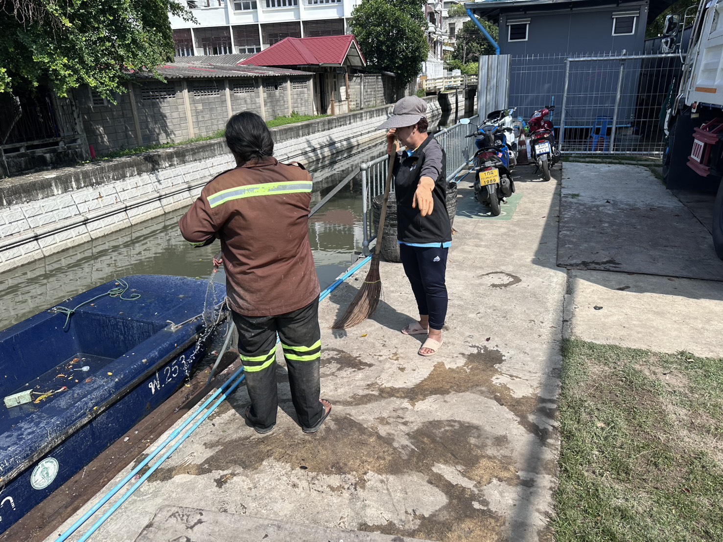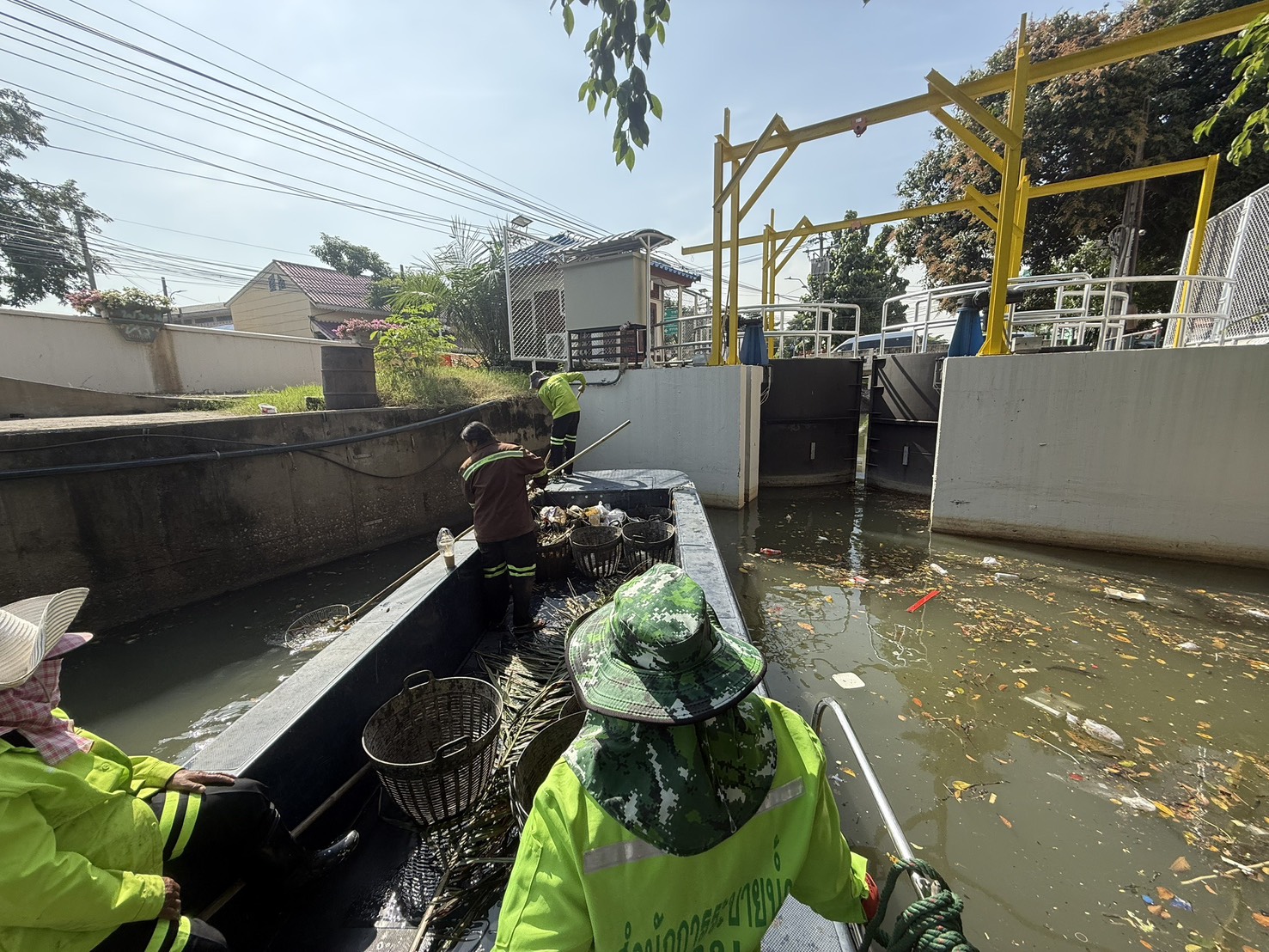 เจ้าหน้าที่ ตักขยะกำจัดวัชพืชคลองสามเสน เขตดุสิต