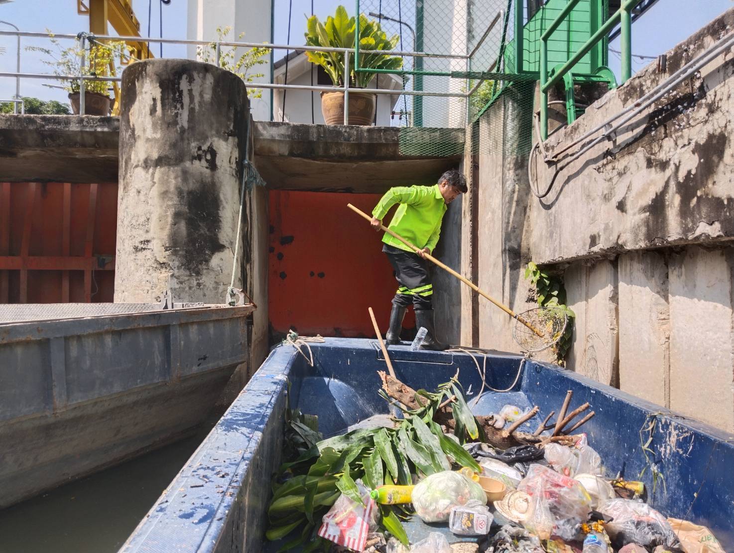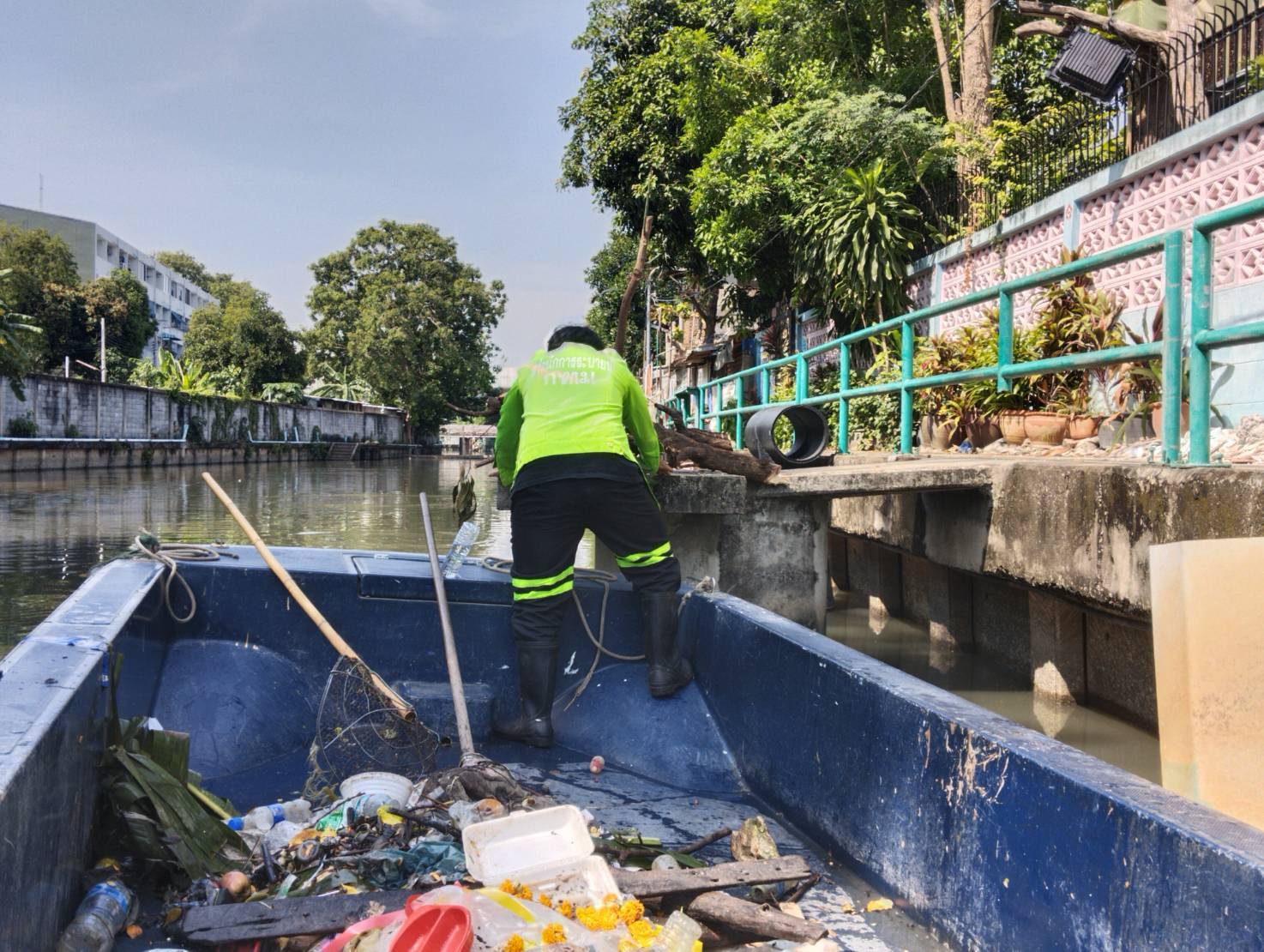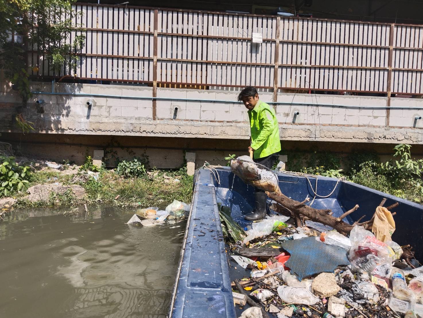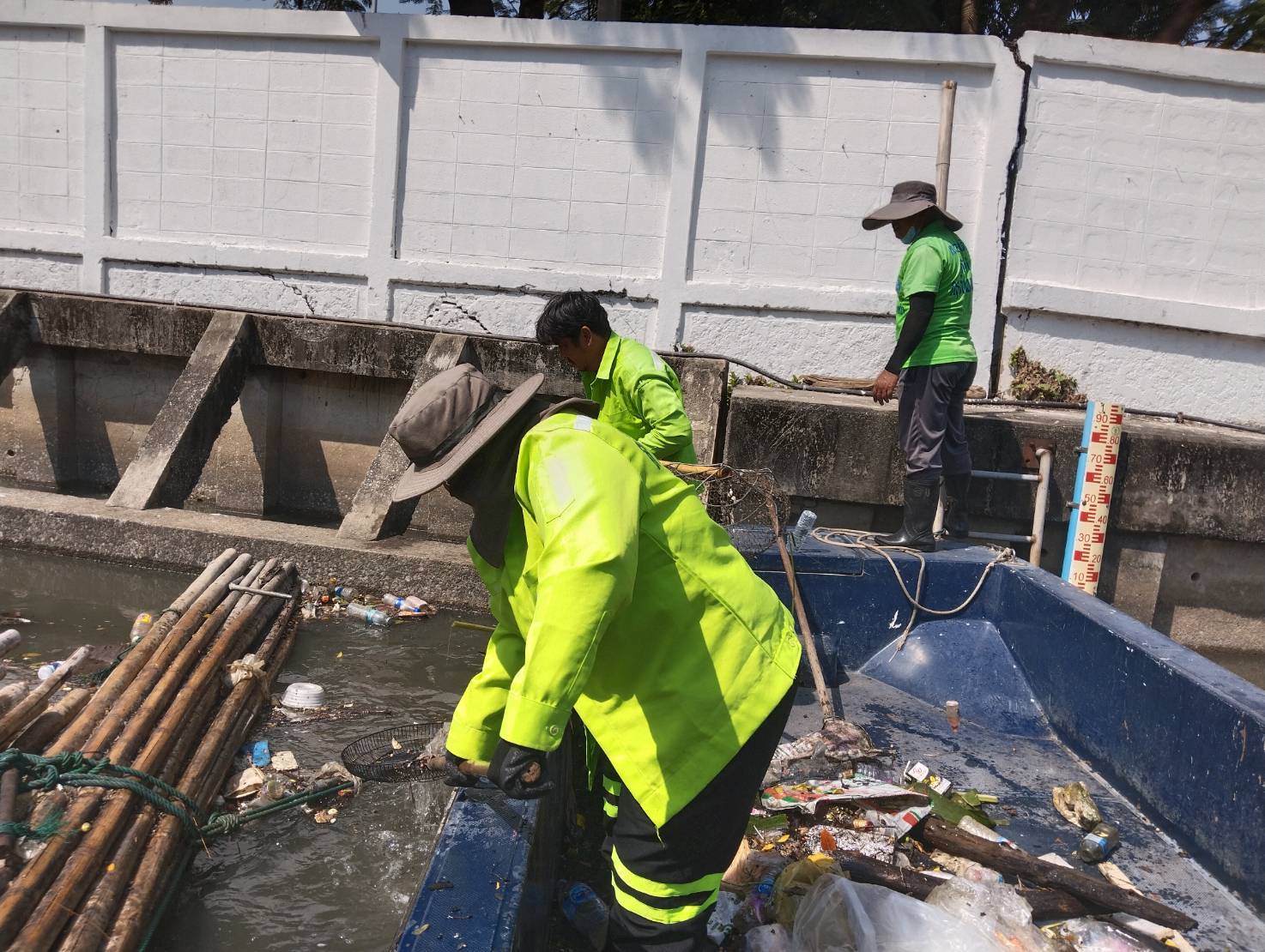 เจ้าหน้าที่ ตักขยะตัดหญ้าคลองบางซื่อ ช่วงประตูวัดแก้วฟ้าถึงถนนรัชดา พื้นที่เขตบางซื่อ เขตดุสิต เขตพญาไท เขตจตุจักร
