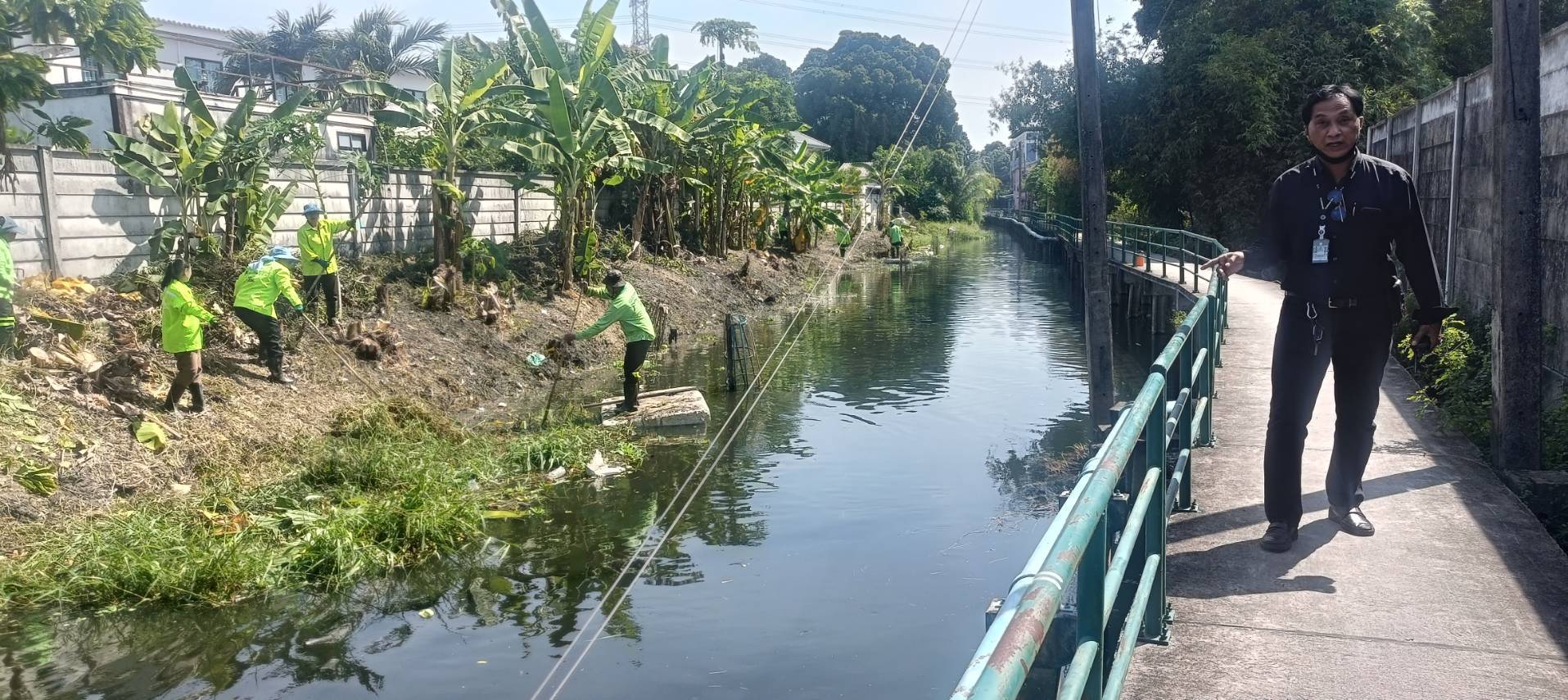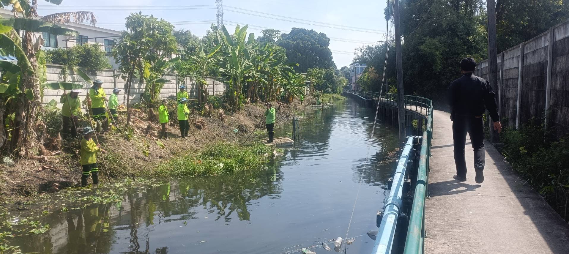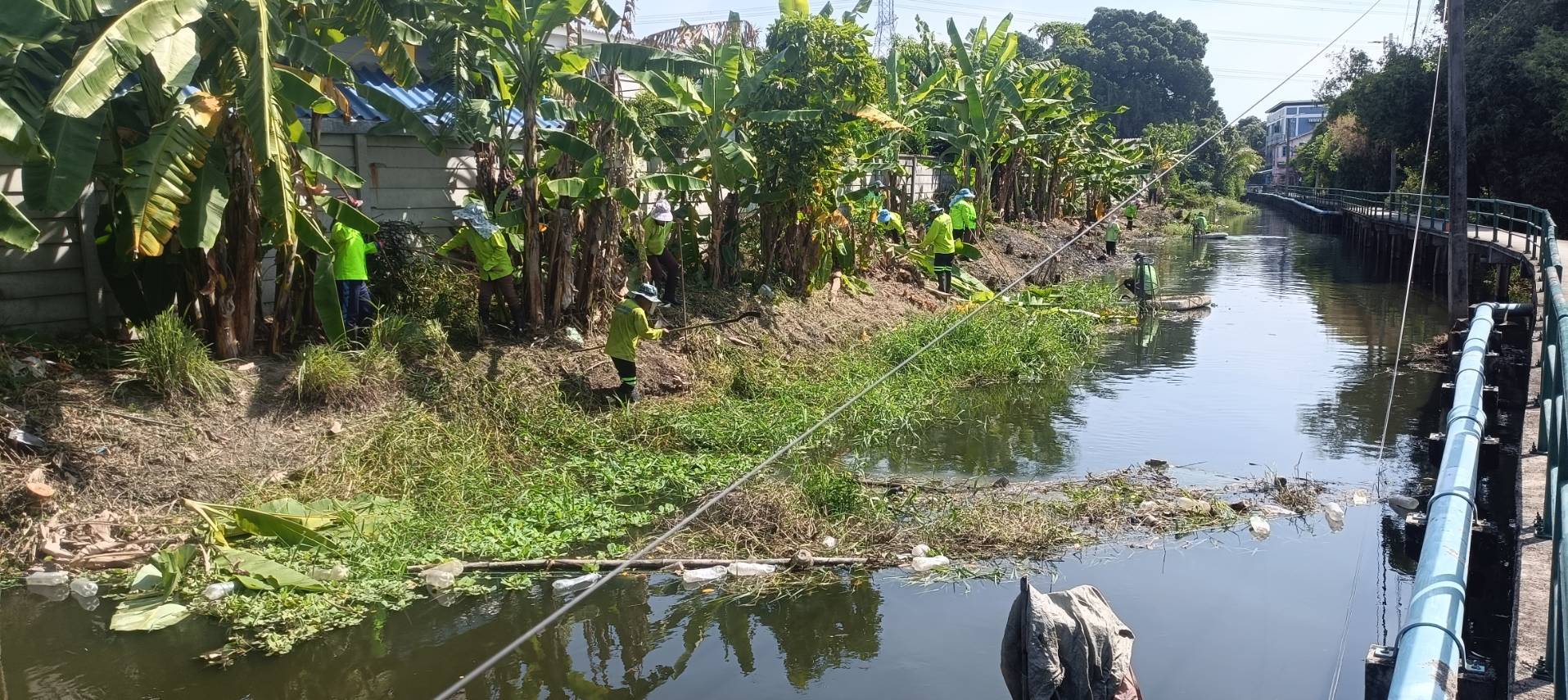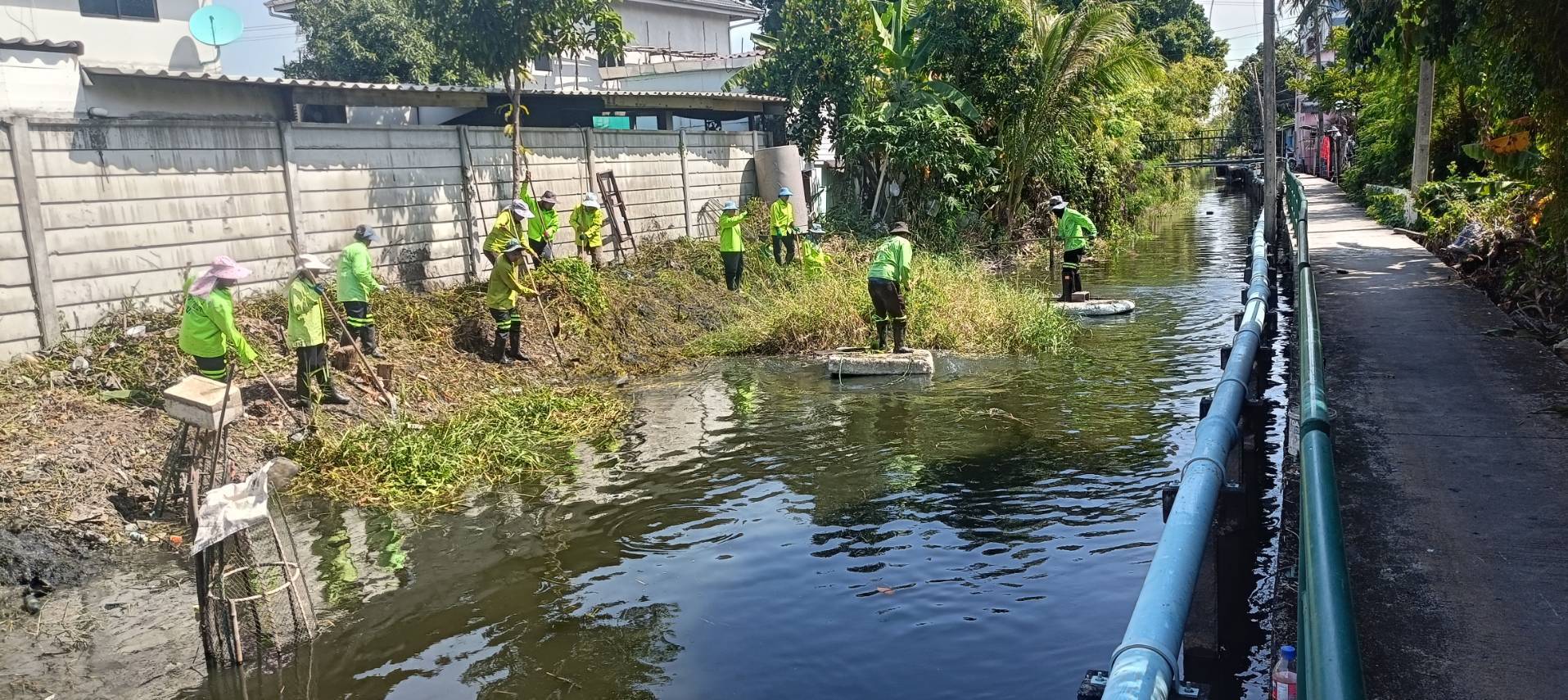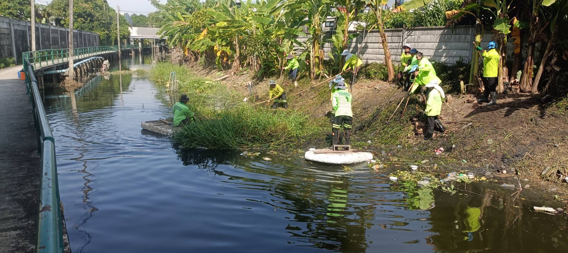 สำนักการระบายน้ำ จัดเก็บวัชพืชตัดหญ้าคลองสองห้อง พื้นที่เขตประเวศ