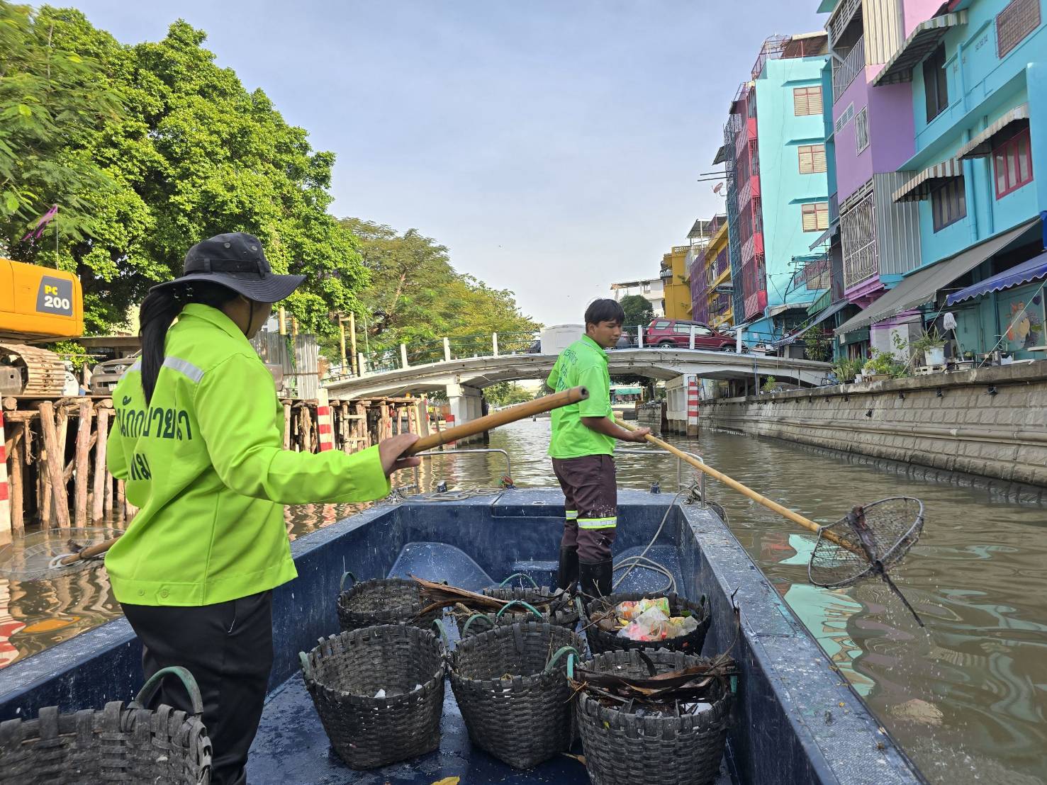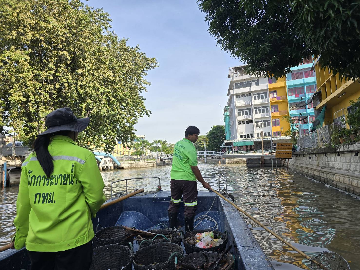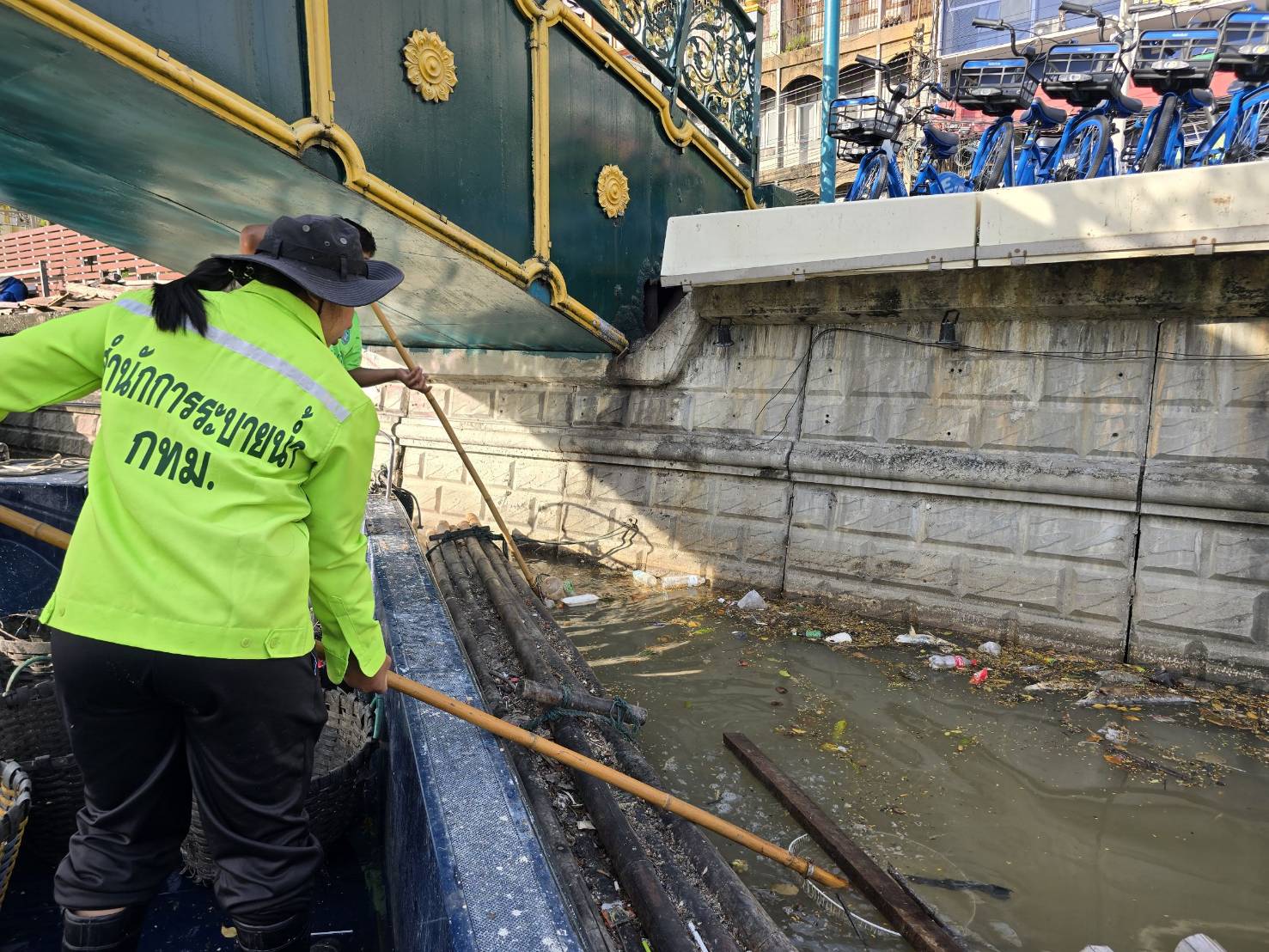 เจ้าหน้าที่ เก็บขยะสถานีสูบน้ำกรุงเกษมสะพานเจริญสวัสดิ์-สะพานนพวงศ์-สะพานกษัตริย์ศึกถึงสี่แยกมหานาค