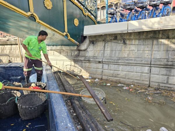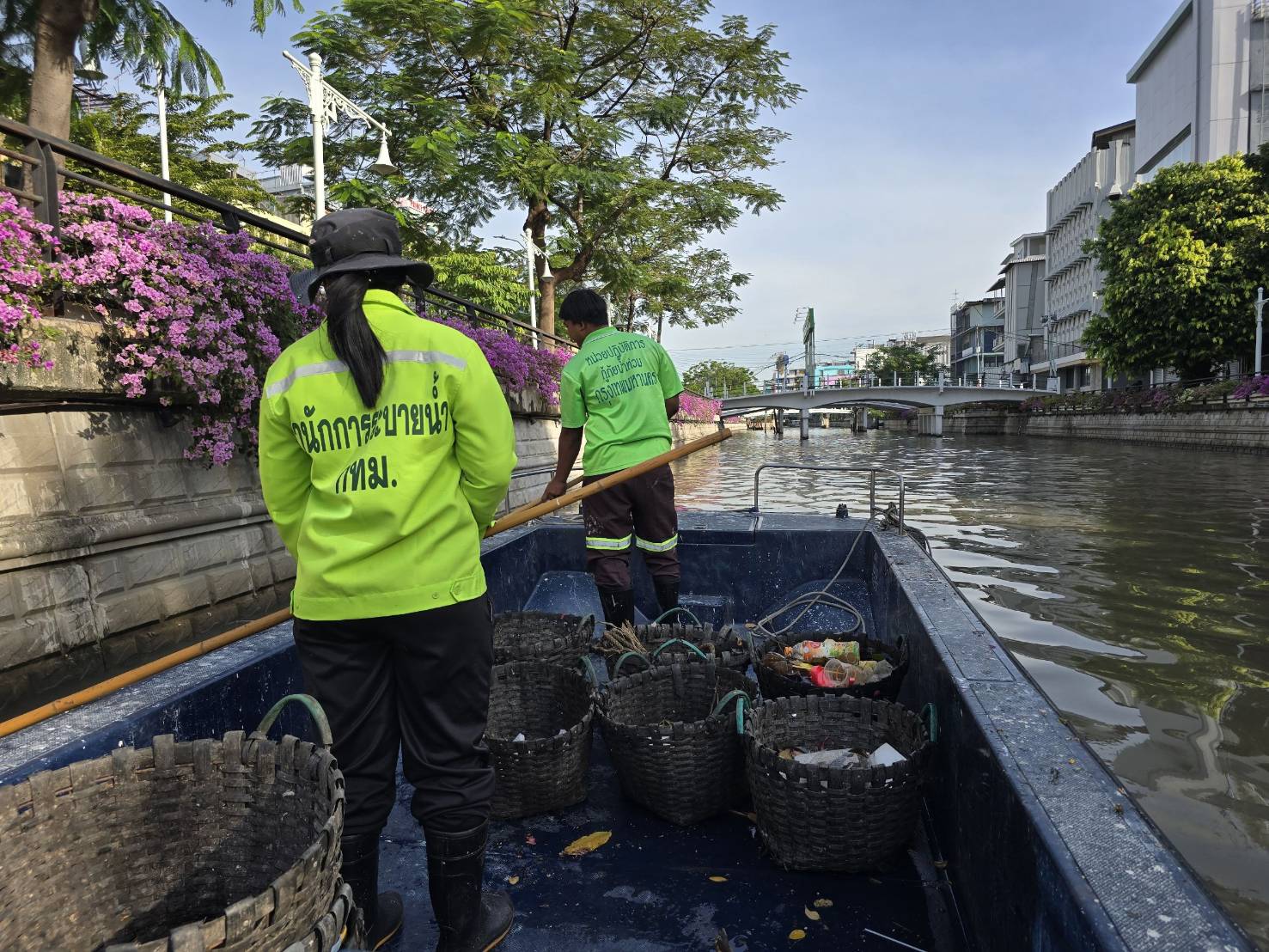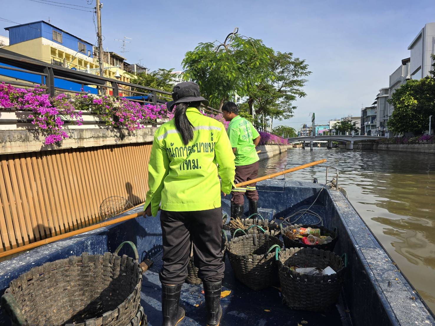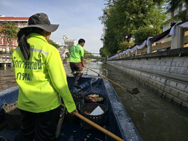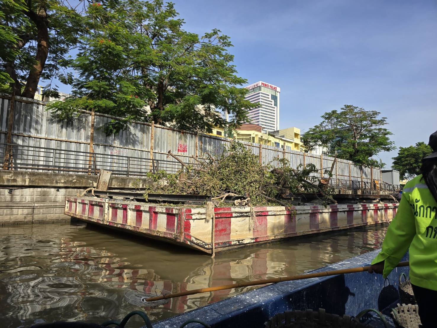 เจ้าหน้าที่ เก็บขยะสถานีสูบน้ำกรุงเกษมสะพานเจริญสวัสดิ์-สะพานนพวงศ์-สะพานกษัตริย์ศึกถึงสี่แยกมหานาค