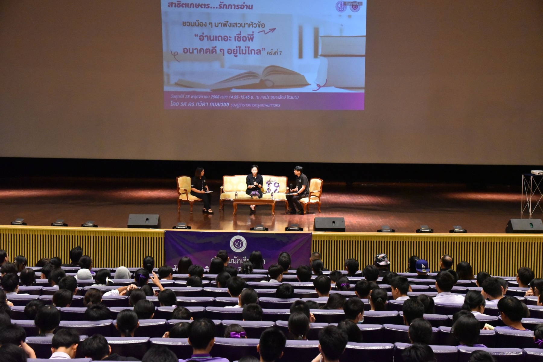 ทั้งนี้ สมาคมนักเรียนเก่าโรงเรียนสาธิตแห่งมหาวิทยาลัยเกษตรศาสตร์ ร่วมกับโรงเรียนสาธิตแห่งมหาวิทยาลัยเกษตรศาสตร์ ศูนย์วิจัยและพัฒนาการศึกษา จัดเสวนาดังกล่าวขึ้นภายใต้โครงการสาธิตเกษตร..รักการอ่าน ให้กับนักเรียนชั้นมัธยมศึกษาปีที่ 1 – 3 เพื่อส่งเสริมให้นักเรียน อาจารย์ และบุคลากร มีนิสัยรักการอ่าน