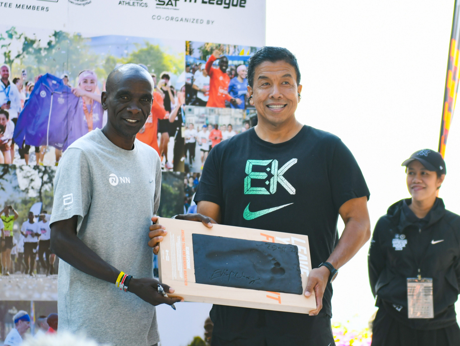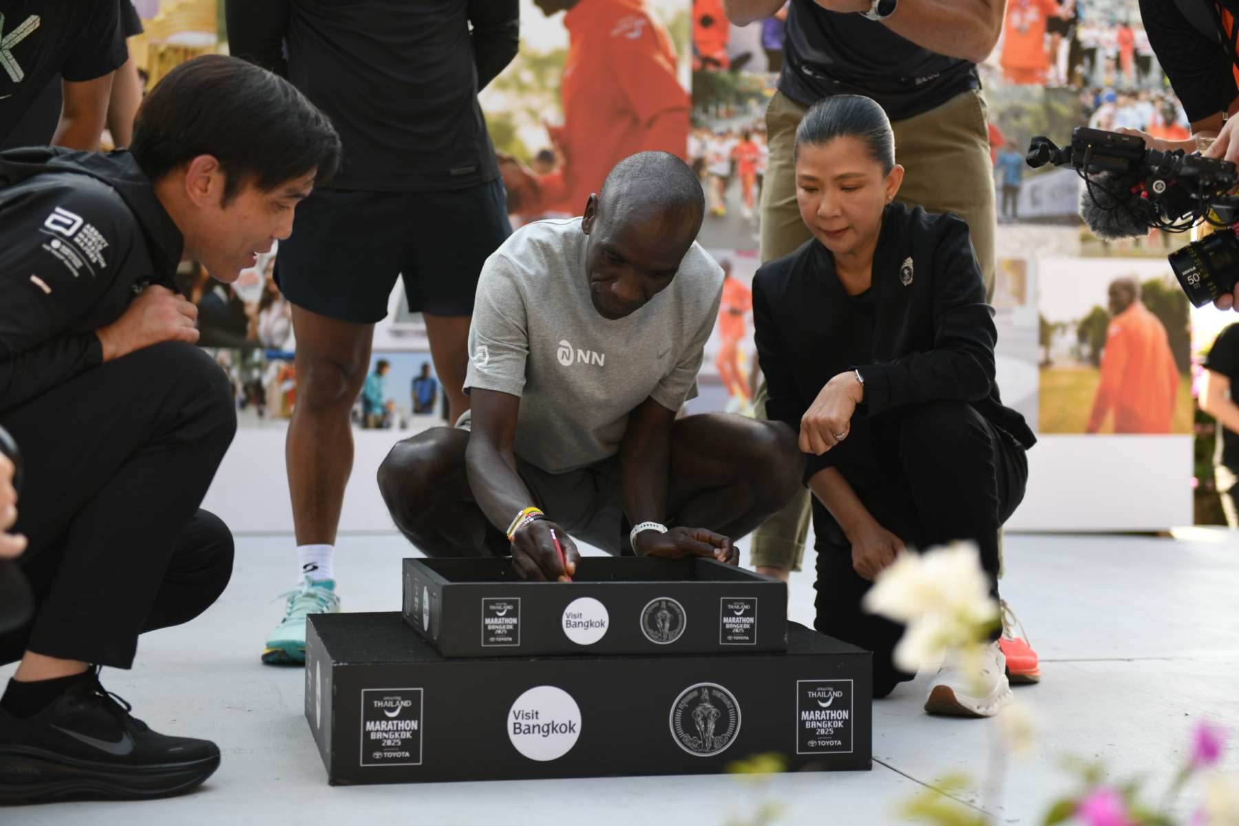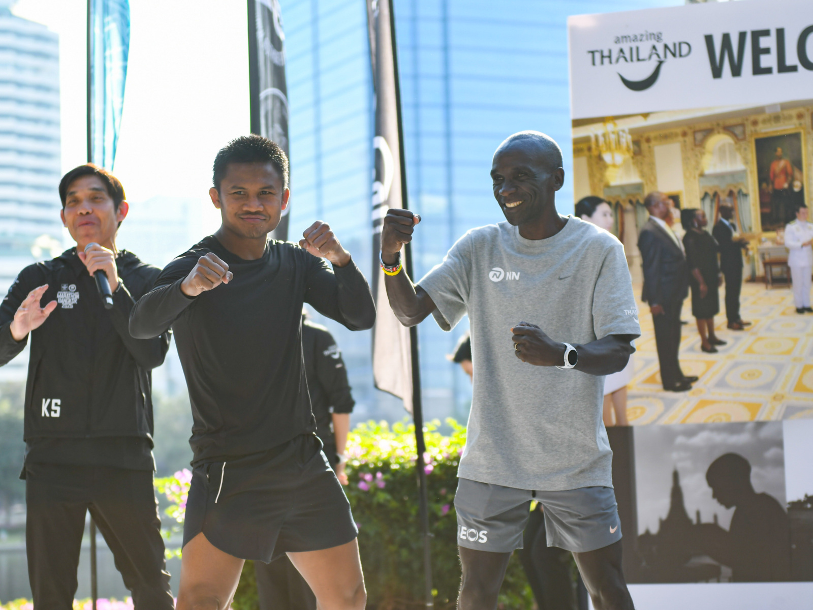 สำหรับกิจกรรม Footprint Ceremony ที่สวนเบญจกิติ ในวันนี้ เป็นกิจกรรมพิเศษเพื่อโปรโมตประเทศไทยของ “อีลิอุด คิปโชเก้” ในฐานะทูตด้านการท่องเที่ยว กีฬา และวัฒนธรรม โดยคิปโชเก้ถือเป็นตํานานนักวิ่งมาราธอนชาวเคนยา เจ้าของเหรียญทองโอลิมปิก 2 สมัย และผู้ทําสถิติโลก ซึ่งจะเข้าร่วมการแข่งขันวิ่งระดับนานาชาติ “อะเมซิ่ง ไทยแลนด์ มาราธอน แบงค็อก 2025 (AMAZING THAILAND MARATHON BANKOK 2025)” ในวันพรุ่งนี้ (30 พ.ย. 68) ด้วย