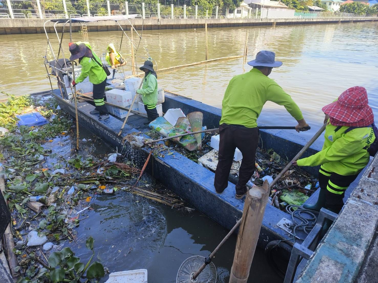 เจ้าหน้าที่ จัดเก็บขยะและวัชพืชคลองแสนแสบ-คลองสองต้นนุ่น-คลองลำนายโส-คลองลำบึงขวาง-คลองลาดบัวขาว พื้นที่เขตมีนบุรี