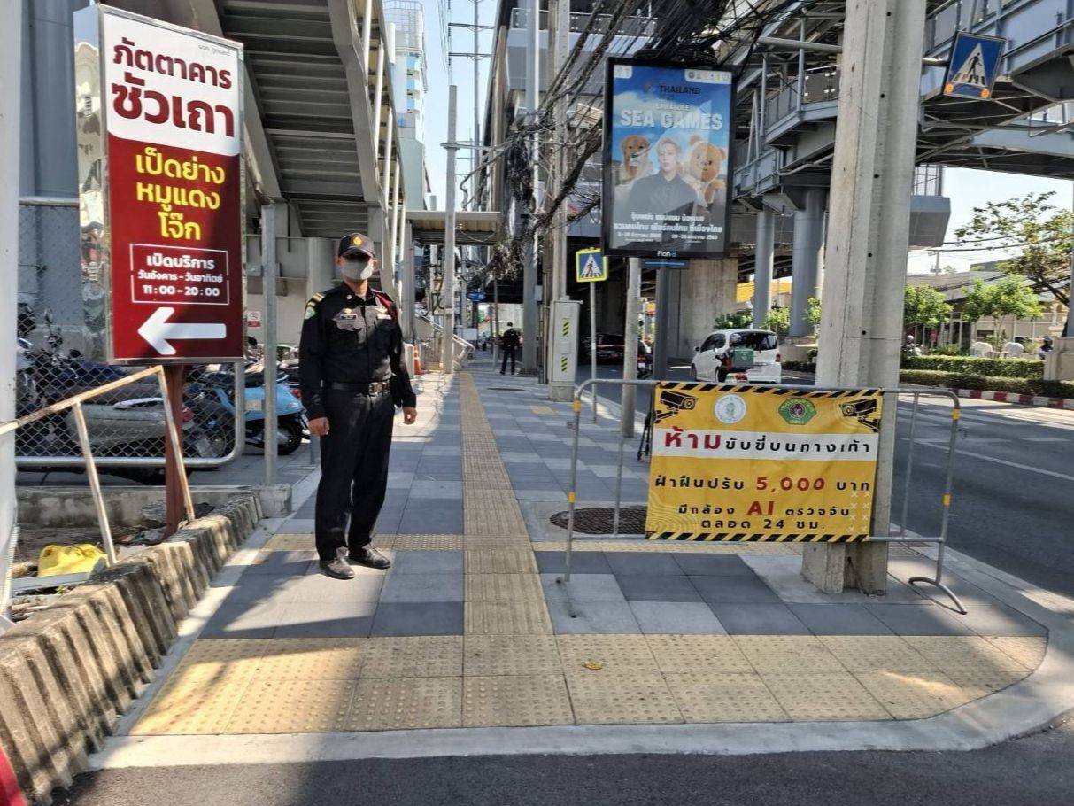 ตรวจจุดติดตั้งกล้อง CCTV จับภาพอัจฉริยะผ่านระบบ BMA AI CAMERA หน้าฟู้ดแลนด์ ระหว่างซอยลาดพร้าว 91-101 ซึ่งเขตฯ มีจุดติดตั้งกล้อง CCTV จำนวน 2 จุด ได้แก่ 1.ปากซอยลาดพร้าว 98 2.ปากซอยลาดพร้าว 91-101 เพื่อตรวจจับผู้กระทำความผิดขับขี่รถจักรยานยนต์บนทางเท้า กวดขันวินัยจราจรเปรียบเทียบปรับแก่ผู้ฝ่าฝืนนำรถยนต์ขึ้นมาจอดหรือผู้ขับขี่รถจักรยานยนต์บนทางเท้า บังคับการตามพระราชบัญญัติรักษาความสะอาดและความเป็นระเบียบเรียบร้อยของบ้านเมือง พ.ศ.2535 และที่แก้ไขเพิ่มเติม และพระราชบัญญัติว่าด้วยการปรับเป็นพินัย พ.ศ.2565 ซึ่งเขตฯ ได้ติดป้ายประชาสัมพันธ์แจ้งเตือน ตั้งวางแผงเหล็กป้องกันรถจักรยานยนต์ขึ้นมาบนทางเท้า ทั้งนี้ ผู้ฝ่าฝืนต้องระวางโทษปรับเป็นพินัยไม่เกิน 5,000 บาท ในส่วนของการจัดระเบียบวินรถจักรยานยนต์สาธารณะ ปัจจุบันเขตฯ มีวินรถจักรยานยนต์สาธารณะในพื้นที่ 49 วิน ผู้ขับขี่ 2,188 คน เป็นวินรถจักรยานยนต์สาธารณะต้นแบบ 10 วิน ซึ่งเขตฯ จะต้องตรวจความเรียบร้อยตามแบบประเมินวินรถจักรยานยนต์สาธารณะอย่างต่อเนื่อง หากพบว่ามีข้อใดไม่เรียบร้อยให้แจ้งข้อบกพร่องนั้น ๆ แก่ผู้ขับขี่ เพื่อดำเนินการแก้ไขให้ถูกต้องเรียบร้อย