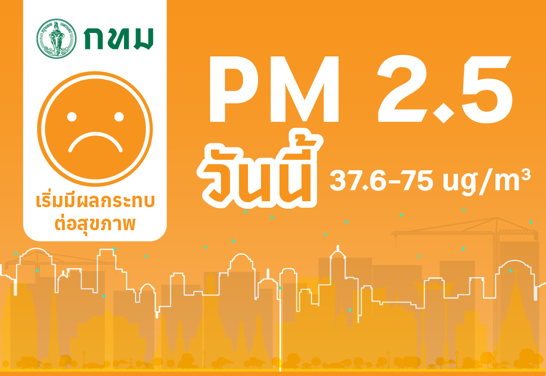 ค่าเฉลี่ยของกรุงเทพมหานคร 47.1 มคก./ลบ.ม. เริ่มมีผลกระทบต่อสุขภาพ (ค่ามาตรฐาน 37.5 มคก./ลบ.ม.)
