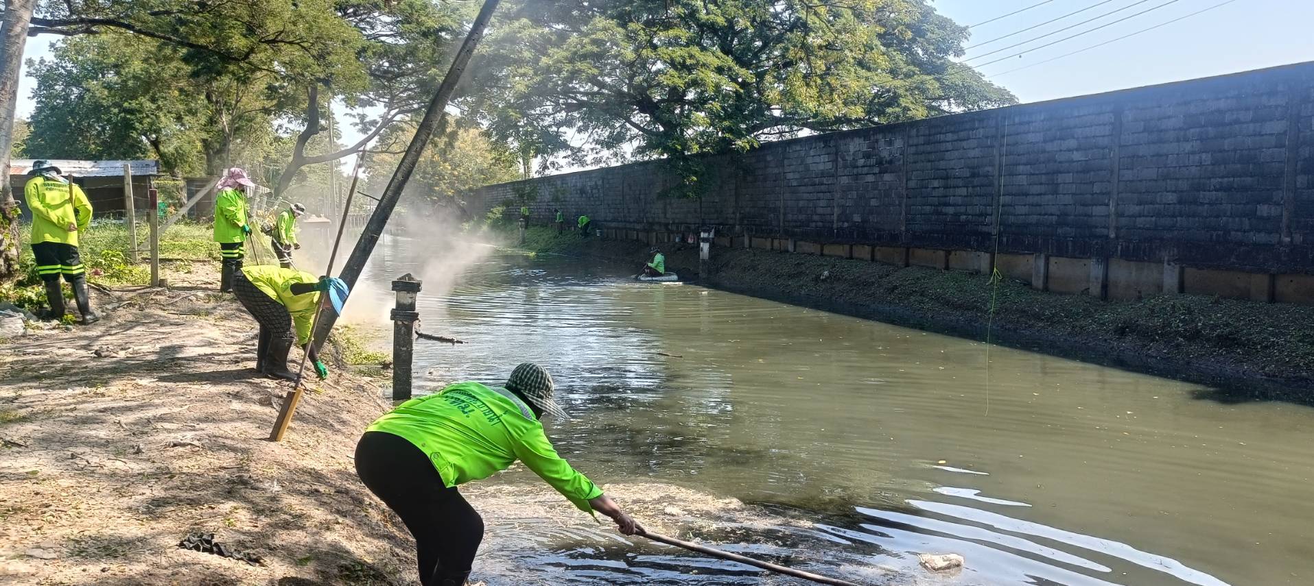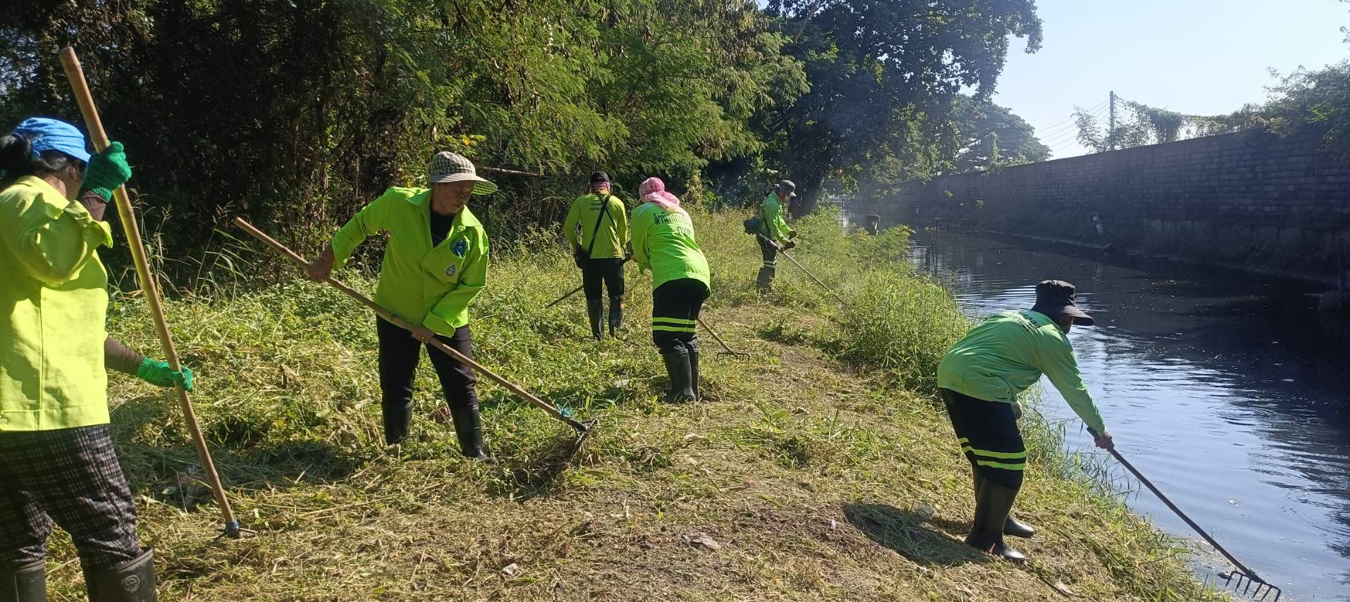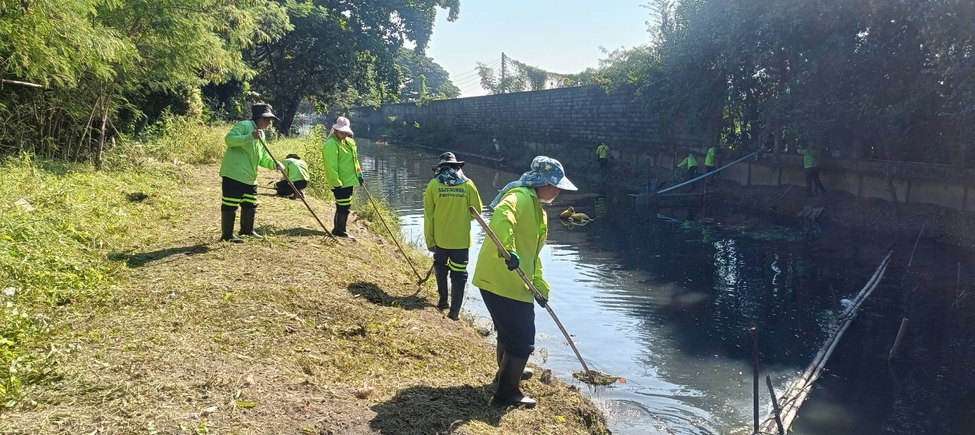 เจ้าหน้าที่ จัดเก็บวัชพืชตัดหญ้าคลองมะขามเทศ ซอยอ่อนนุช66 พื้นที่เขตประเวศ