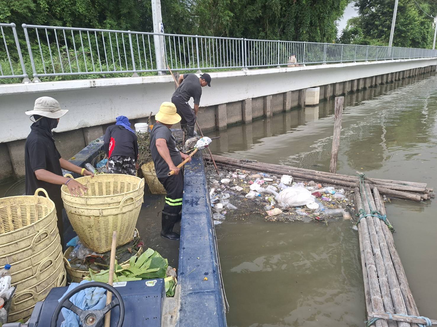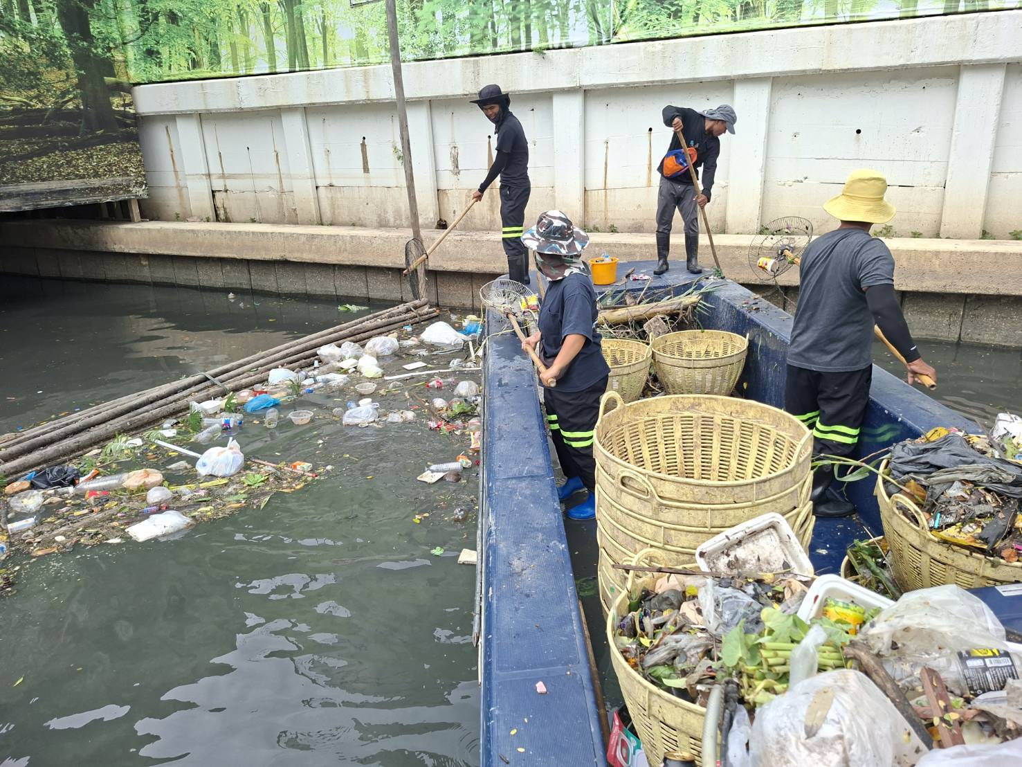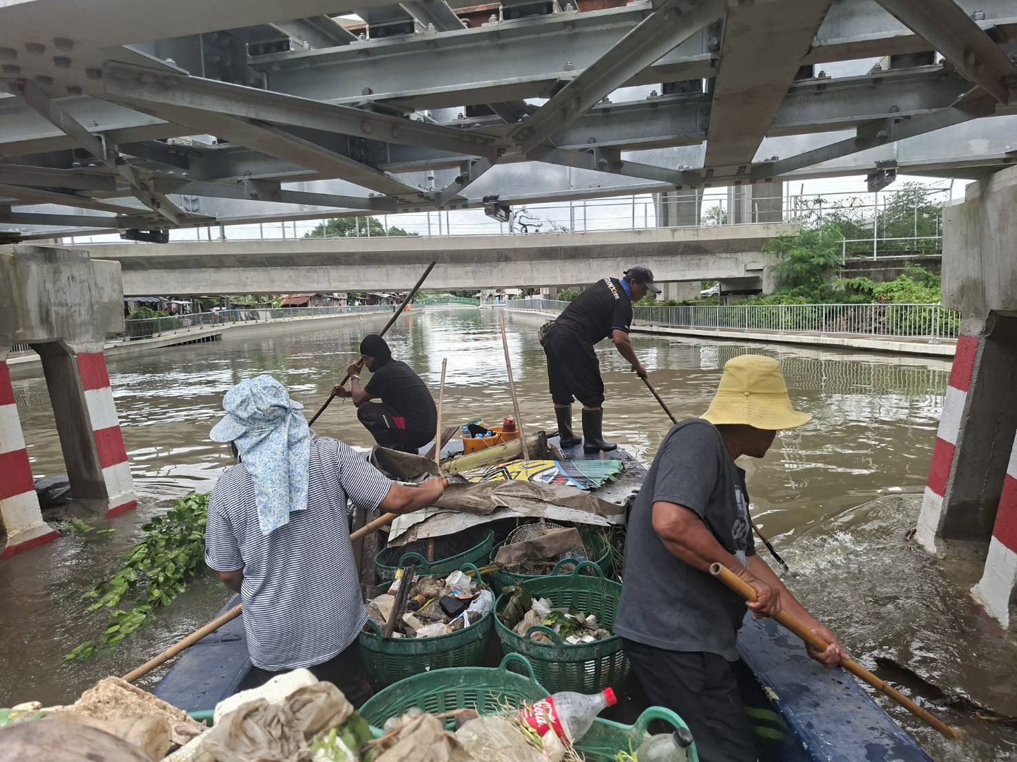 เจ้าหน้าที่ เก็บขยะและวัชพืชคลองเปรมประชากร ช่วงชุมชนตึกแดงบางซื่อเขตบางซื่อถึงสะพานงามวงศ์วานเขตจตุจักร