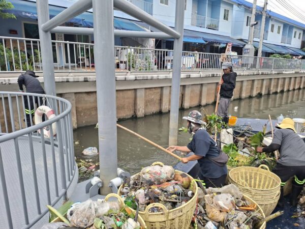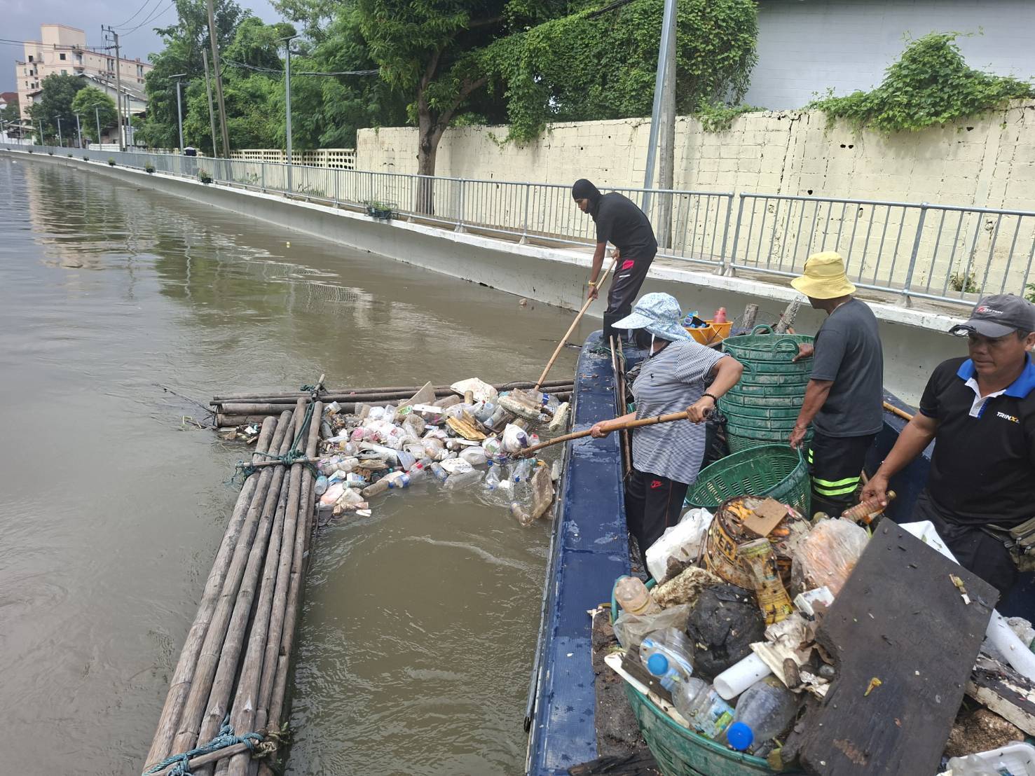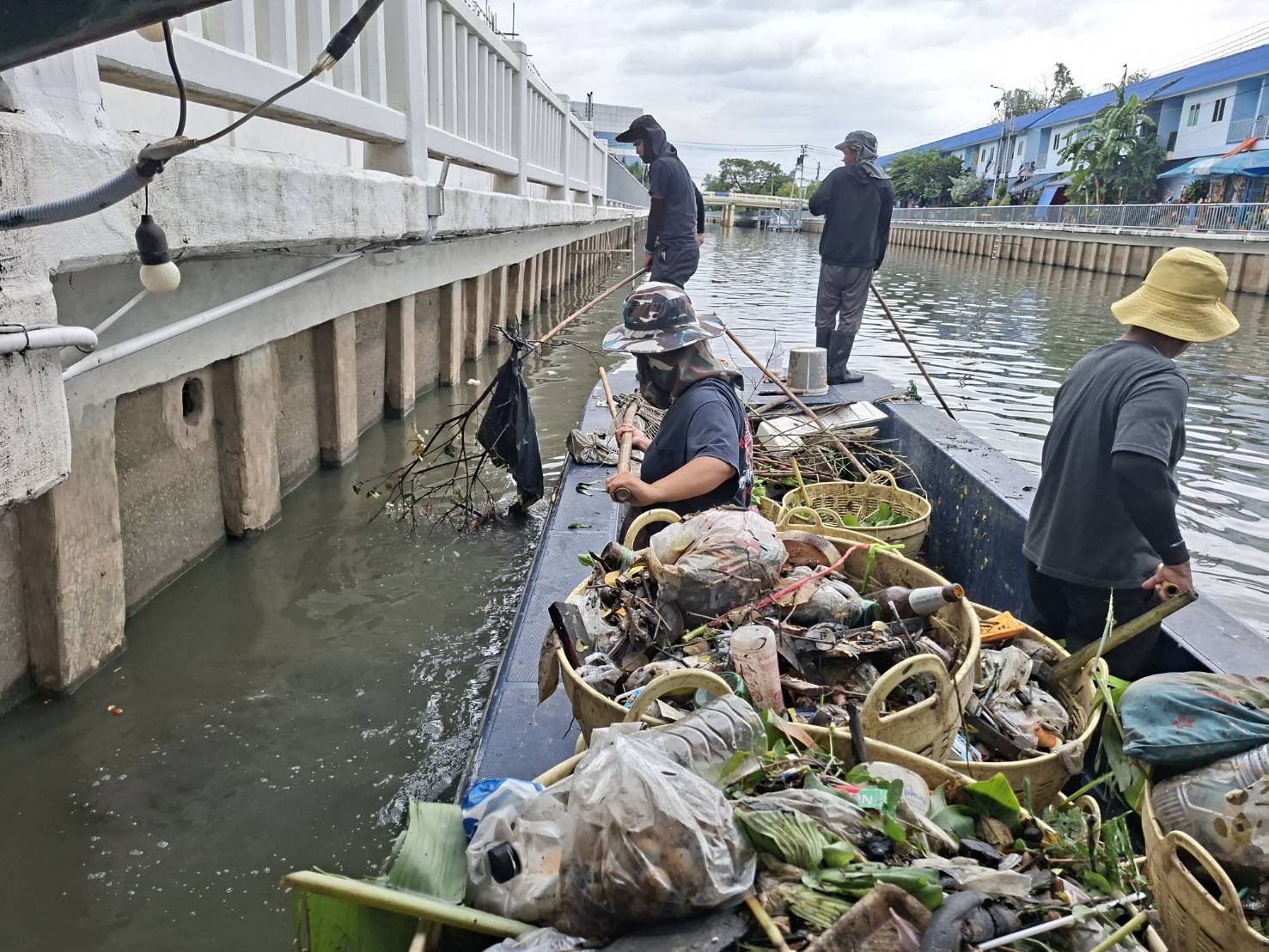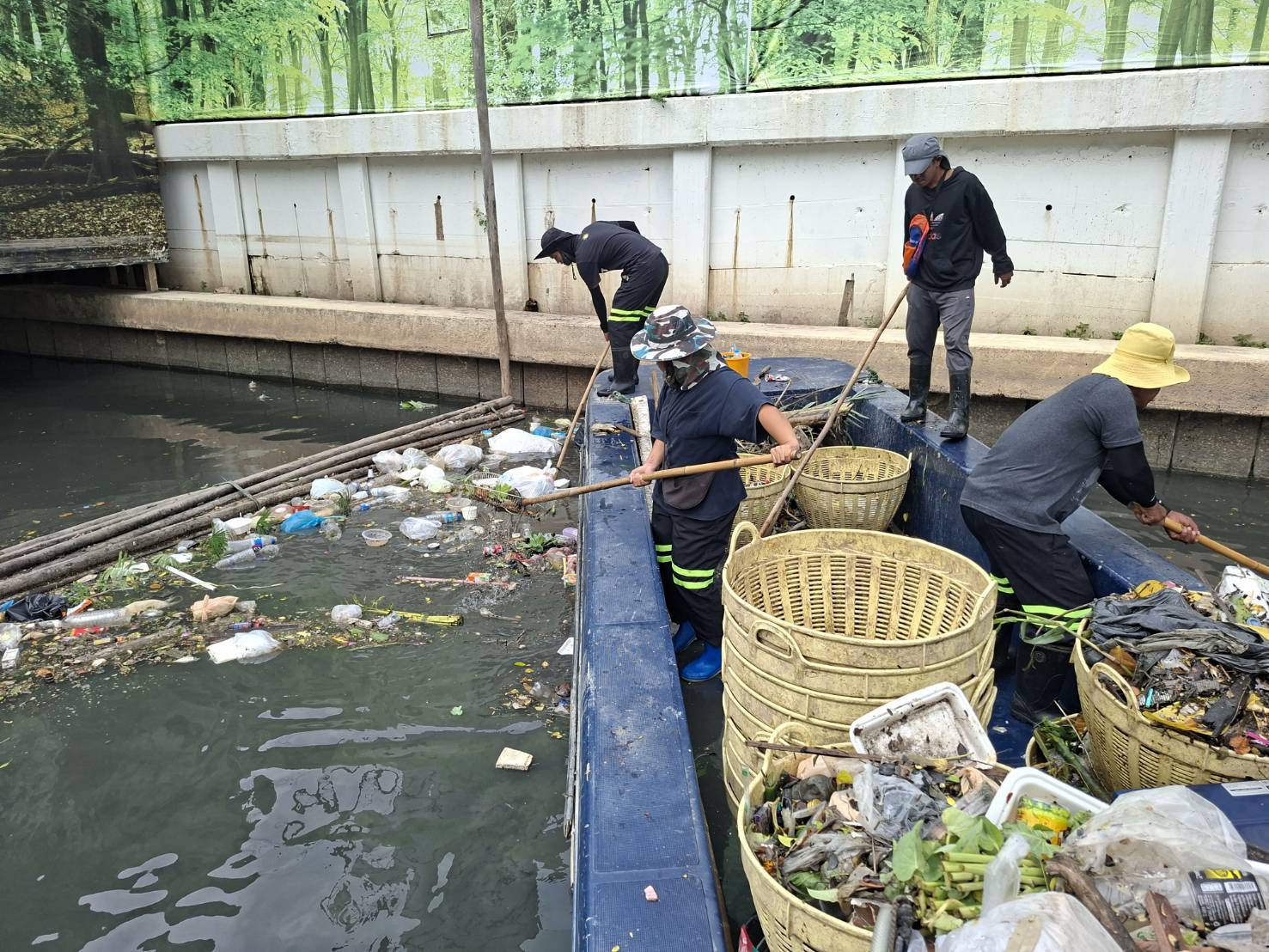เจ้าหน้าที่ เก็บขยะและวัชพืชคลองเปรมประชากร ช่วงชุมชนตึกแดงบางซื่อเขตบางซื่อถึงสะพานงามวงศ์วานเขตจตุจักร