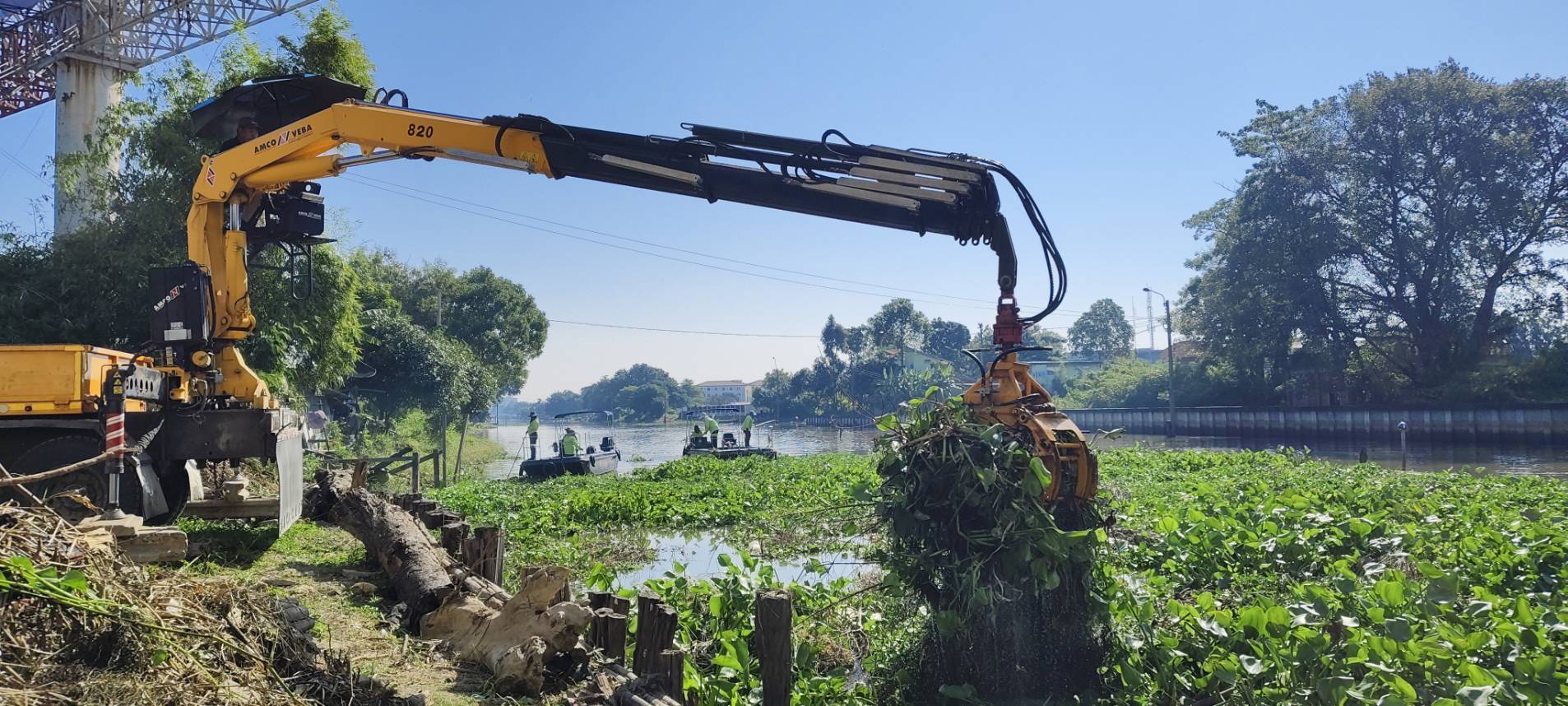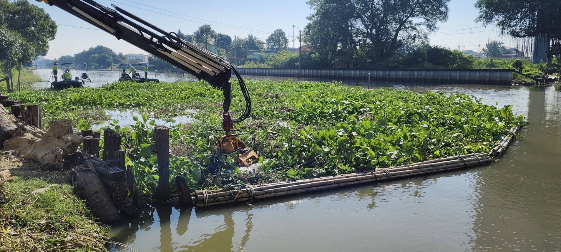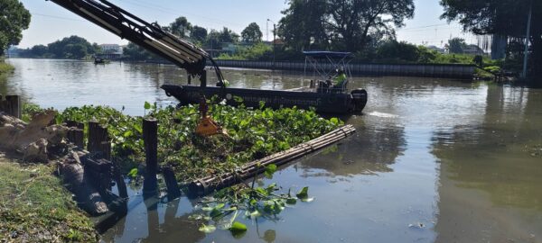 สำนัก​การระบายน้ำ จัดเก็บขยะวัชพืชคลองประเวศฯบริเวณ แพแอร์พอร์ตลิงก์  พื้นที่เขตลาดกระบัง
