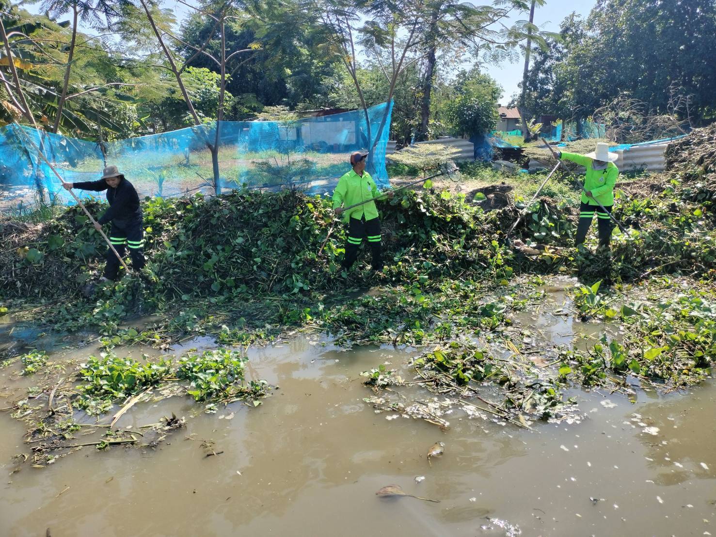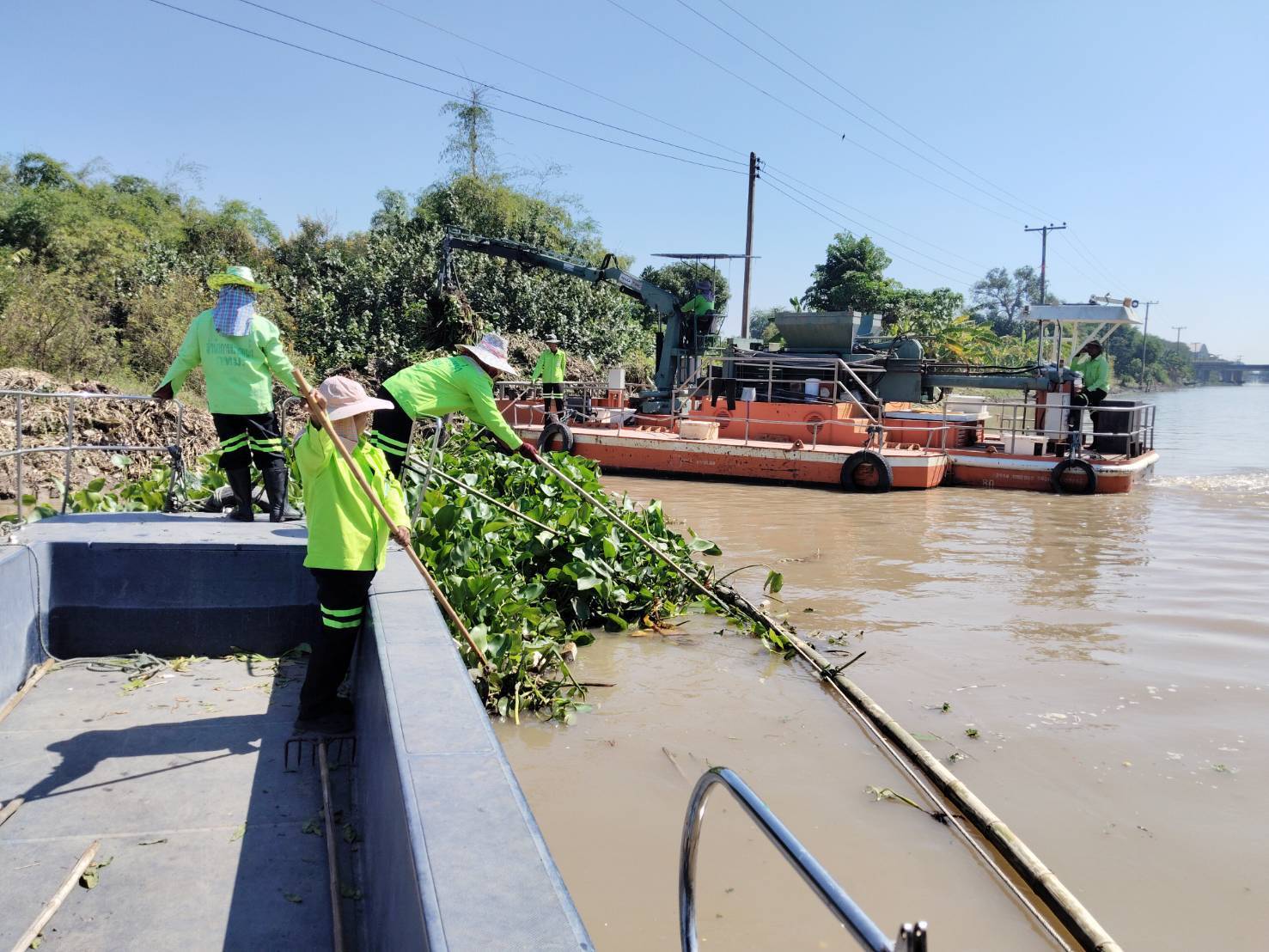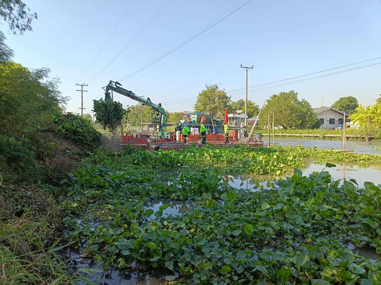 สำนักการระบายน้ำ จัดเก็บขยะและวัชพืช คลองหลวงแพ่ง-คลองนครเนื่อง พื้นที่เขตหนองจอก