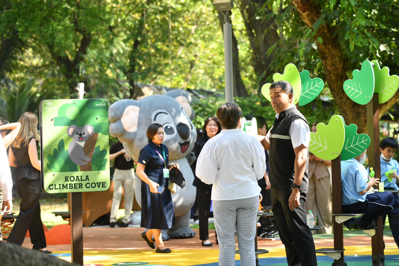 ผู้ว่าราชการกรุงเทพมหานคร กล่าวว่า เวลาใครมาสวนลุมพินีก็มักจะนึกถึงการออกกำลังกายของผู้ใหญ่ เช่น การเดิน วิ่ง รำไทเก็ก แต่วันนี้เรามีสนามเด็กเล่นที่ออกแบบเพื่อการเล่นและเสริมสร้างพัฒนาการของเด็กโดยเฉพาะ ต้องขอขอบคุณทางสถานเอกอัครราชทูตเครือรัฐออสเตรเลียประจำประเทศไทยที่เล็งเห็นถึงความสำคัญของเด็ก ๆ และช่วยทำให้ตรงนี้ได้เป็นสถานที่สำคัญ และได้เล่นสนุกของเด็ก ๆ