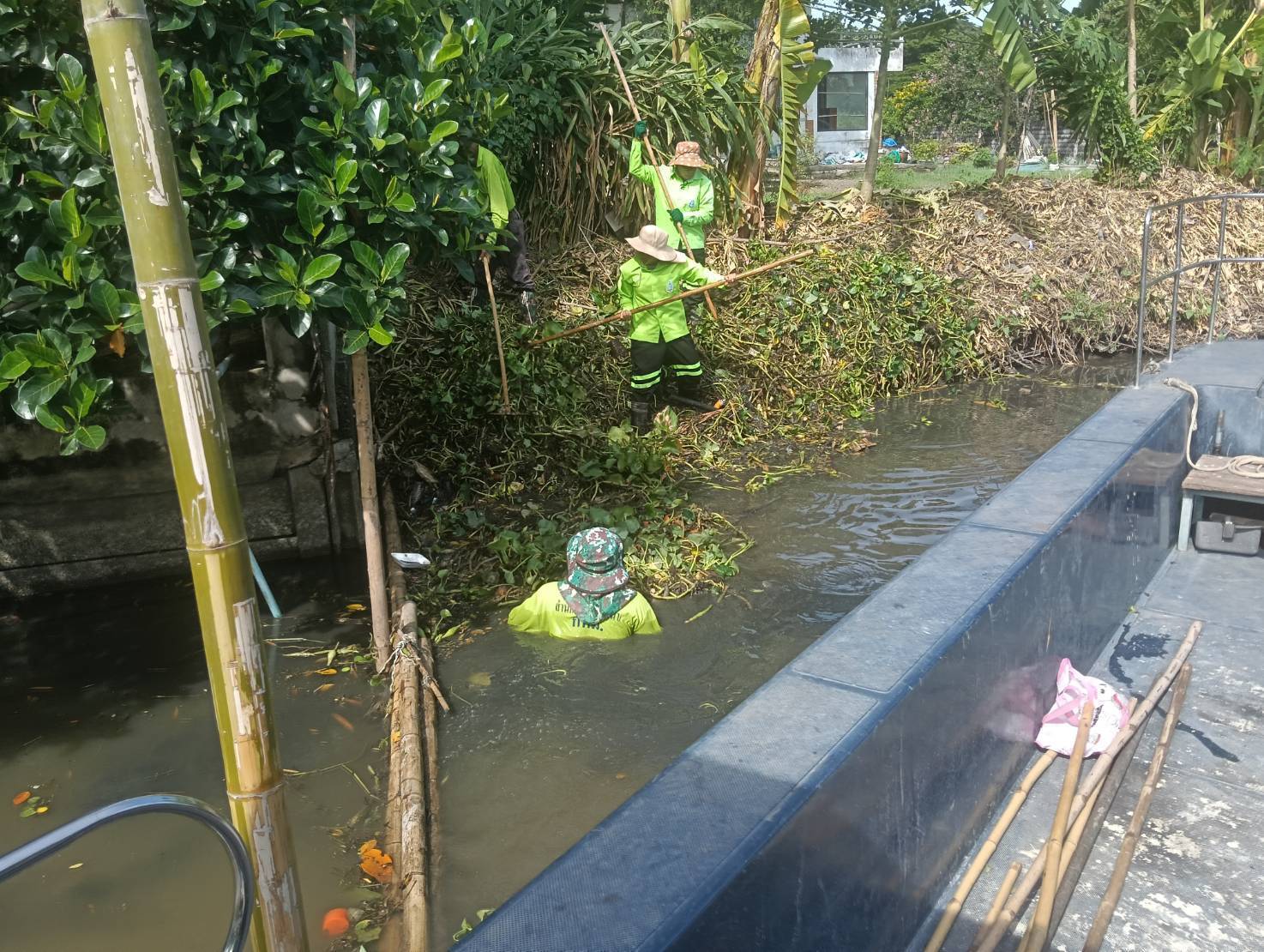 สำนักการระบายน้ำ จัดเก็บขยะและผักตบชวาคลองสามวาจากคลองแสนแสบถึงสุดเขตกทม.พื้นที่เขตคลองสามวา