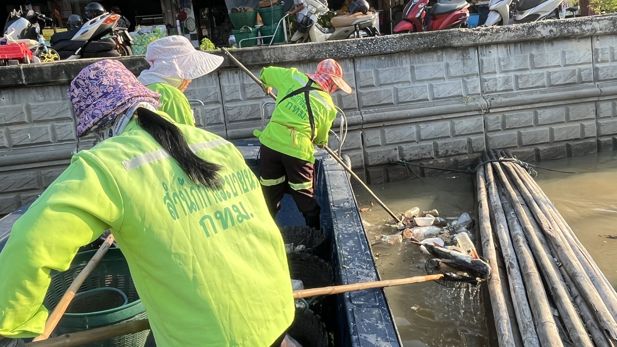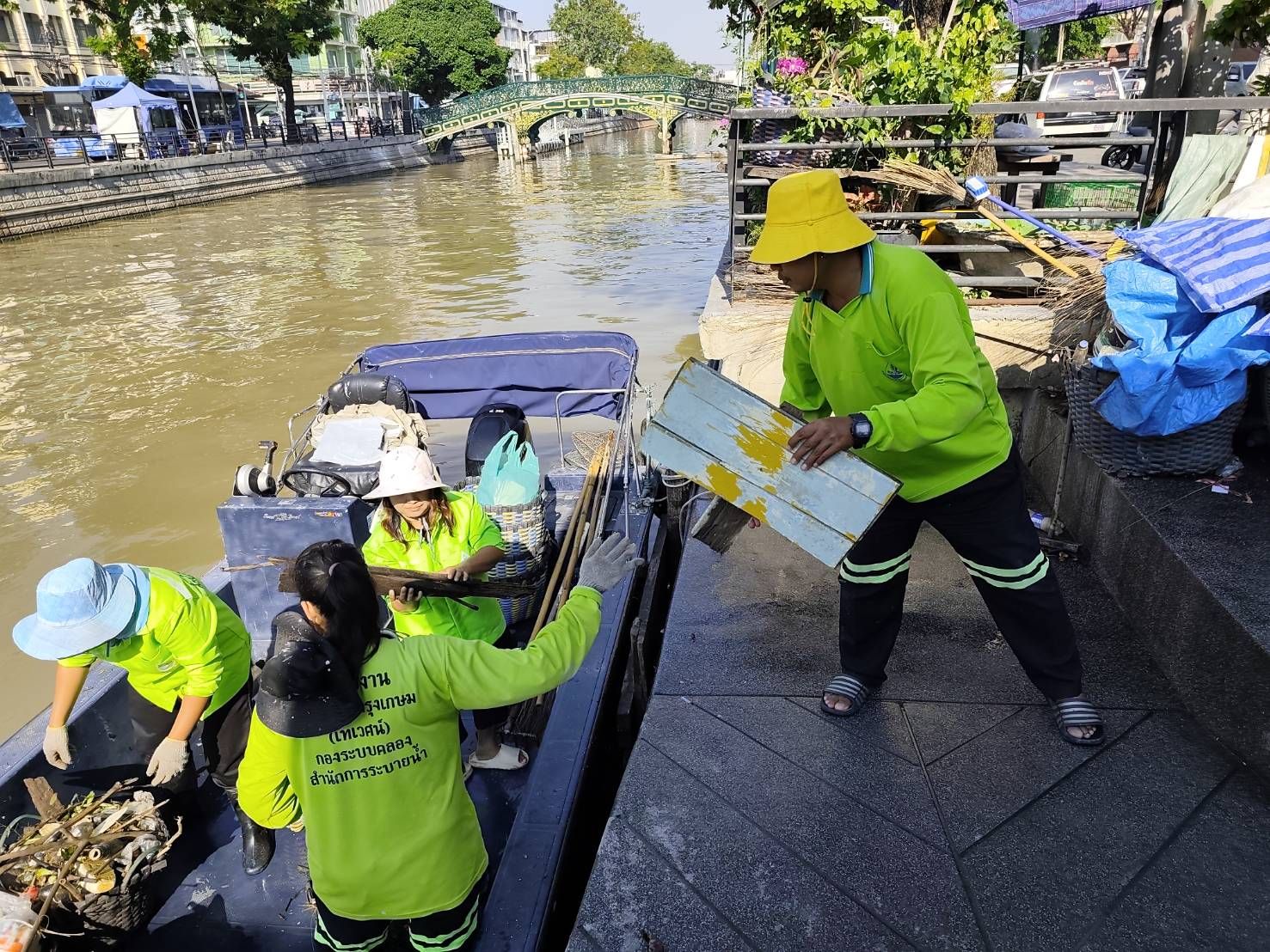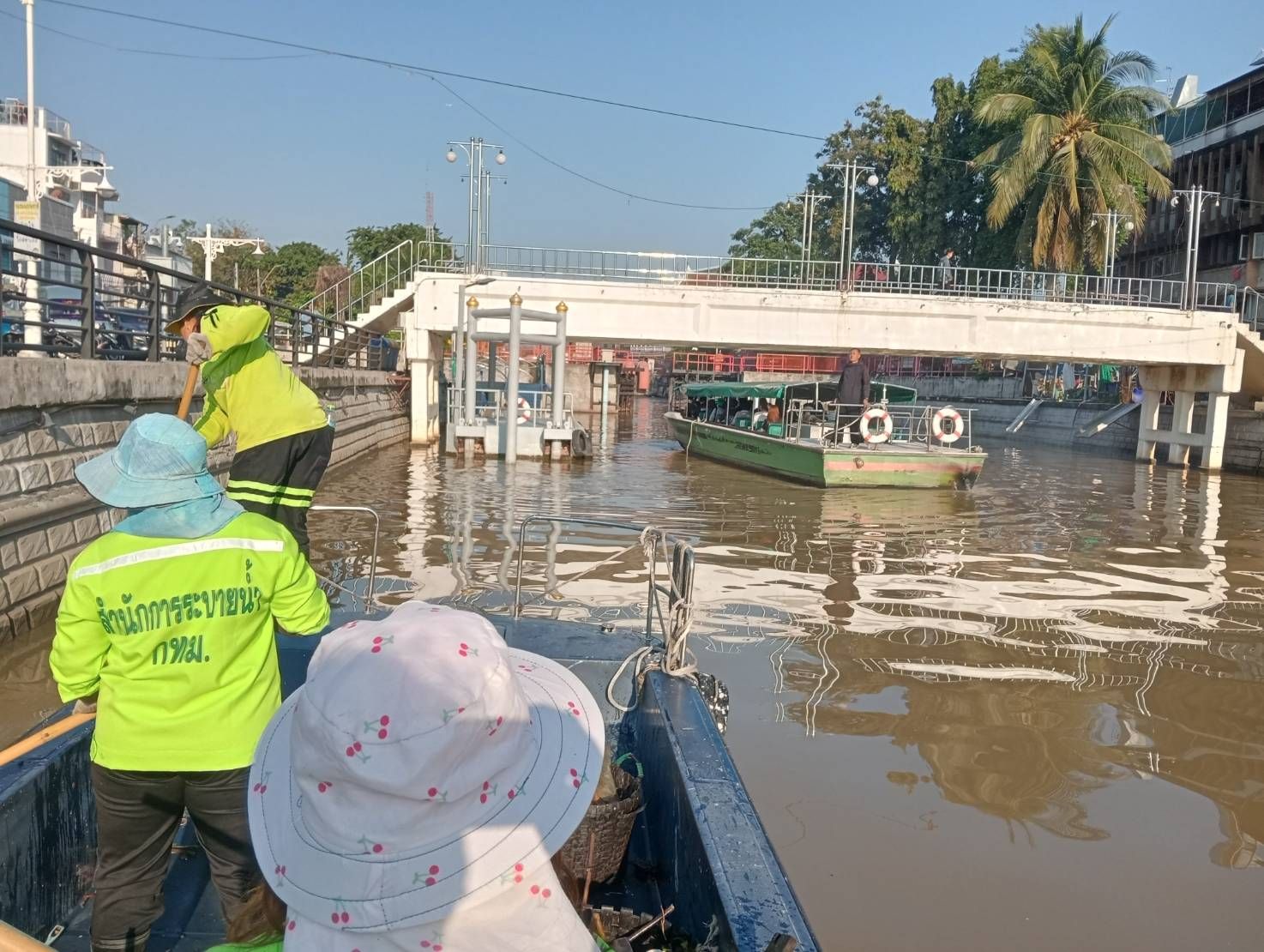 สำนักการระบายน้ำ ตักเก็บขยะและวัชพืช ปตร.เทเวศร์ตลอดช่วงสะพานมัฆวานถึงสี่แยกมหานาค พื้นที่เขตดุสิต เขตพระนคร เขตป้อมปราบศัตรูพ่าย