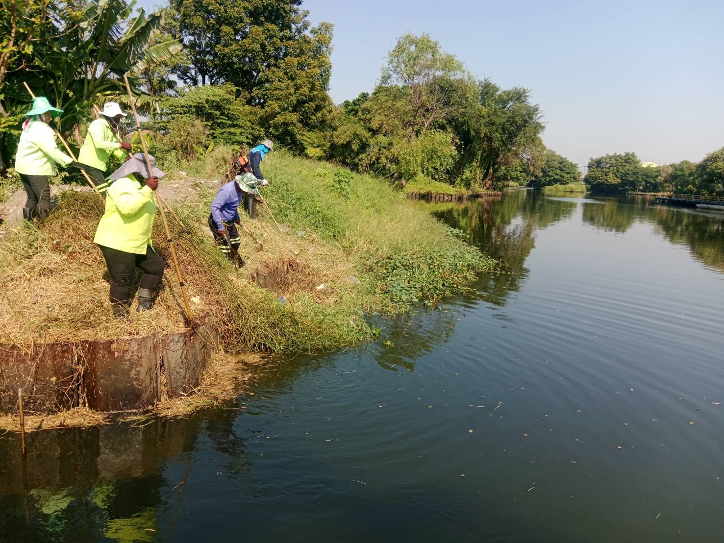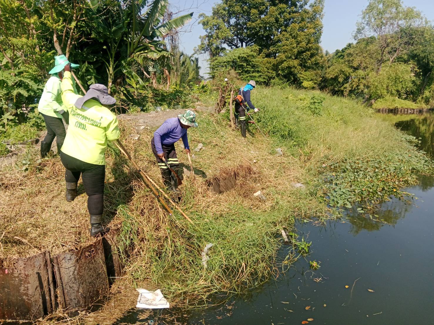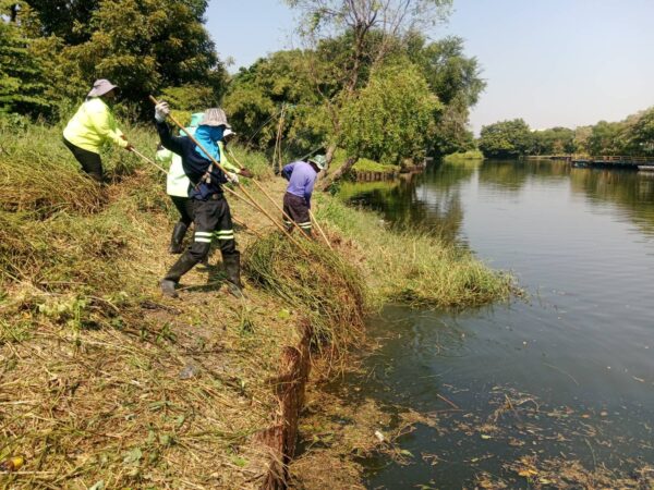 เจ้าหน้าที่ ตัดหญ้าเก็บขยะและวัชพืชคลองเฉลิมชัยพัฒนา ช่วงสวนบวรประชานันท์ พื้นที่เขตบางขุนเทียน