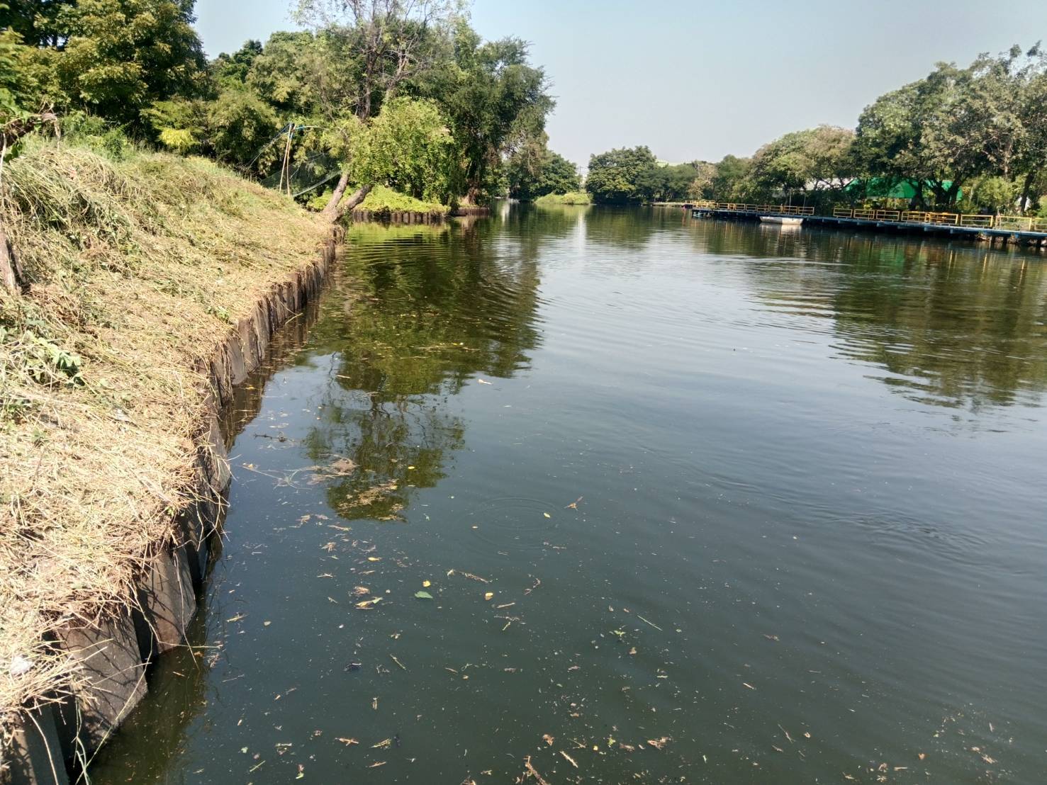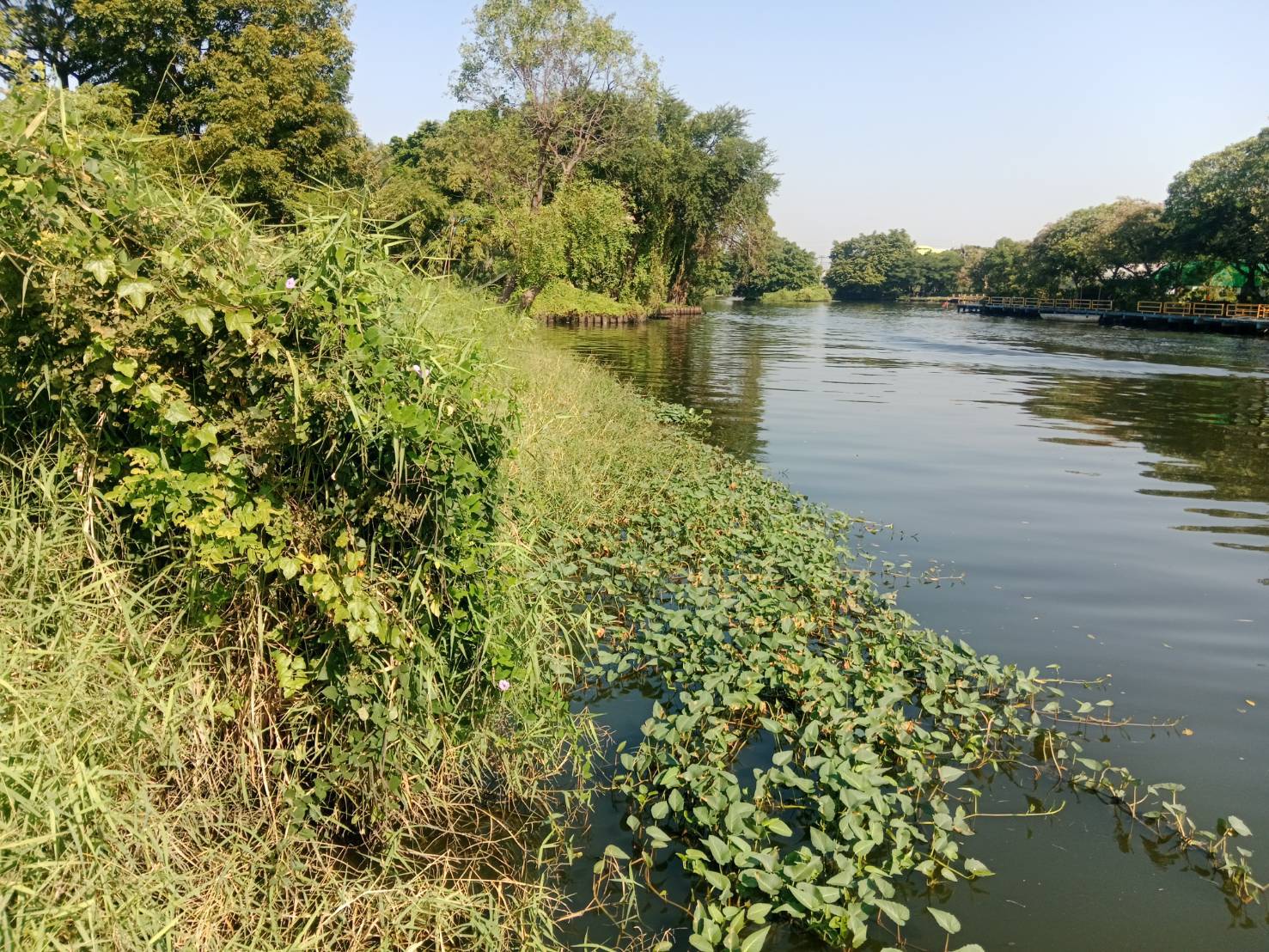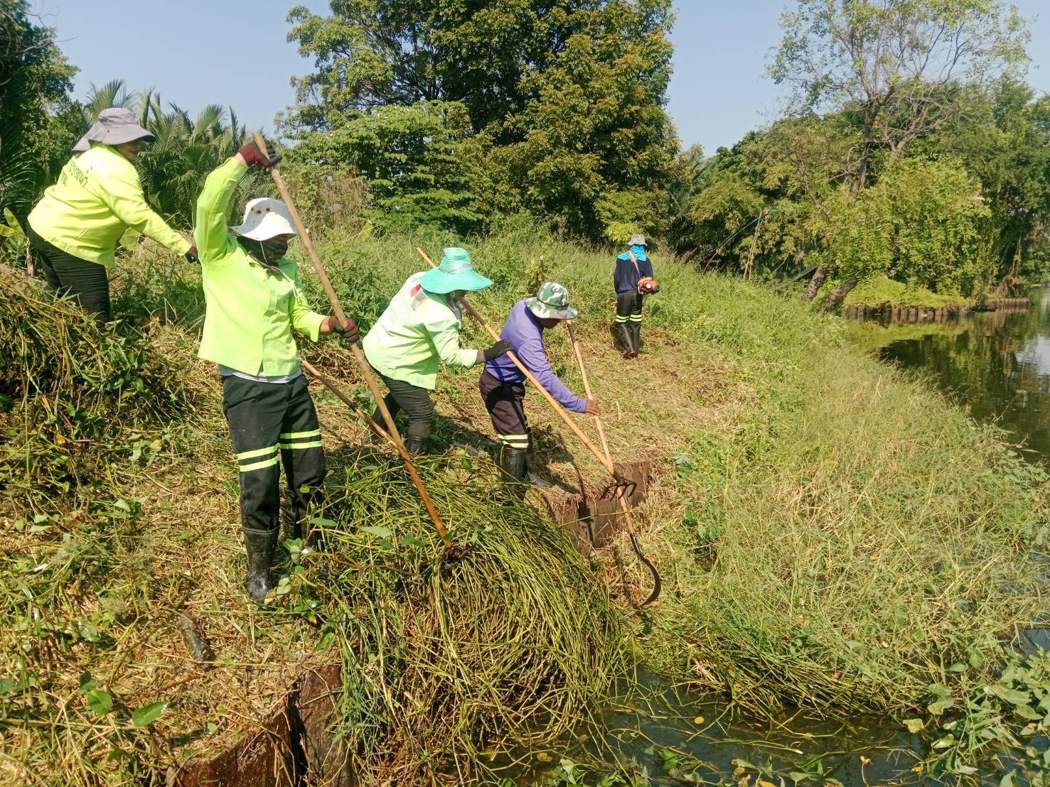 เจ้าหน้าที่ ตัดหญ้าเก็บขยะและวัชพืชคลองเฉลิมชัยพัฒนา ช่วงสวนบวรประชานันท์ พื้นที่เขตบางขุนเทียน