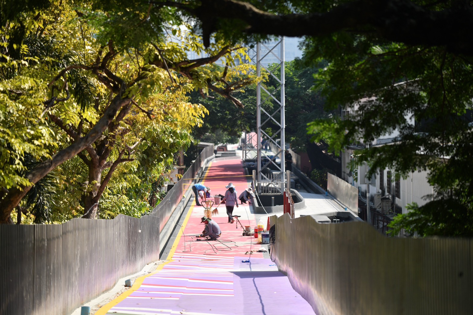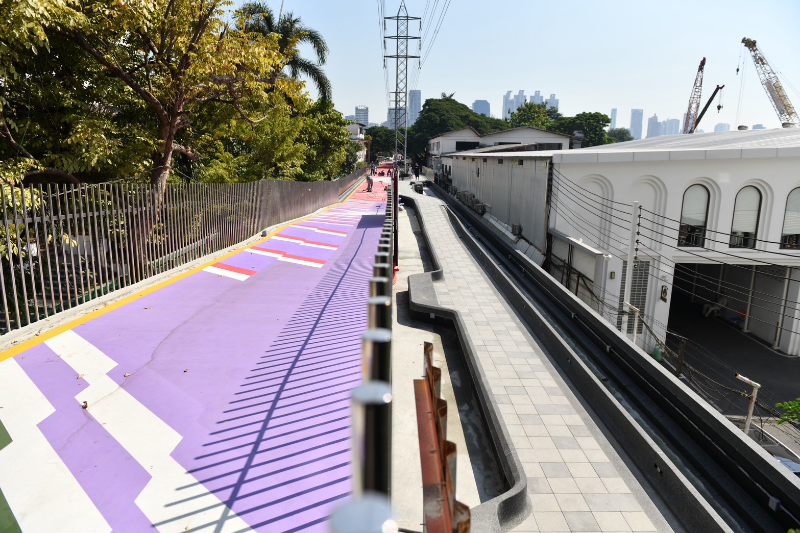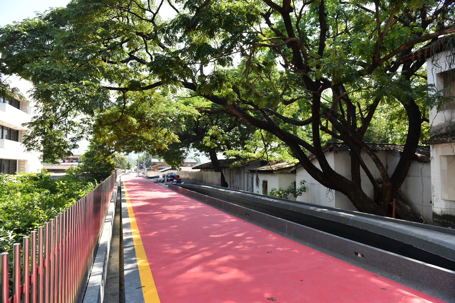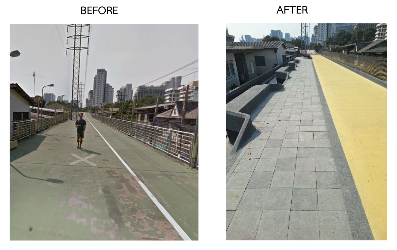 พื้นทางเดินถูกปรับด้วยหินแกรนิตให้เดินสบาย ส่วนเส้นทางจักรยานใช้วัสดุ Sport Surface ที่มีลวดลายและสีสันสดใส ทั้งแดง เหลือง ม่วง ฟ้า และยังคงสีเขียวอันเป็นเอกลักษณ์ของ “สะพานเขียว” ไว้เหมือนเดิม เพื่อให้เส้นทางนี้ทั้งสวยและใช้งานได้ดีขึ้น