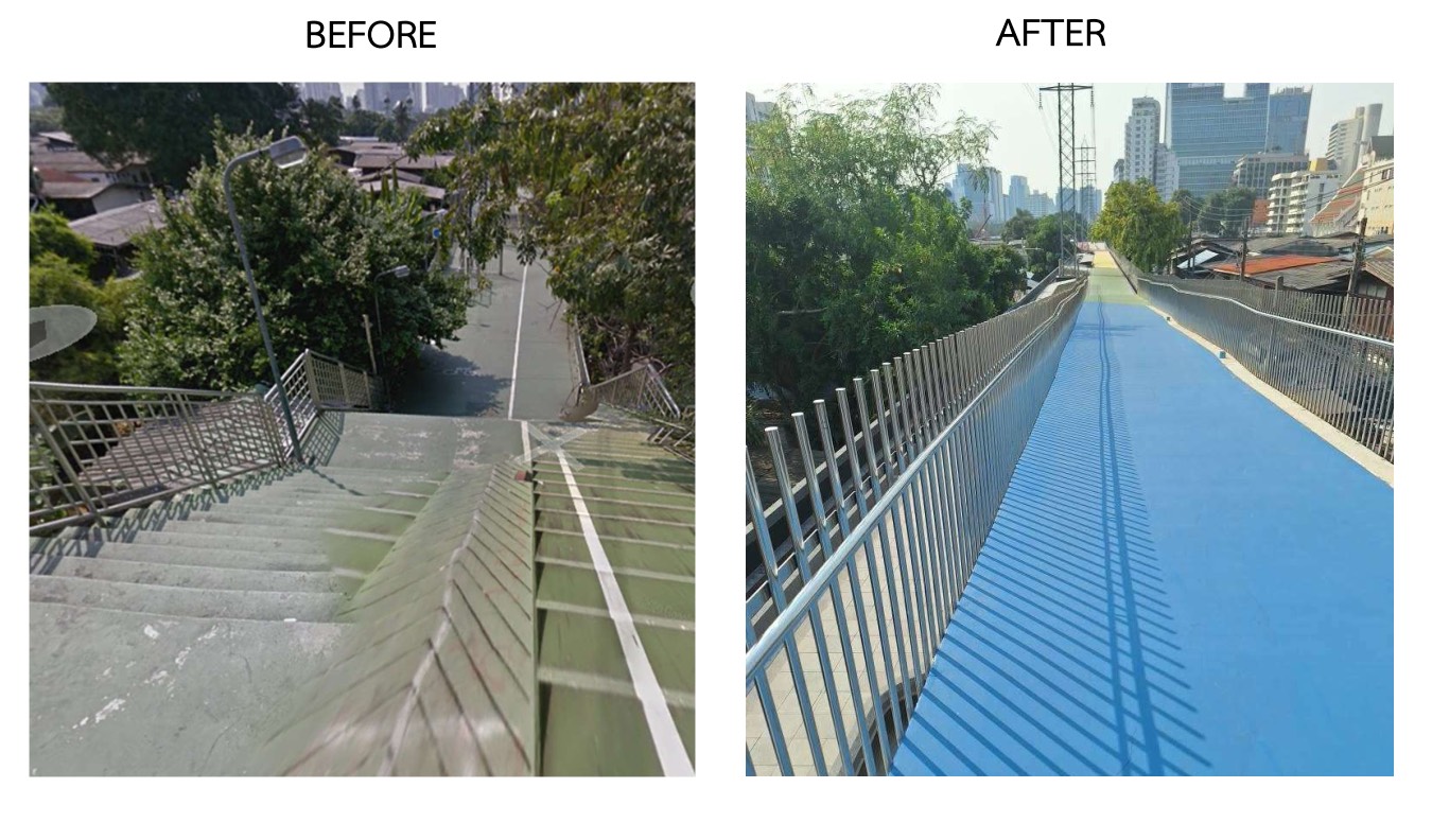 ขณะนี้สะพานเขียวเปิดให้ประชาชนทดลองใช้บางส่วนแล้วตั้งแต่ 30 พ.ย. 68 โดยมีการปรับโฉมหลายด้าน ไม่ว่าจะเป็นการทำทางลาดยกระดับให้วีลแชร์ รถเข็นเด็ก และจักรยานใช้งานได้คล่องตัวขึ้น แก้ปัญหาบันไดสูงของสะพานเดิม เพื่อให้ทุกคนเข้าถึงได้จริงตามแนวคิด Universal Design
