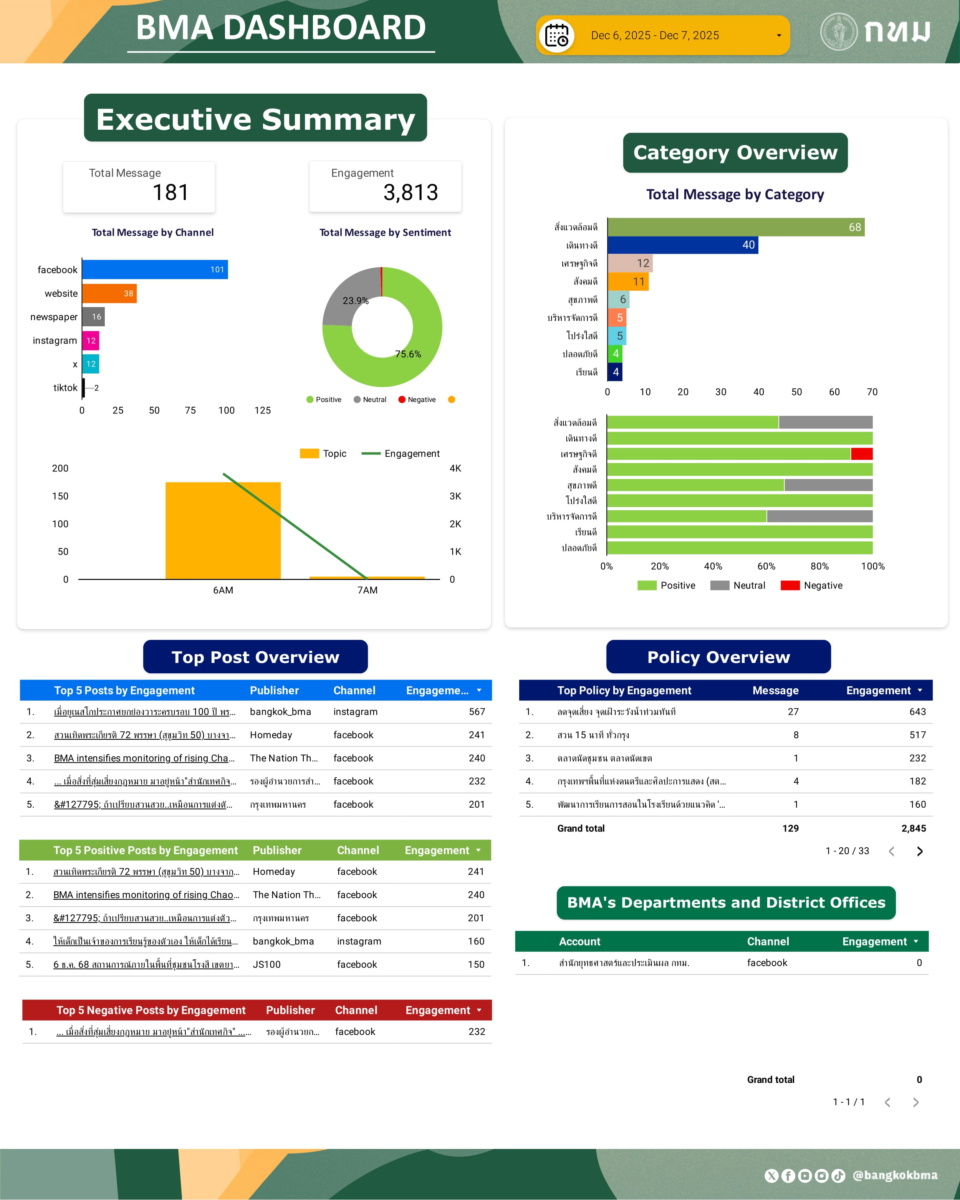 ภาพรวมการกล่าวถึงกรุงเทพมหานครในสื่อออนไลน์ วันที่ 7 ธ.ค. 68