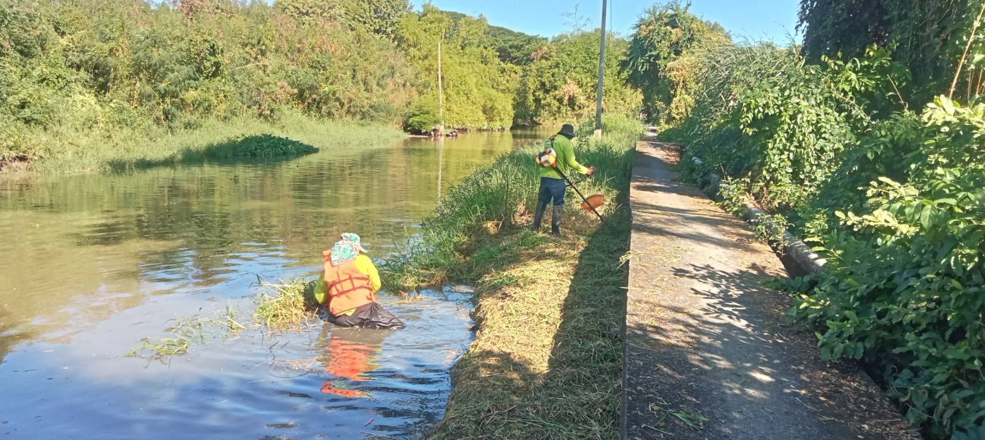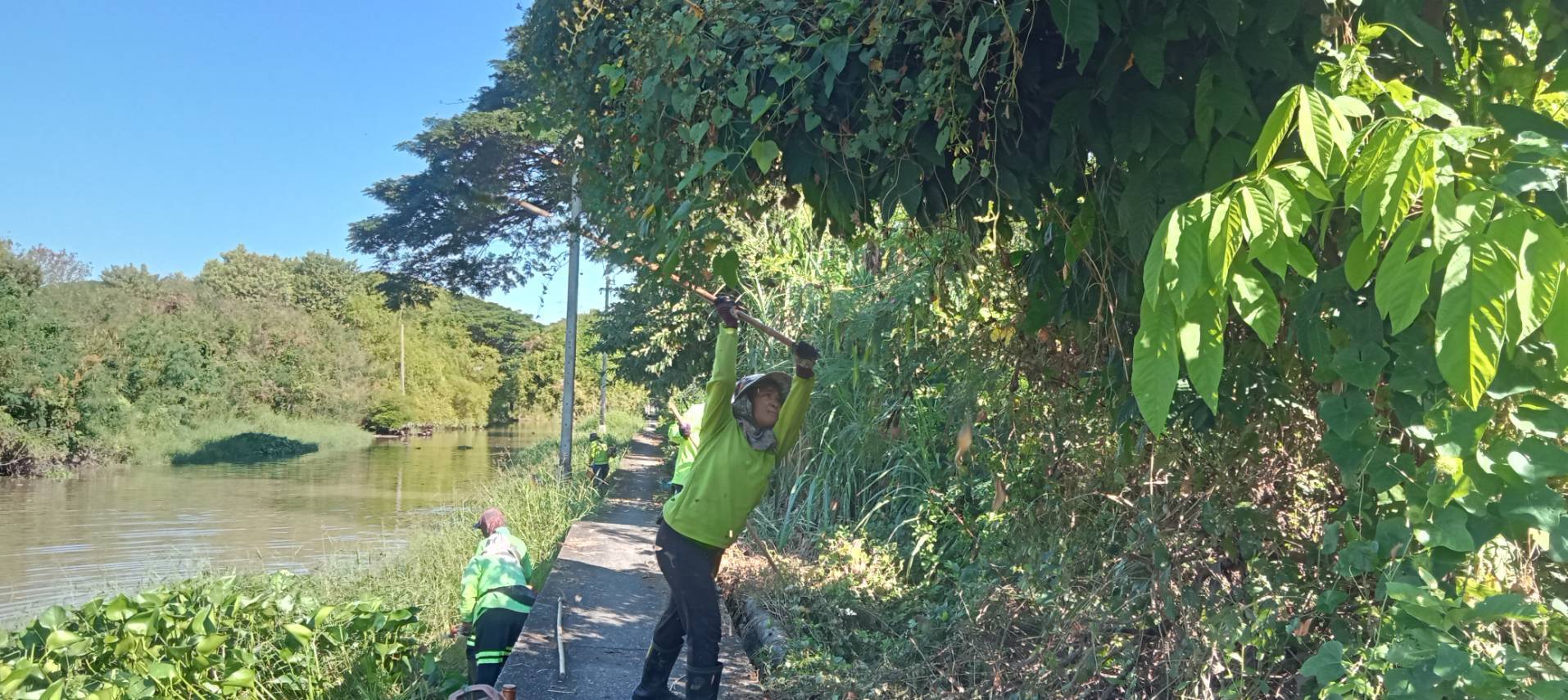 เจ้าหน้าที่ จัดเก็บขยะวัชพืชคลองสามประเวศ พื้นที่เขตลาดกระบัง