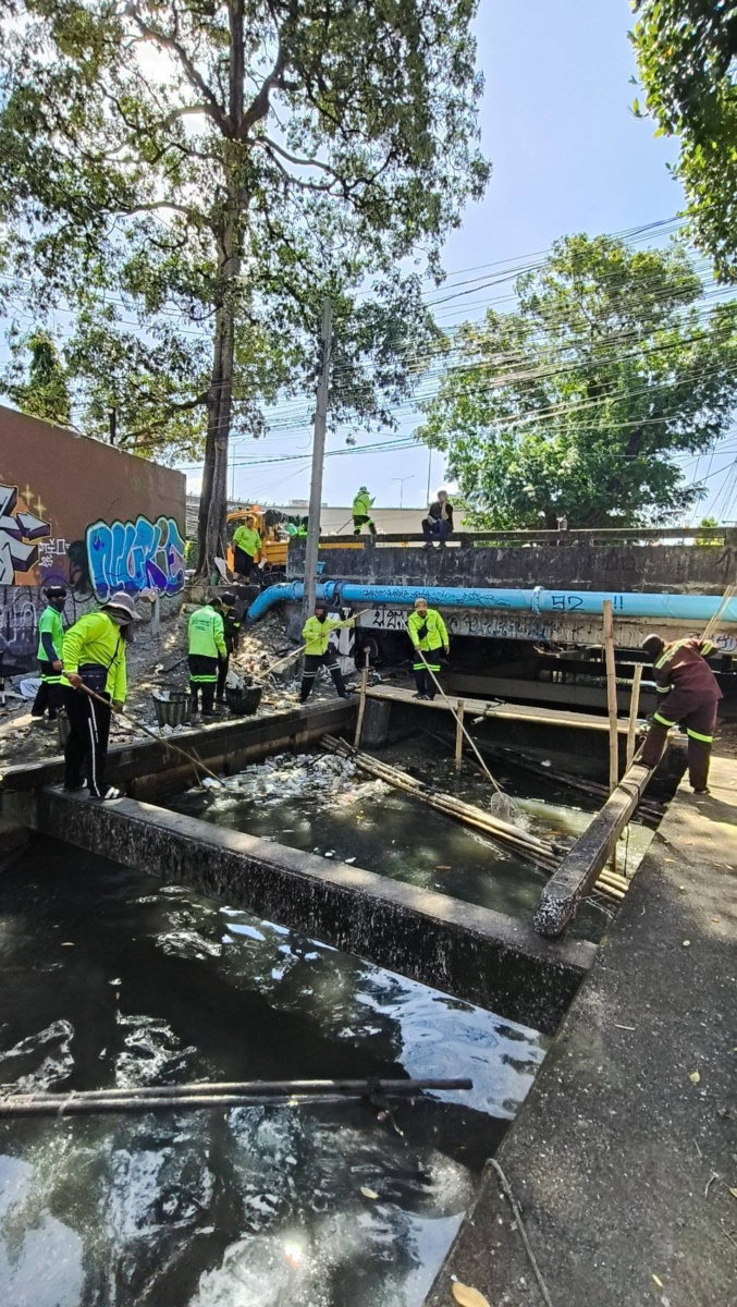 เจ้าหน้าที่ จัดเก็บขยะกำจัดวัชพืชคลองบางมะเขือช่วงสถานีสูบน้ำบางมะเขือ พื้นที่เขตวัฒนา