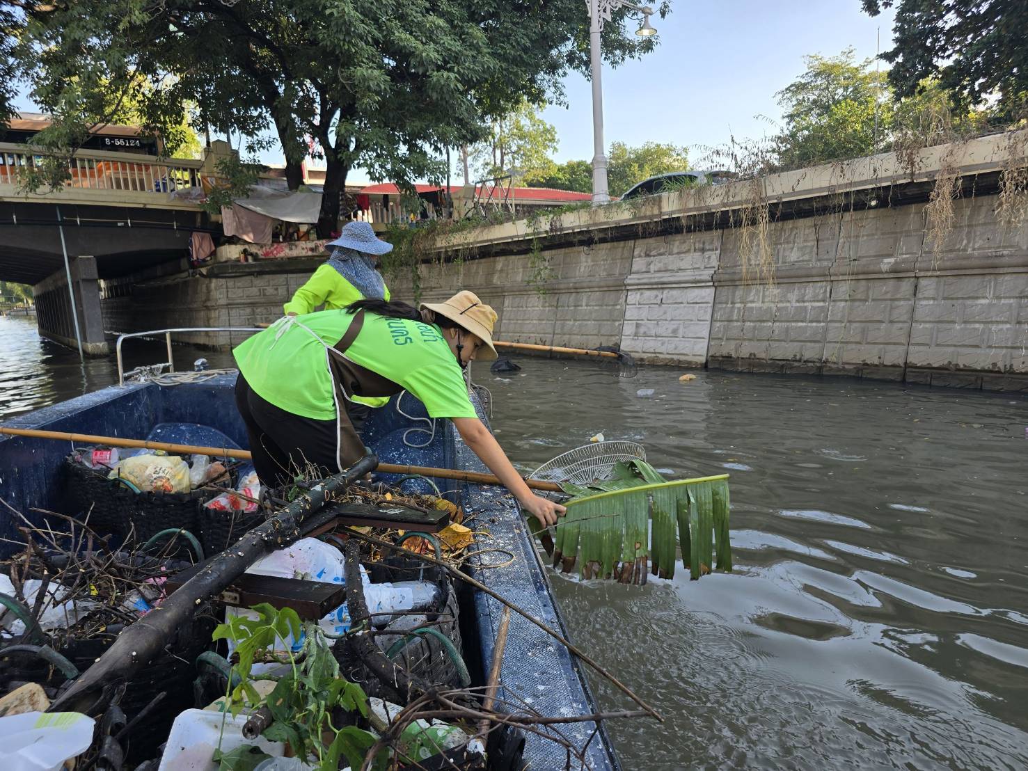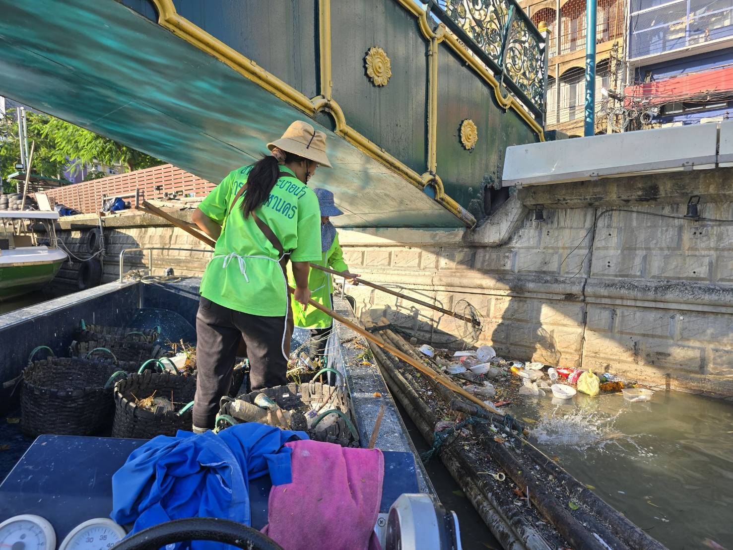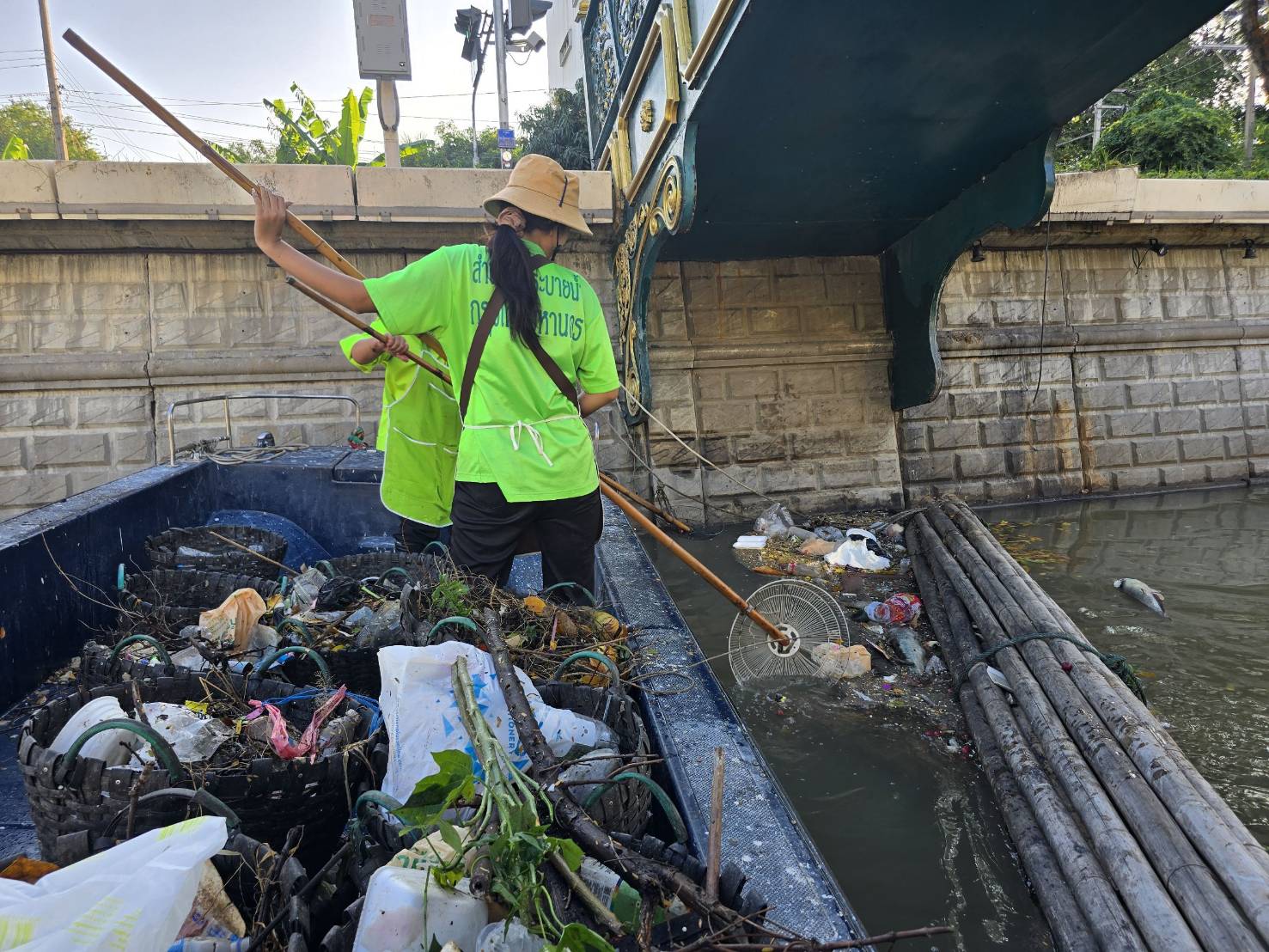 เจ้าหน้าที่ เก็บขยะช่วงสถานีสูบน้ำกรุงเกษมสะพานเจริญสวัสดิ์-สะพานนพวงศ์-สะพานกษัตริย์ศึกถึงสี่แยกมหานาค พื้นที่เขตปทุมวัน เขตป้อมปราบศัตรูพ่าย