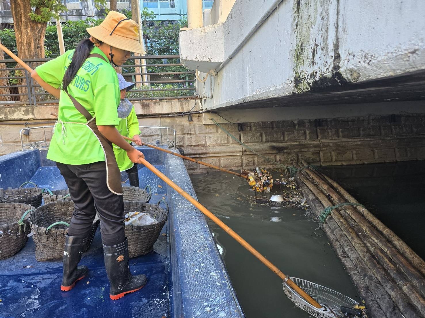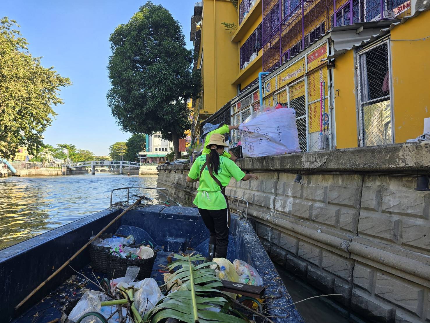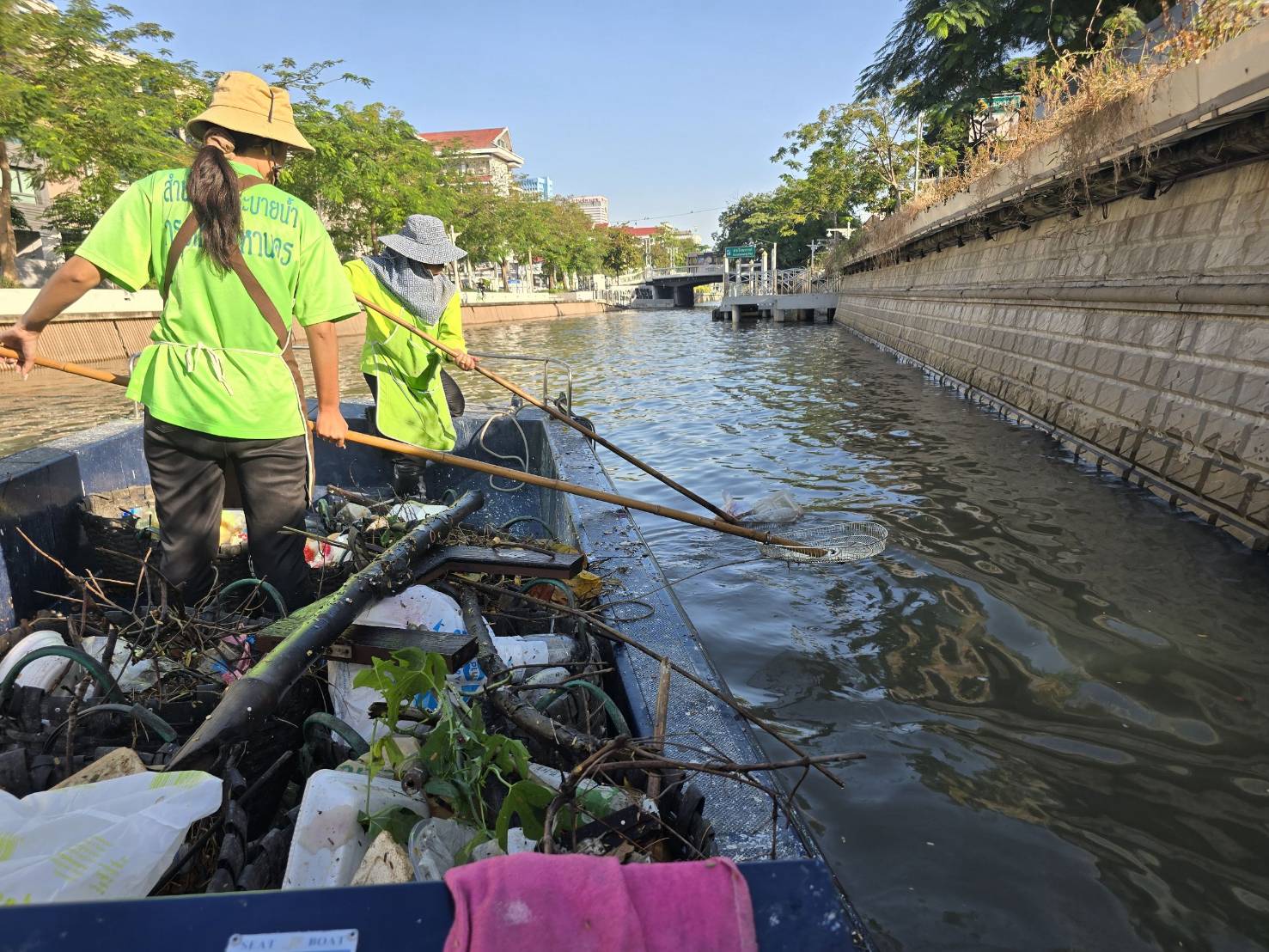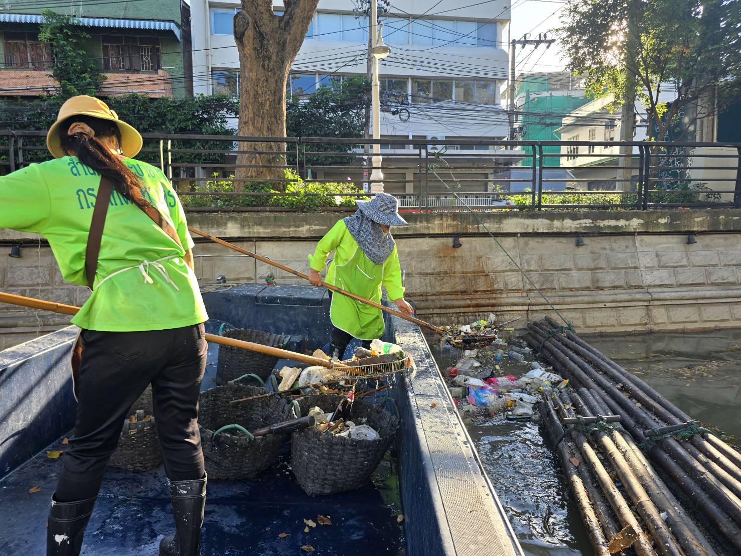 เจ้าหน้าที่ เก็บขยะช่วงสถานีสูบน้ำกรุงเกษมสะพานเจริญสวัสดิ์-สะพานนพวงศ์-สะพานกษัตริย์ศึกถึงสี่แยกมหานาค พื้นที่เขตปทุมวัน เขตป้อมปราบศัตรูพ่าย