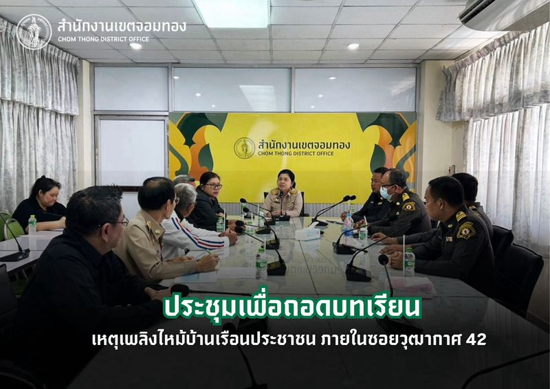 วันที่ 8 ธันวาคม 2568 เวลา 11.00 น. นายชาติชาย กุละนำพล ผู้อำนวยการเขตจอมทอง มอบหมาย นางสาวศิริกุล อารยะพงศ์ไชย ผู้ช่วยผู้อำนวยการเขต เป็นประธานการประชุม เพื่อถอดบทเรียน จากเหตุเพลิงไหม้บ้านเรือนประชาชน จำนวน 5 หลังคาเรือน ภายในชุมชนศาลาครืนรวมใจ ซอยวุฒากาศ 42 แยก 13-14 แขวงบางค้อ เขตจอมทอง เมื่อคืนวันที่ 30 พฤศจิกายนที่ผ่านมา 🚨