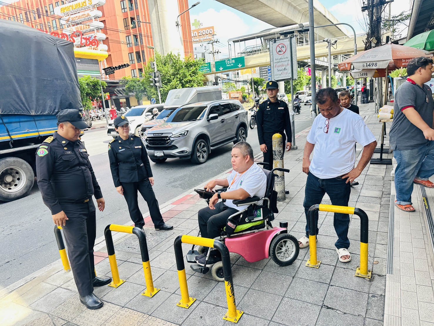 นายศักดิ์เทพ เกียรติพิชญา ผู้อำนวยการเขตบางเขน กทม. กล่าวกรณีมีข้อวิจารณ์การติดตั้งเอสการ์ด บนทางเท้าซอยพหลโยธิน 48 ว่า สำนักงานเขตฯ ได้ติดตั้งเสาเอสการ์ดโดยคำนึงถึงผลกระทบต่อผู้ใช้งานทุกกลุ่มโดยเฉพาะคนพิการที่ใช้รถเข็นวีลแชร์ ซึ่งได้ประสานสมาคมศักดิ์ศรีคนพิการไทและอาจารย์จากมหาวิทยาลัยศรีปทุมร่วมลงพื้นที่ทดสอบการใช้งานจริง โดยมีการนำรถเข็นชนิดต่าง ๆ ทั้งรถเข็นวีลแชร์ไฟฟ้าขนาดใหญ่ รถเข็นวีลแชร์แบบทั่วไป ตลอดจนรถจักรยานและรถจักรยานยนต์มาทดสอบสัญจรผ่านเสาเอสการ์ด เพื่อประเมินความสะดวกและปัญหาที่อาจเกิดขึ้น