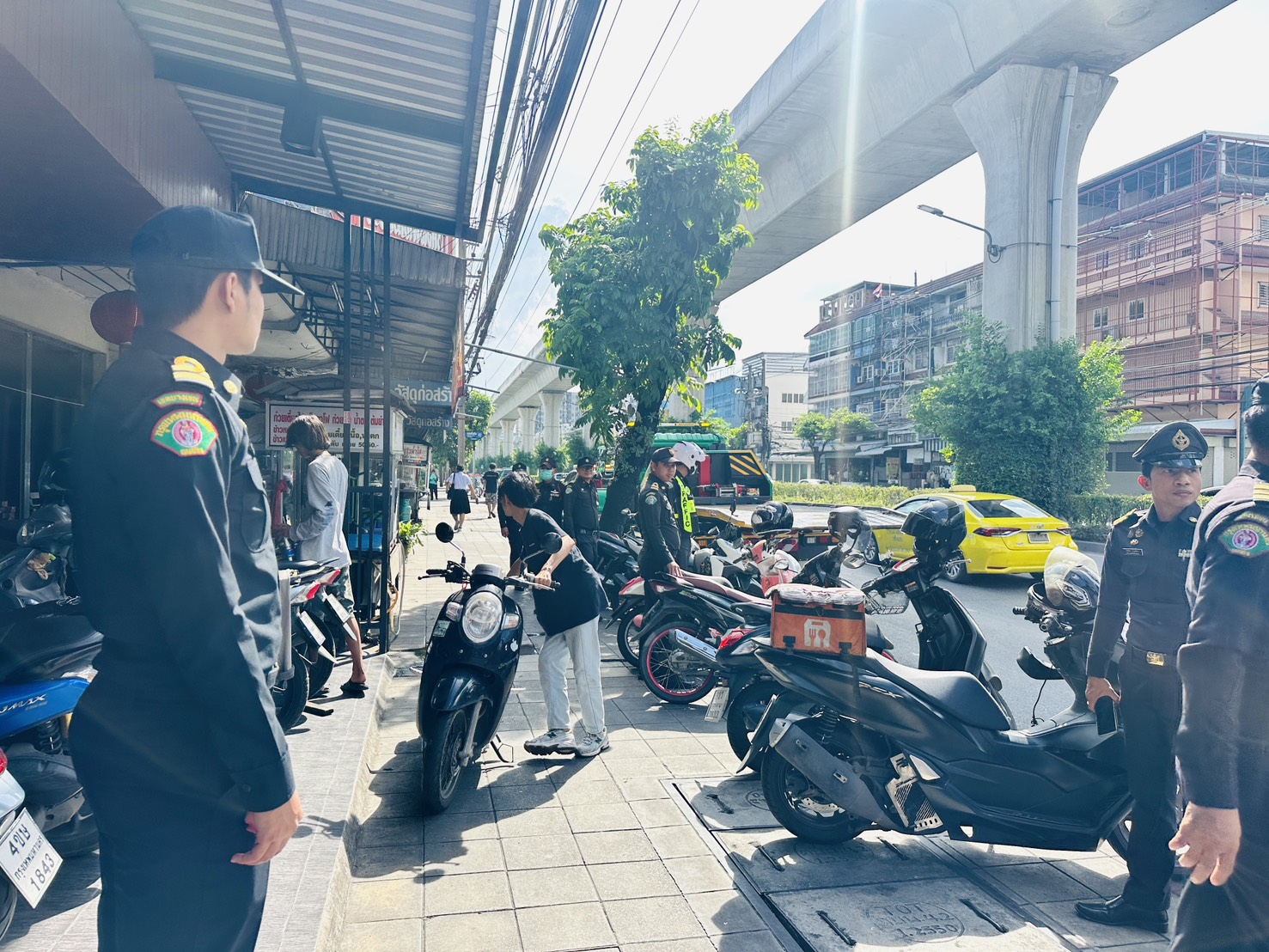 นอกจากนี้ ยังได้กำชับเจ้าหน้าที่เทศกิจกวดขันจับกุมผู้กระทำความผิดตามนโยบายแก้ไขปัญหาการจอด หรือขับขี่บนทางเท้าอย่างต่อเนื่อง โดยตั้งจุดจับปรับและยึดอายัดรถจักรยานยนต์ที่กระทำความผิด รวมถึงจัดเจ้าหน้าที่ผลัดเปลี่ยนประจำพื้นที่เพื่อเฝ้าระวัง อย่างไรก็ตาม เนื่องจากพื้นที่เขตบางเขนมีขนาดกว่า 42 ตารางกิโลเมตร มีภารกิจด้านการดูแลความเป็นระเบียบเรียบร้อยจำนวนมาก จึงไม่สามารถจัดเจ้าหน้าที่เฝ้าระวังได้ตลอด 24 ชั่วโมง การติดตั้งเสาเอสการ์ดจึงเป็นมาตรการสนับสนุนที่มีประสิทธิภาพ โดยหลังจากติดตั้งเสาเอสการ์ดแล้ว พบว่าไม่มีผู้ฝ่าฝืน ซึ่งแสดงให้เห็นว่า เป็นการแก้ปัญหาที่ตรงจุดและเกิดผลอย่างชัดเจน ทั้งนี้ ในปีงบประมาณ 2568 สำนักงานเขตฯ ได้ดำเนินคดีกับผู้กระทำความผิดฐานจอด หรือขับขี่บนทางเท้าจำนวนมาก รวมยอดค่าปรับทั้งสิ้นกว่า 477,650 บาท ซึ่งเป็นอันดับสูงสุดของ กทม.