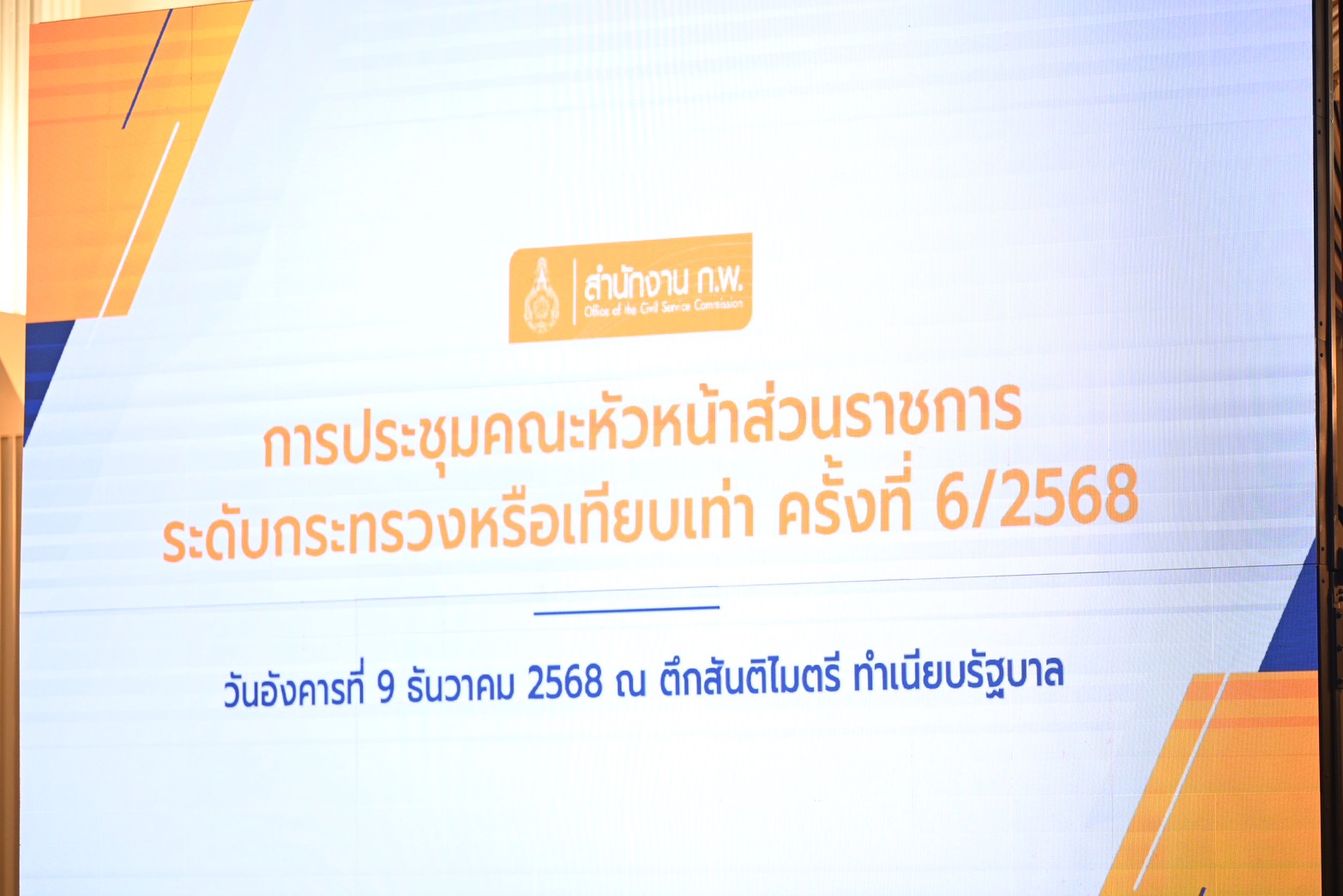 (9 ธ.ค.68) นายณรงค์ เรืองศรี ปลัดกรุงเทพมหานคร ร่วมการประชุมคณะหัวหน้าส่วนราชการระดับกระทรวงหรือเทียบเท่า ครั้งที่ 6/2568 โดยมี นายอนุทิน ชาญวีรกูล นายกรัฐมนตรีและรัฐมนตรีว่าการกระทรวงมหาดไทย เป็นประธานการประชุม พร้อมด้วย หัวหน้าส่วนราชการระดับกระทรวงหรือเทียบเท่า และหน่วยงานที่เกี่ยวข้อง ร่วมประชุม ณ ตึกสันติไมตรี ทำเนียบรัฐบาล