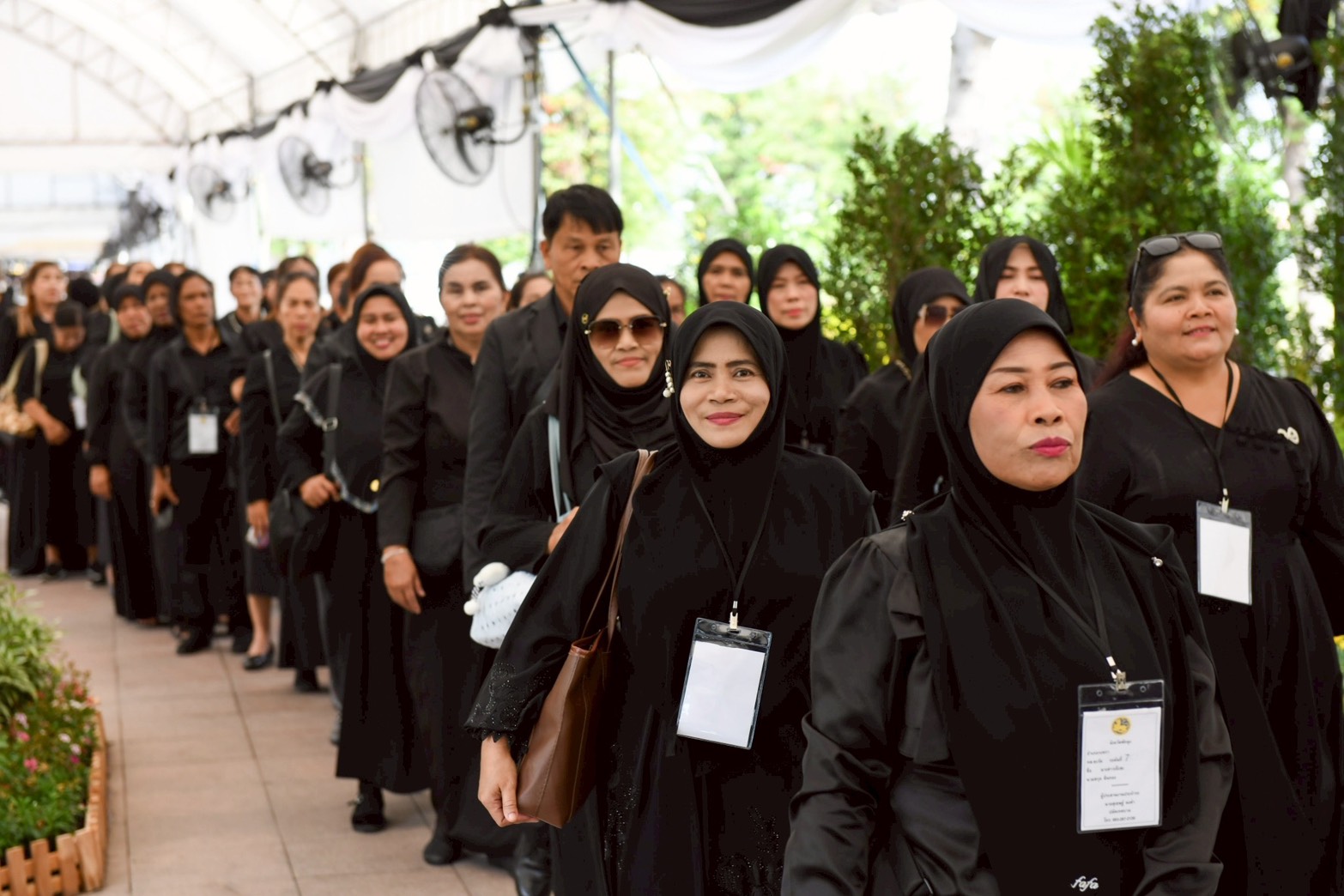 ทั้งนี้ เพื่อความสะดวกรวดเร็ว กรุงเทพมหานครขอความร่วมมือประชาชนที่จะเดินทางมากราบถวายบังคมพระบรมศพ โปรดแต่งกายสุภาพไว้ทุกข์ (สีดำหรือขาว) เสื้อคอปก รองเท้าหุ้มส้น งดเสื้อคอกลม งดแขนกุด งดกางเกงหรือกระโปรงสั้น งดกางเกงหรือกระโปรงยีนส์ สุภาพสตรีต้องสวมกระโปรงหรือผ้านุ่งยาวคลุมเข่าเท่านั้น ส่วนนักเรียน นักศึกษาควรสวมเครื่องแบบที่ถูกต้องตามระเบียบ