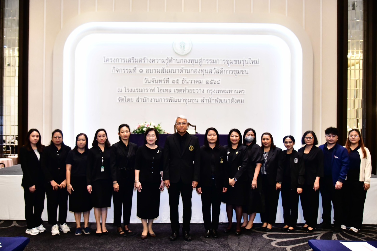 กิจกรรมที่ 2 อบรมสัมมนาด้านกองทุนพัฒนาชุมชนกรุงเทพมหานคร เป็นการอบรมสัมมนาคณะกรรมการชุมชนหรือประชาชนในชุมชน และข้าราชการผู้เกี่ยวข้องในการปฏิบัติงานด้านกองทุนชุมชนจากสำนักงานเขตทั้ง 50 เขต เขตละ 3 คน รวมจำนวน 150 คน เจ้าหน้าที่ดำเนินการ จำนวน 14 คน และวิทยากร 3 คน รวมผู้เข้าร่วมทั้งสิ้น 167 คน ดำเนินการแบบไป–กลับ จำนวน 1 วัน ในวันอังคารที่ 16 ธ.ค. 68 ณ โรงแรมกราฟ โฮเทล เขตห้วยขวาง กรุงเทพมหานคร
