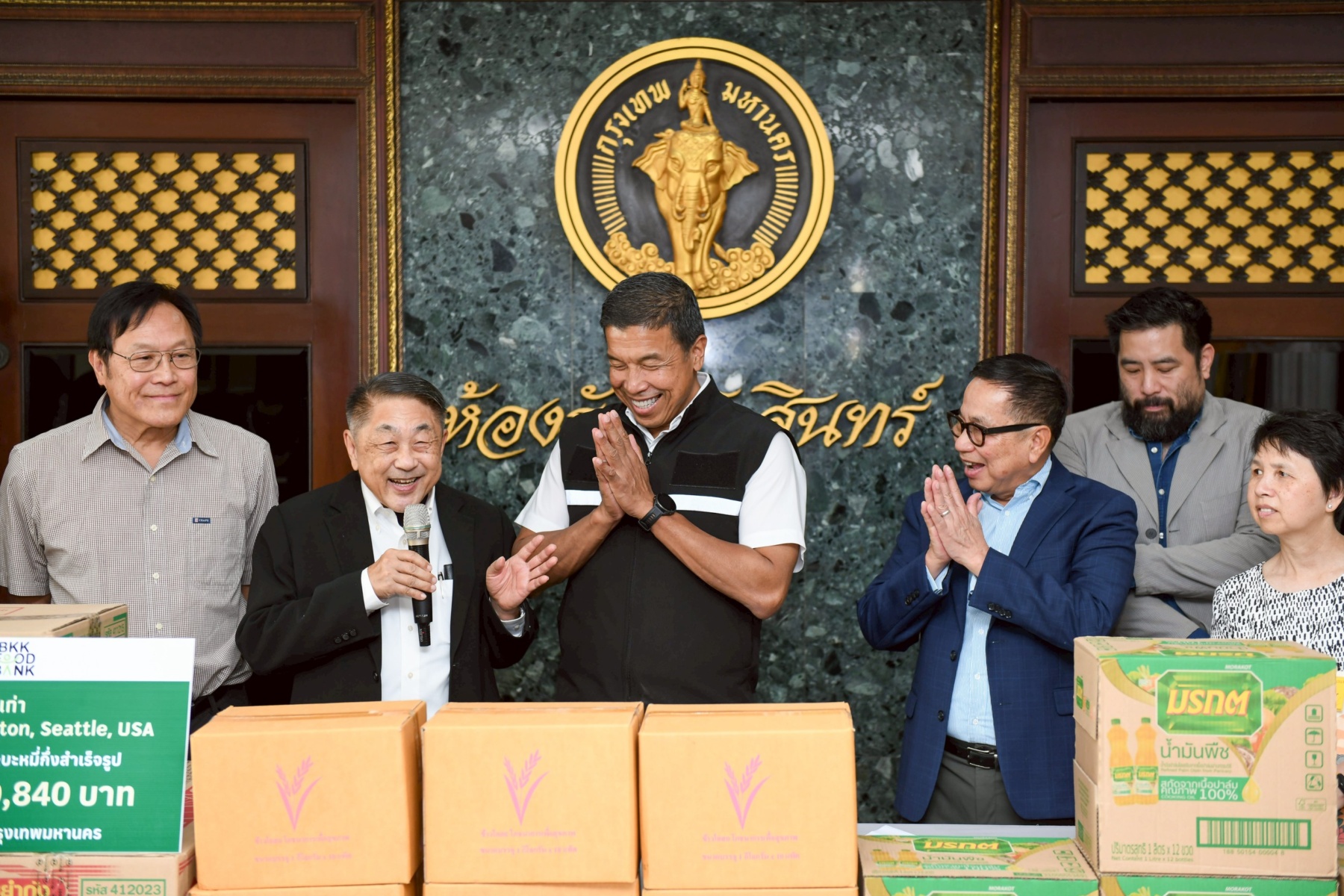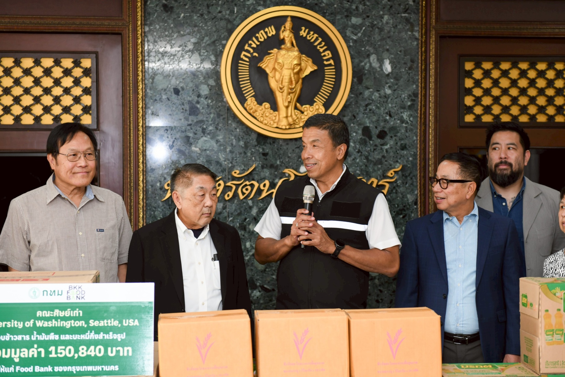 “ขอขอบคุณศิษย์เก่ามหาวิทยาลัยวอชิงตันในซีแอตเทิล ที่แม้อยู่ไกลแต่ยังมีหัวใจผูกพันและพร้อมช่วยเหลือกรุงเทพมหานคร ความร่วมมือจากทุกคนเป็นพลังสำคัญในการพัฒนาเมือง อย่างไรก็ตาม ประเทศไทยยังมีความท้าทายอีกมาก ซึ่งต้องอาศัยความร่วมมือจากทุกคนในการเดินหน้าไปด้วยกัน” นายชัชชาติ สิทธิพันธุ์ ผู้ว่าราชการกรุงเทพมหานคร กล่าวในโอกาสรับมอบสิ่งของบริโภค สนับสนุนการดำเนินงาน Food Bank ของกรุงเทพมหานคร ประกอบด้วย ข้าวสาร บะหมี่กึ่งสำเร็จรูป และน้ำมันปาล์ม มูลค่ารวม 150,840 บาท จากคณะศิษย์เก่า University of Washington, Seattle, USA ณ บริเวณหน้าห้องรัตนโกสินทร์ ศาลาว่าการกรุงเทพมหานคร (เสาชิงช้า) เขตพระนคร วันนี้ (16 ธ.ค. 68)