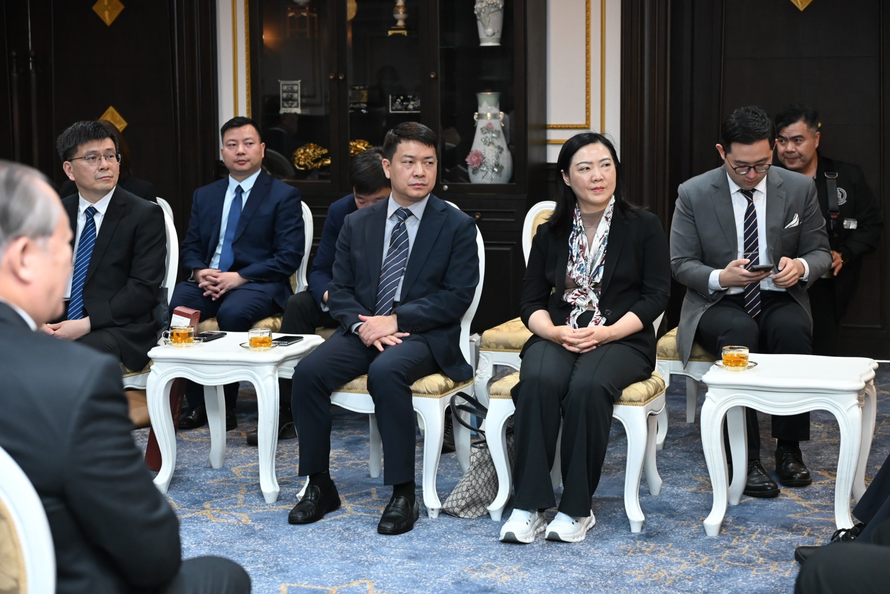 โอกาสนี้ นายต่อศักดิ์ โชติมงคล ประธานที่ปรึกษาของผู้ว่าราชการกรุงเทพมหานคร นายศานนท์ หวังสร้างบุญ รองผู้ว่าราชการกรุงเทพมหานคร นายภิมุข สิมะโรจน์ เลขานุการผู้ว่าราชการกรุงเทพมหานคร และผู้เกี่ยวข้อง ร่วมให้การต้อนรับรองนายกเทศมนตรีนครเจิ้งโจว และคณะผู้แทนเขตนครเจิ้งโจว สาธารณรัฐประชาชนจีน ประกอบด้วย นางสาวหวัง ซู่เหมย ผู้อำนวยการสำนักทรัพยากรมนุษย์และประกันสังคม นครเจิ้งโจว นางสาวซ่ง เส้าตาน ผู้อำนวยการสำนักสถิติ นครเจิ้งโจว เจ้าหน้าที่นครเจิ้งโจว และนักลงทุนจากนครเจิ้งโจว โดยผู้ว่าราชการกรุงเทพมหานครได้มอบชุดจานโชว์เบญจรงค์ ขนาด 9 นิ้ว จำนวน 1 ชุด เป็นของที่ระลึก