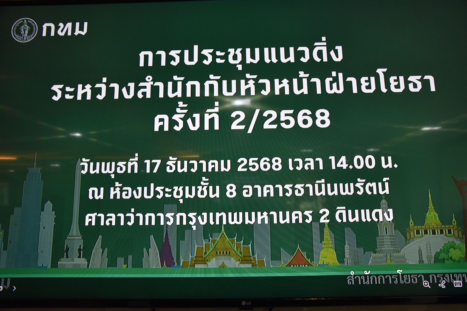 (17 ธ.ค.68) เวลา 14.00 น. นายวิศณุ ทรัพย์สมพล รองผู้ว่าราชการกรุงเทพมหานคร เป็นประธานการประชุมแนวดิ่งระหว่างสำนักกับหัวหน้าฝ่ายโยธา ครั้งที่ 2/2568 โดยมี นายจิระเดช กรุณกฤตกุล รองปลัดกรุงเทพมหานคร ผู้บริหารกรุงเทพมหานคร ผู้บริหารสำนักการโยธา หัวหน้าฝ่ายโยธา 50 เขต และหน่วยงานที่เกี่ยวข้อง ร่วมประชุม ณ ห้องประชุมชั้น 8 อาคารธานีนพรัตน์ ศาลาว่าการกทม. 2 ดินแดง