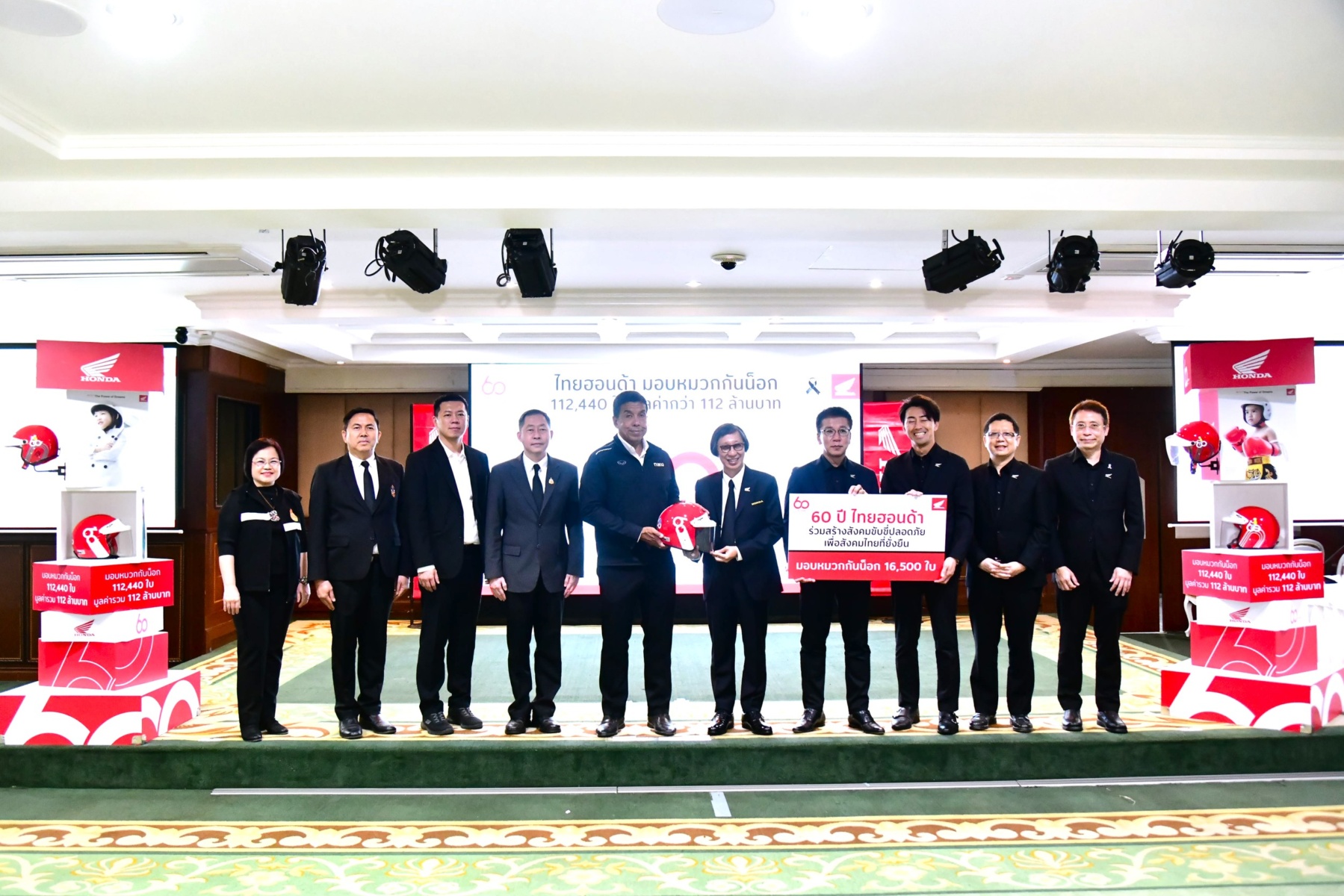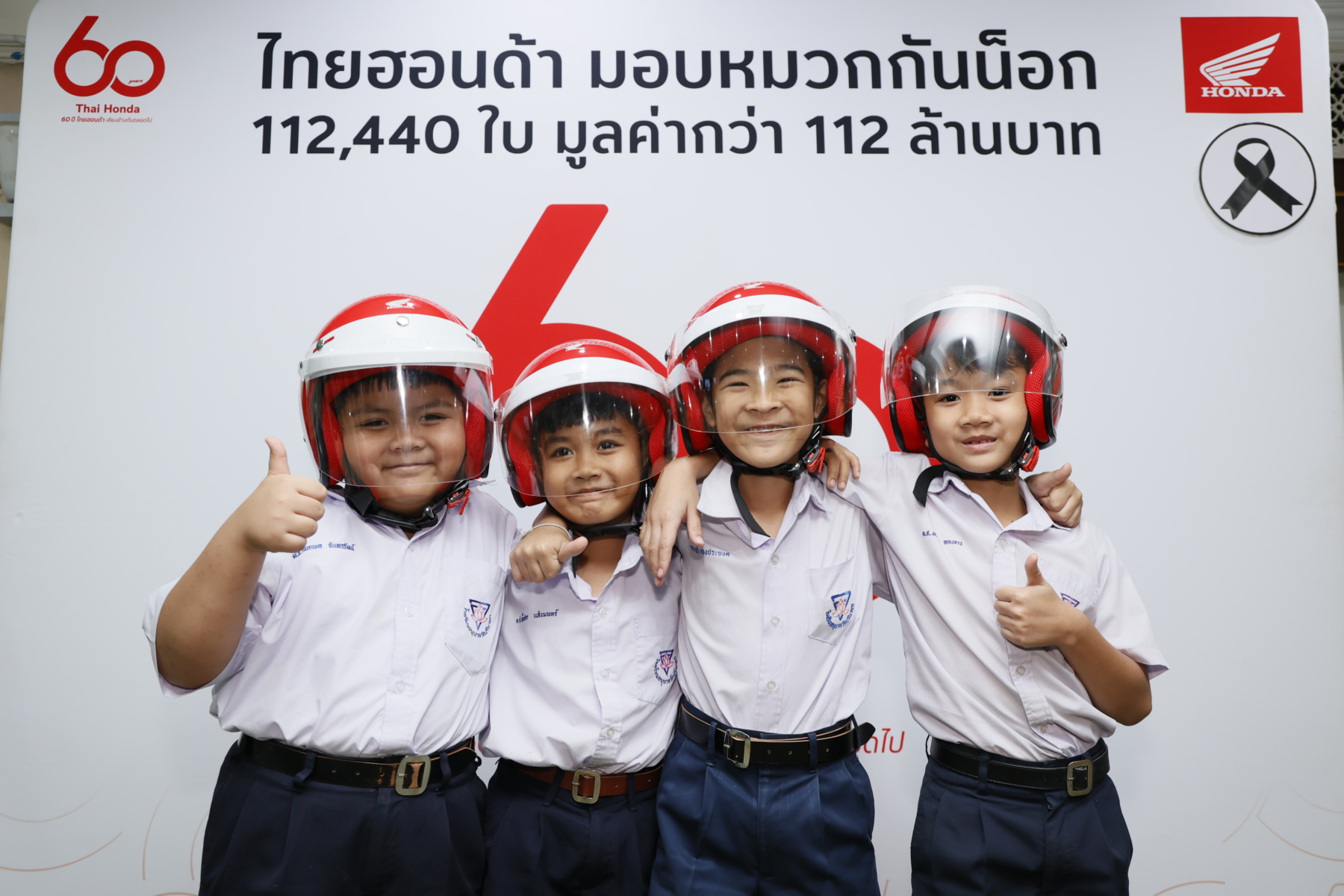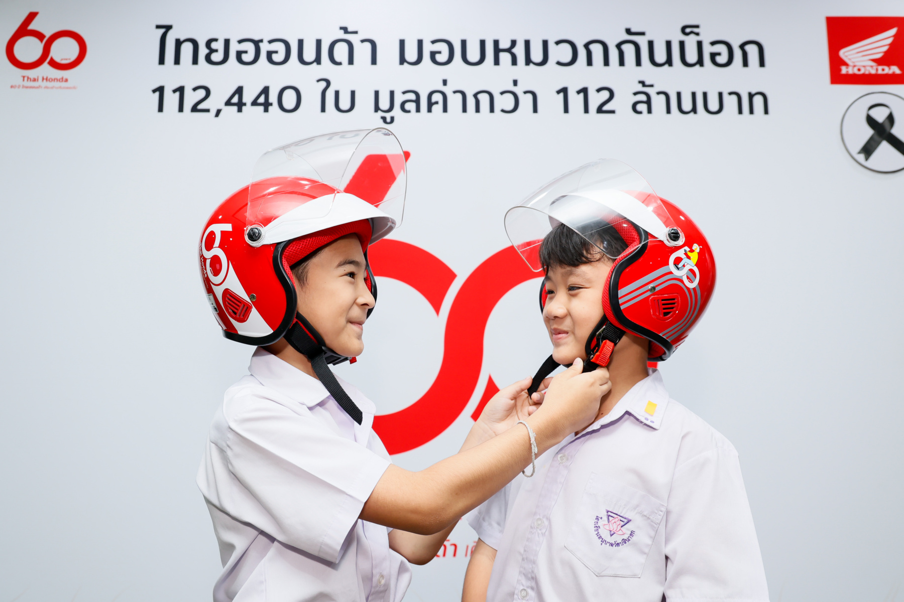 สำหรับโครงการ “60 ปี ไทยฮอนด้า ขับขี่ปลอดภัย เพื่อสังคมไทยที่ยั่งยืน” มีวัตถุประสงค์เพื่อส่งเสริมวัฒนธรรมการขับขี่ปลอดภัยและการสวมหมวกกันน็อก โดยเฉพาะในกลุ่มเด็กและเยาวชน รวมถึงเป็นการเติมเต็มความต้องการหมวกกันน็อกที่ยังขาดแคลนสำหรับเด็กนักเรียน โดยไทยฮอนด้าได้ส่งมอบหมวกกันน็อกจำนวน 16,500 ใบ มูลค่ารวมกว่า 16.5 ล้านบาท ให้แก่กรุงเทพมหานคร เพื่อส่งมอบให้กับสำนักงานเขต สถานศึกษาในสังกัดกรุงเทพมหานคร กรมป้องกันและบรรเทาสาธารณภัย สำนักงานคณะกรรมการการอาชีวศึกษา และสำนักงานคณะกรรมการการศึกษาขั้นพื้นฐาน
