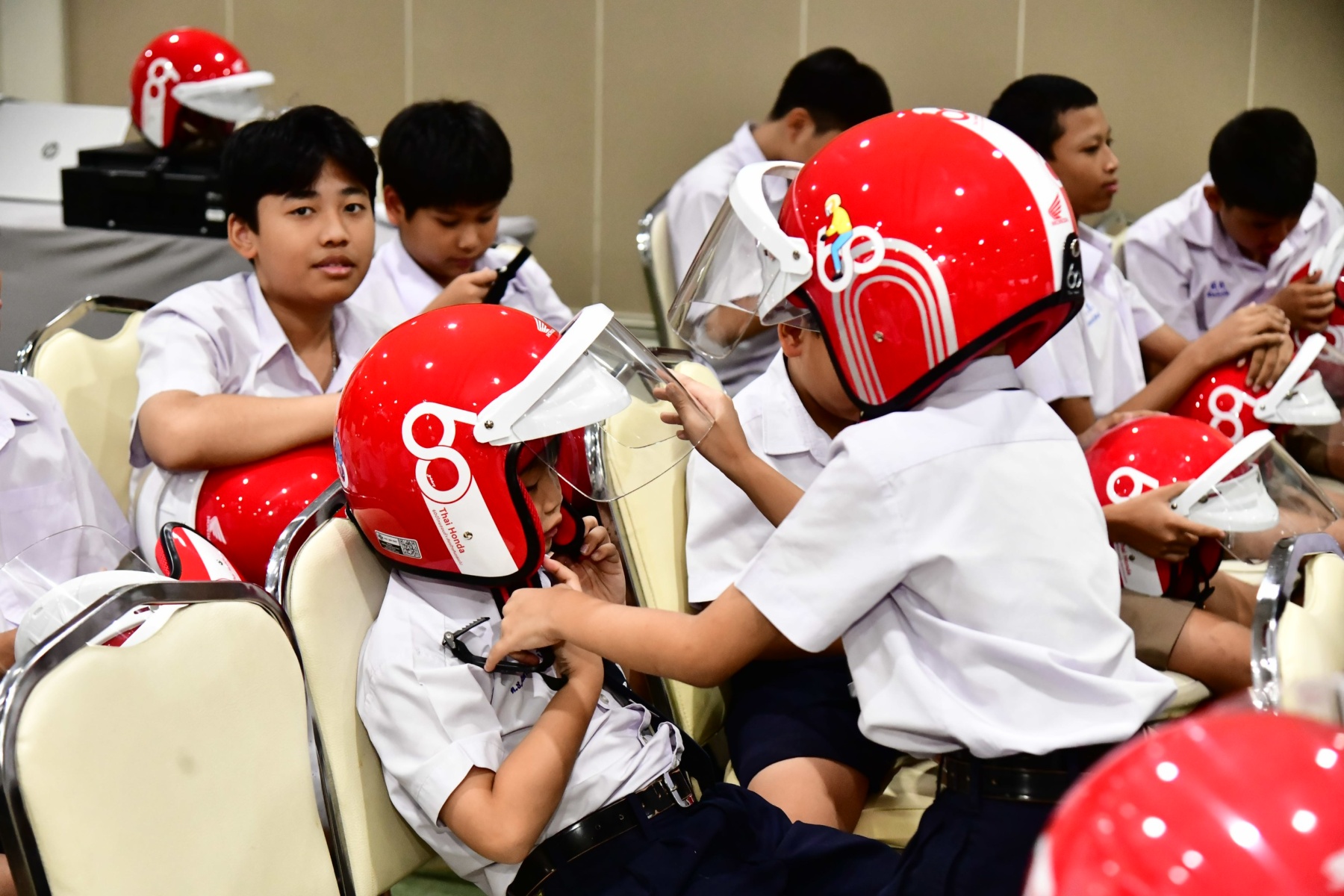 อนึ่ง ในวันนี้มีผู้บริหารกรุงเทพมหานคร ผู้บริหารบริษัท ไทยฮอนด้า จำกัด ผู้บริหารและผู้แทนจากกรมป้องกันและบรรเทาสาธารณภัย กองบูรณาการความปลอดภัยทางถนน สำนักงานคณะกรรมการการอาชีวศึกษา สำนักงานคณะกรรมการการศึกษาขั้นพื้นฐาน สถาบันการศึกษาในเขตกรุงเทพมหานคร และร้านผู้จำหน่ายรถจักรยานยนต์ฮอนด้า ตลอดจนผู้แทนนักเรียน ร่วมพิธี ณ ห้องรัตนโกสินทร์ ศาลาว่าการกรุงเทพมหานคร (เสาชิงช้า) เขตพระนคร