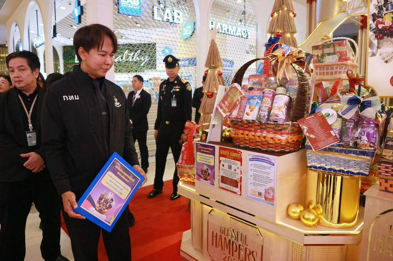 ตรวจเยี่ยมการจัดและจำหน่ายกระเช้าของขวัญช่วงเทศกาลปีใหม่ ปี 2569 ตามหลักเกณฑ์ในการจัดและจำหน่ายกระเช้าของขวัญกำหนดให้กระเช้าของขวัญประเภทอาหารบรรจุภัณฑ์ สินค้าต้องมีคุณภาพและฉลากที่ถูกต้อง แสดงวันเดือนปีที่หมดอายุหรือควรบริโภคก่อนของอาหารทุกชนิดในกระเช้า