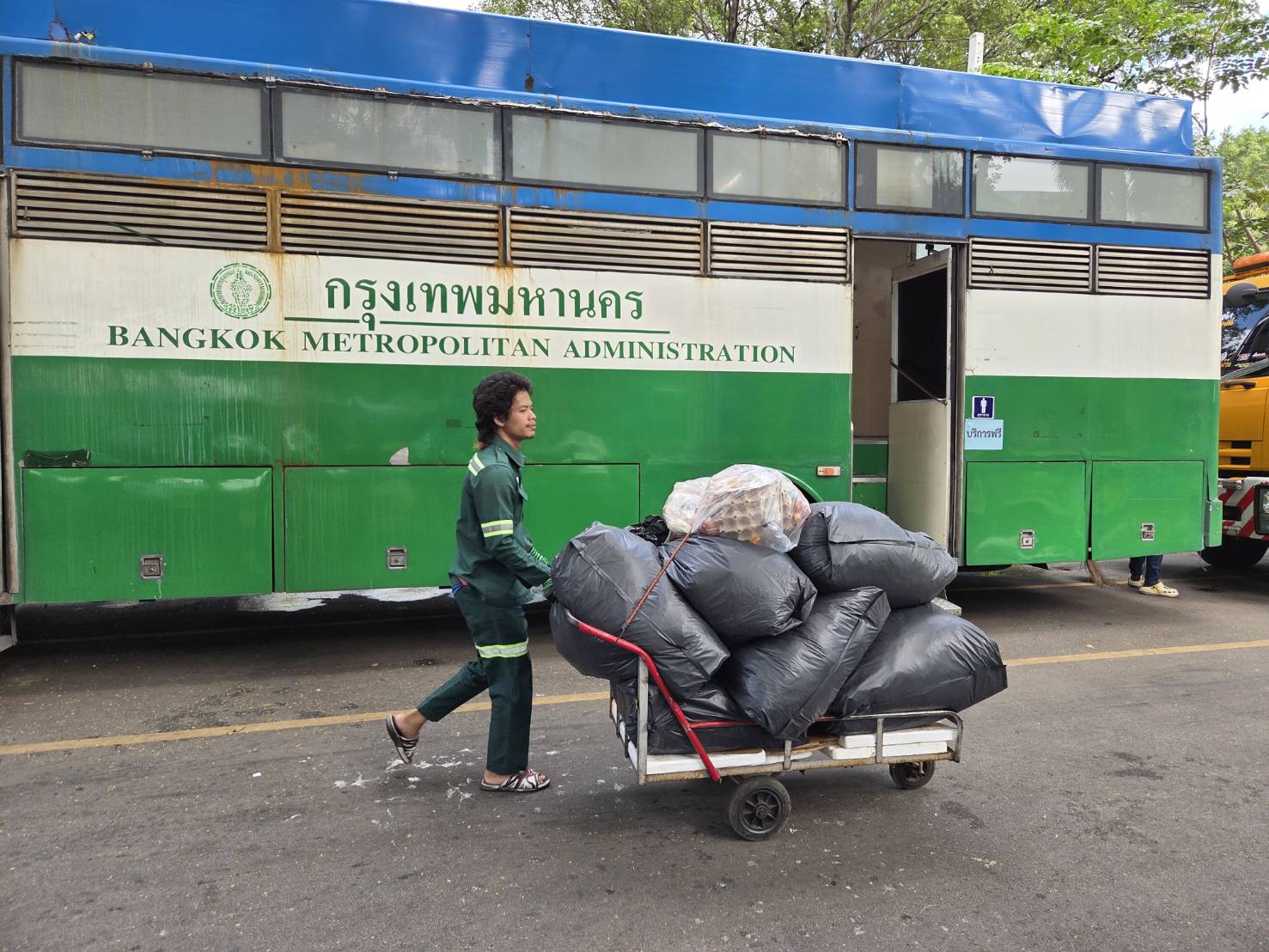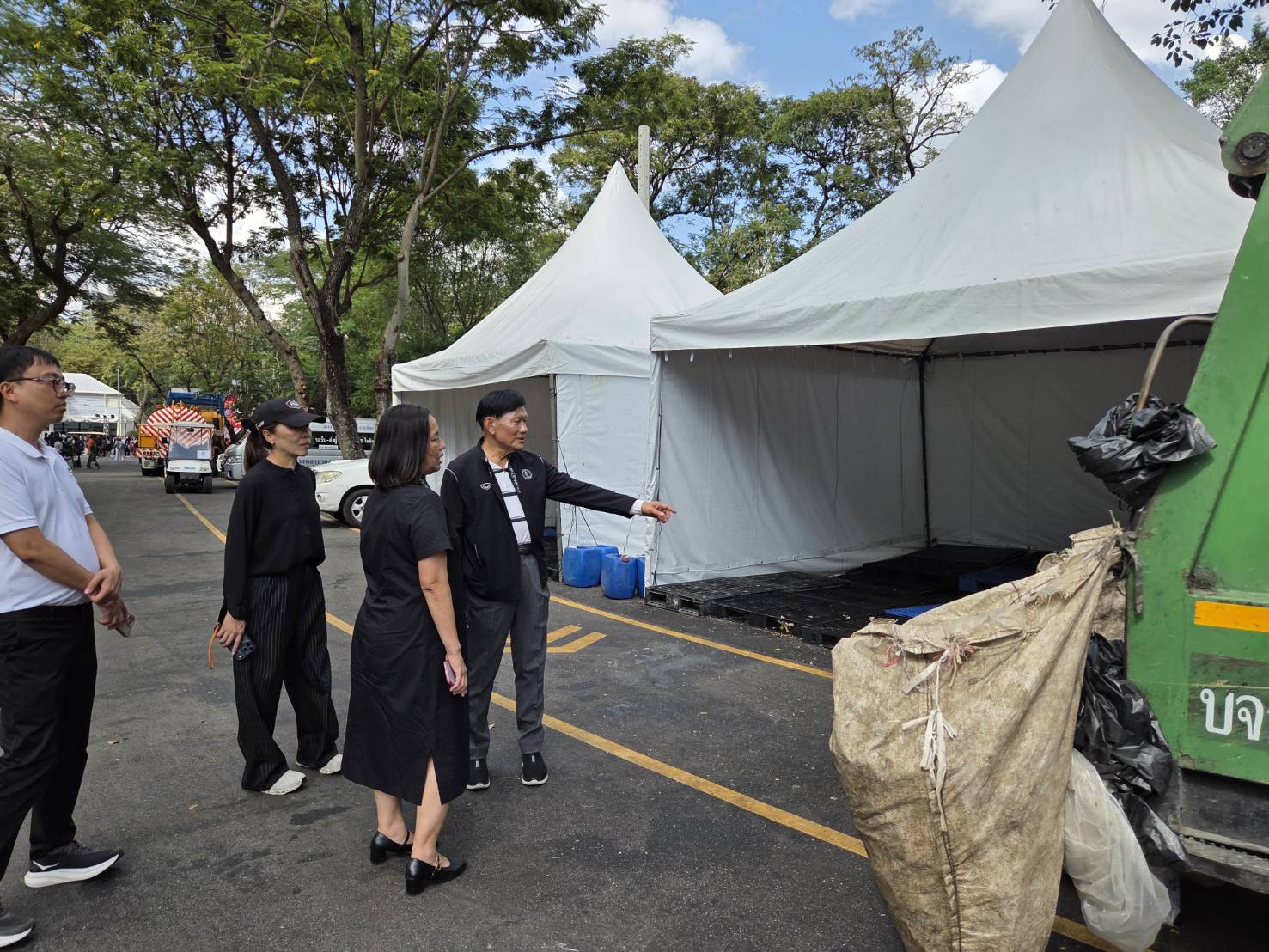 ทั้งนี้ รองผู้ว่าราชการกรุงเทพมหานคร ได้ติดตามการบริหารจัดการขยะภายในงานกาชาด ปี 68 ต่อเนื่องจากวันที่ 15 ธ.ค. 68 ที่ผ่านมา หลังจากให้คำแนะนำแก่ทีมบริหารจัดการขยะของงานกาชาด ประชาสัมพันธ์สร้างความเข้าใจแก่ร้านค้าและบูทหน่วยงานต่าง ๆ ในงานกาชาด ในการคัดแยกขยะแต่ละประเภท นำใส่ถุงขยะเตรียมไว้หลังร้าน ไม่ควรนำถุงขยะออกมาตั้งวางไว้หน้าร้าน เพราะเมื่อประชาชนเห็นถุงขยะที่วางอยู่ จะนำขยะมาทิ้งเพิ่มอีก ทำให้เกิดกองขยะจำนวนมาก กีดขวางทางเดินสัญจร ก่อให้เกิดความสกปรกและไม่เป็นระเบียบเรียบร้อย ซึ่งร้านค้าและบูทหน่วยงานต่าง ๆ ได้ให้ความร่วมมือนำถุงขยะมาทิ้งกับทีมบริหารจัดการขยะของงานกาชาด ซึ่งเป็นรถล้อลากไปตามร้านค้าและบูทหน่วยงานต่าง ๆ จัดเก็บตามรอบเวลาที่กำหนด วันละ 5 รอบ ได้แก่ เวลา 10.00 – 12.00 น. เวลา 14.00 – 16.00 น. เวลา 17.00 – 19.00 น. เวลา 20.00 – 22.00 น. เวลา 01.00 – 03.00 น. เพื่อรวบรวมนำมาไว้ที่จุดพักขยะ 3 จุดที่กำหนดไว้ ภายในสวนลุมพินี ที่ผ่านมาสำนักสิ่งแวดล้อมได้ประสานทีมบริหารจัดการขยะของงานกาชาด เพิ่มจำนวนรถเก็บขยะขับเคลื่อนพลังงานไฟฟ้า เพื่อเพิ่มความรวดเร็วในการจัดเก็บขยะ สามารถขนย้ายขยะในแต่ละเที่ยวได้ปริมาณมากขึ้น นอกจากนี้ ได้มอบหมายให้สำนักสิ่งแวดล้อม เพิ่มจำนวนรถสุขาเคลื่อนที่ ซึ่งเดิมมีจอดอยู่ 5 จุด จุดละ 2 คัน ให้เพิ่มรถสุขาเคลื่อนที่อีกจุดละ 1-2 คัน โดยให้พิจารณาจุดจอดรถ ไม่ให้กีดขวางการสัญจร ให้จอดต่อเนื่องจากจุดเดิมออกไป รวมถึงเพิ่มจำนวนเที่ยวของรถสูบถ่ายสิ่งปฏิกูลในแต่ละวัน เพื่อให้รถสุขาเคลื่อนที่สามารถรองรับของเสียได้เต็มขีดความสามารถ